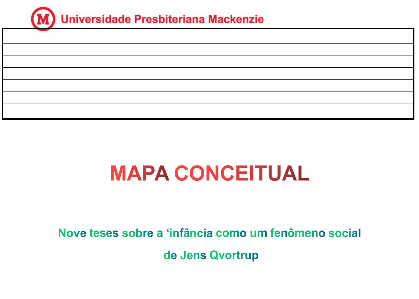 1 CURSO: Pedagogia POLO DE APOIO PRESENCIAL: São Bernardo do Campo SEMESTRE: 1ª COMPONENTE CURRICULAR / TEMA: LEITURA SOCIOLOGICA NOME COMPLETO DAS ALUNAS: VIVIANE CRISTINA RODRIGUES TEIXEIRA e YONE PEREZ CADIMA STIVAL TIA: 10922020421 NOME DO PROFESSOR: DEBORA DA SILVA CARDOSO mailto:10922020421@mackenzista.com.br 2 A infância da sociedade moderna está ligada à escolarização, existe um lugar para as crianças, por serem de menor idade, em função de determinações sociais. O lugar da criança é dado por um grupo dominante correspondente, os adultos, que possibilitam o acompanhamento do desenvolvimento histórico da infância, comparações culturais e sociais. A infância persiste: ela continua a existir como uma classe social. Ela se desenvolve por certo número de fases, até que atinja a maturidade. Na socialização no sentido de desenvolvimento, é pouco Defende que a criança é supra-histórica, separada da sociedade em que vive. São as mudanças de concepção que são objeto de interesse sociológico, porque presumivelmente refletem mudanças de atitude em relação às crianças. Crianças influenciam e são influenciadas pelos pais, professores, pelo mundo social e econômico. A infância interage estruturalmente com outros setores da sociedade. Na escola, elas desempenham trabalhos escolares, o qual está ligado mercado de trabalho, e baseadas em seu consumo, Todas as vezes que elas as crianças interagem e se comunicam com a natureza, com a sociedade e com outras pessoas, tanto adultos quanto pares, elas estão contribuindo para a formação, quer da infância, quer da sociedade. As crianças são criadoras, pois tem uma imaginação fértil, elas se envolvem em ações propositivas. Retração e a expansão do mercado de trabalho têm um tremendo impacto sobre a vida das crianças, mesmo duvidando que os eventos sociais causem efeitos constantes, as crianças não são consideradas, e quando cresce a oferta de emprego, cresce a institucionalização das crianças, sua vida será mudada. As crianças não são consideradas como unidades de observação nas estatísticas, pois o Estado demanda de dados absolutamente necessários para seu planejamento e esforços de elaboração política, portanto, se elas são de responsabilidade dos pais, não há necessidade de conta-las. Herdamos uma ideologia de família que pode ser considerada um fora de época, as crianças são propriedades dos pais, sendo que a sociedade só se interessa em interferir em casos excepcionais. Não há como categorizar a infância ou determinar sua natureza sociológica como fenômeno social. O paternalismo é uma atitude característica, no sentido de uma estranha combinação de amor, sentimentalismo, senso de superioridade em relação à compreensão equivocada das capacidades infantis e à marginalização. MAPA CONCEITUAL Nove teses sobre a ‘infância como um fenômeno soci de Jens Qvortrup