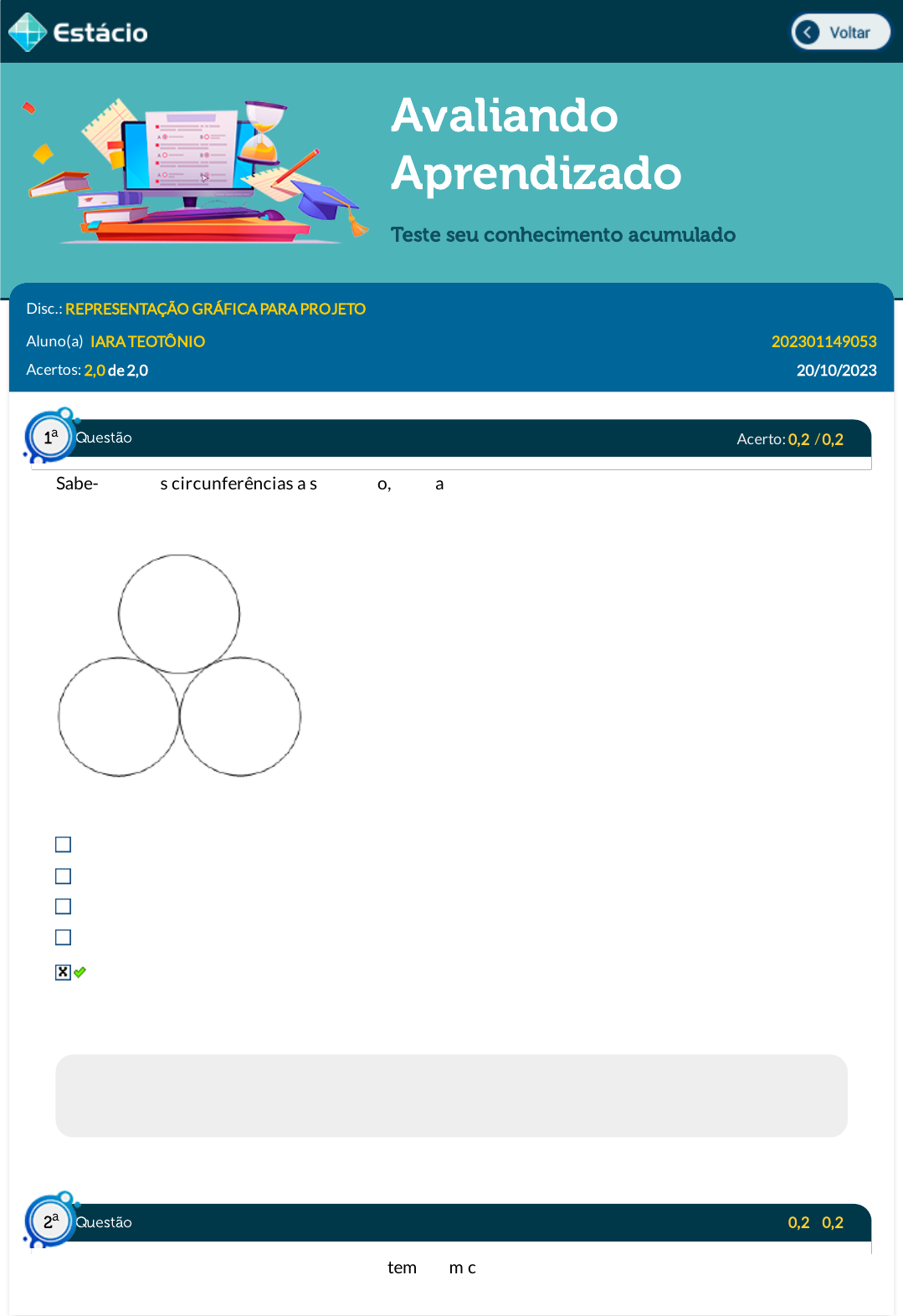 20/10/2023, 16:10 Estácio: Alunos https://simulado.estacio.br/alunos/ 1/6 Avaliando Aprendizado Teste seu conhecimento acumulado Disc.: REPRESENTAÇÃO GRÁFICA PARA PROJETO Aluno(a): IARA TEOTÔNIO 202301149053 Acertos: 2,0 de 2,0 20/10/2023 Acerto: 0,2 / 0,2 Sabe-se que as circunferências a seguir são, duas a duas, tangentes entre si e que possuem a mesma medida do raio r. A altura do triângulo formado pela união dos centros das três circunferências é 3,4 cm. (Use √3 = 1,7 e π = 3,1) A medida da área de cada circunferência é: 12,48 cm2 12,44 cm2 12,40 cm2 12,52 cm2 11,94 cm2 Respondido em 20/10/2023 16:01:28 Explicação: Resposta correta: 11,94 cm2 Acerto: 0,2 / 0,2 Para de�nir a posição do ponto no espaço, temos um conjunto de medidas (distâncias) necessárias: a abscissa, o afastamento e a cota. Sobre essas medidas podemos a�rmar: Questão1 a Questão2 a https://simulado.estacio.br/alunos/inicio.asp https://simulado.estacio.br/alunos/inicio.asp javascript:voltar(); javascript:voltar(); 20/10/2023, 16:10 Estácio: Alunos https://simulado.estacio.br/alunos/ 2/6 todo ponto situado à esquerda do ponto de origem tem abscissa positiva e todo ponto situado à direita da origem terá abscissa negativa a abscissa é a dimensão medida sobre a linha de terra, segundo um ponto de origem arbitrado a cota é a medida da linha projetante de um ponto, medida entre o ponto e o plano vertical de projeção o afastamento é a medida da linha projetante de um ponto, medida entre o ponto e o plano horizontal de projeção a cota é negativa no 1º e 2º diedros, pois a linha projetante �ca acima do plano horizontal Respondido em 20/10/2023 16:02:11 Explicação: Resposta correta: a abscissa é a dimensão medida sobre a linha de terra, segundo um ponto de origem arbitrado Acerto: 0,2 / 0,2 Sobre o corte em seção podemos a�rmar: É aquele em que o plano secante corta toda a extensão do objeto. É um tipo de corte aplicado quando existe condição de simetria no objeto. Quando a seção é desenhada sobre a vista, utiliza-se linha tracejada grossa. Quando a seção é desenhada fora da vista, deslocada, deve estar ligada à vista cortada por uma linha traço e ponto �na (estreita). Para delimitar a parte ¿cortada¿ do objeto com relação ao restante da vista, usa-se uma linha de ruptura (linha �na irregular). Respondido em 20/10/2023 16:02:43 Explicação: Resposta correta: Quando a seção é desenhada fora da vista, deslocada, deve estar ligada à vista cortada por uma linha traço e ponto �na (estreita). Acerto: 0,2 / 0,2 Em relação ao Projeto Técnico, assinale a alternativa errada: O ambiente do projeto usando ferramentas informatizadas permite criar facilitadores e rotinas para dinamizar o tempo de desenho. O computador permite copiar elementos, criar rotinas e outros, facilitando e acelerando o processo do desenho. A dinâmica do programa AutoCAD é parecida com as funções mais básicas do Windows. Existem vários bons programas de projeto no mercado, mas o mais conhecido mundialmente é o AutoCAD. Os programas de desenho são capazes de fazer projetos com facilidade, praticamente desobrigando o projetista de conhecimentos técnicos. Respondido em 20/10/2023 16:03:32 π ′ π Questão3 a Questão4 a 20/10/2023, 16:10 Estácio: Alunos https://simulado.estacio.br/alunos/ 3/6 Explicação: Resposta correta: Os programas de desenho são capazes de fazer projetos com facilidade, praticamente desobrigando o projetista de conhecimentos técnicos. Acerto: 0,2 / 0,2 Analise os símbolos apresentados a seguir: De acordo com a NBR 6492, esses símbolos representam, respectivamente: Indicação geográ�ca, cota de nível para projeções em corte, cota de nível para projeções em planta e seta indicativa de curva de nível. Indicação geográ�ca, cota de nível para projeções em corte, cota de nível para projeções em planta e seta indicativa da inclinação do telhado. Indicação geográ�ca, cota de nível para projeções em planta, cota de nível para projeções em corte e seta indicativa da inclinação do telhado. Indicativo do Azimute, cota de nível para projeções em planta, cota de nível para projeções em corte e seta indicativa da inclinação do telhado. Seta indicativa da inclinação do telhado, cota de nível para projeções em corte, cota de nível para projeções em planta e indicação geográ�ca. Respondido em 20/10/2023 16:05:53 Explicação: A resposta certa é: Indicação geográ�ca, cota de nível para projeções em corte, cota de nível para projeções em planta e seta indicativa da inclinação do telhado. Acerto: 0,2 / 0,2 Em relação ao Scale, assinale a alternativa errada: O Scale pode ser usado, porém, deve ser evitado na hora de fazer as con�gurações de impressão, pois o fator de escala pode alterar o valor dos objetos cotados. Os blocos só podem ser escalonados antes da sua inserção, caso contrário devem ser inseridos novamente. Deve-se escolher um ponto base, que será o ponto que �cará preso à mesma posição, enquanto o resto do elemento será aumentado ou diminuído. O comando permite três opções de escala: cópia, referência e fator de escala. Valores de fator de escala entre 0 e 1 causam redução no objeto escalonado. Respondido em 20/10/2023 16:07:30 Explicação: Questão5 a Questão6 a 20/10/2023, 16:10 Estácio: Alunos https://simulado.estacio.br/alunos/ 4/6 A resposta certa é: Os blocos só podem ser escalonados antes da sua inserção, caso contrário devem ser inseridos novamente. Acerto: 0,2 / 0,2 Ano: 2014 Banca: FCC Órgão: TCE-RS Com a chegada da modelagem da informação da construção, tem-se uma mudança de paradigma, que pode alterar de maneira profunda as relações de trabalho entre as equipes envolvidas num mesmo projeto. A plataforma ou conceito building information modeling - BIM: Tem como principal característica a criação de modelos tridimensionais alimenta