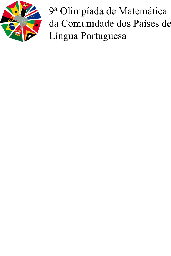 Primeiro Dia: 5 de Novembro de 2019, Nova Friburgo, Brasil Problema 1. Encontre uma maneira de se escrever todos os algarismos de 1 a 9 em sequência e sem repetição, de forma que os números determinados por quaisquer dois algarismos consecutivos da sequência sejam diviśıveis por 7 ou 13. Problema 2. Prove que para todo n inteiro não nulo, existem infinitas triplas de inteiros não nulos a, b e c que satisfazem as condições: 1. a + b + c = n 2. ax2 + bx + c = 0 tem ráızes racionais. Problema 3. Seja ABC um triângulo com AC 6= BC. No triângulo ABC, sejam G seu baricentro (encontro das medianas), I seu incentro (encontro das bissetrizes internas) e O seu circuncentro (centro da circunferência que passa pelos vértices). Prove que IG é paralelo a AB se, e somente se, CI é perpendicular a IO. Cada um dos três problemas vale 7 pontos. Duração: 4 12 horas. Segundo Dia: 6 de Novembro de 2019, Nova Friburgo, Brasil Problema 4. Encontre todos os números reais a e b que satisfazem a relação: 2(a2 + 1)(b2 + 1) = (a + 1)(b + 1)(ab + 1). Problema 5. a) Mostre que existem cinco inteiros A,B,C,D e E tais que 2018 = A5 + B5 + C5 + D5 + E5. b) Mostre que não existem quatro inteiros A,B,C e D tais que 2018 = A5 + B5 + C5 + D5. Problema 6. Dois jogadores Arnaldo e Betânia jogam alternadamente, com Arnaldo sendo o primeiro a jogar. Inicialmente, há duas pilhas de pedras contendo x e y pedras, respectivamente. Em cada jogada, é posśıvel realizar uma das operaçes a seguir: 1. Escolher duas pilhas não vazias e tirar uma pedra de cada pilha. 2. Escolher uma pilha com uma quantidade ı́mpar de pedras, tirar uma de suas pedras e, se posśıvel, dividir em duas pilhas com a mesma quantidade de pedras. O jogador que não puder realizar nenhuma das operações 1. e 2. perde. Determine quem possui a estratégia vencedora em função de x e y. Cada um dos três problemas vale 7 pontos. Duração: 4 12 horas.