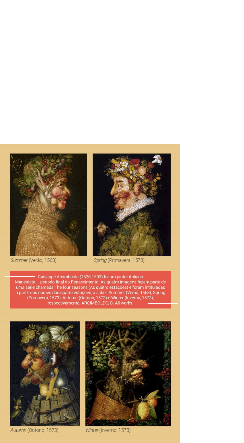 O papel do espectador Desafio O reconhecimento e a rememoração são duas formas de investimento que caracterizam o conjunto de atos perceptivos do espectador diante da imagem. Quando uma imagem é observada e nela você identifica algum elemento, você a reconhece a partir de algum conhecimento prévio que adquiriu, o qual se encontra presente na sua memória. Mesmo que você esteja diante de uma imagem nunca antes vista, você lê e a compreende a partir de determinadas expectativas, as quais lhe ajudarão a elaborar hipóteses sobre ela. Assim, o reconhecimento e a rememoração são atividades próximas e articuladas. O processo de rememorar uma imagem se dá porque ela constrói algum saber sobre a realidade, e esse mesmo saber pode ser retomado por meio de uma base possível de ser atualizada de diversas formas. Após ler esse parágrafo sobre o processo de percepção da imagem do espectador, o qual envolve o reconhecimento e a rememoração, observe as quatro imagens a seguir do pintor Giuseppe Arcimboldo. Após a leitura do texto e das imagens, responda: qual o papel do reconhecimento e da rememoração na interpretação das imagens? Padrão de resposta esperado O espectador, como um sujeito ativo, percebe essas imagens com base no reconhecimento de alguns traços básicos: cada uma delas, a partir do jogo de elementos que fazem parte de cada uma das estações, cria a silhueta de um rosto de uma pessoa. É interessante notar que, em cada uma delas, o espectador pode observar, mesmo parcialmente, a composição básica de um rosto humano: há, em todas as pinturas, princípios que são conhecidos como constituintes da normalidade de uma face humana – espécies de invariantes que constituem a imagem (olhos, nariz, boca, queixo, orelha. Há ainda, em alguns desses rostos, um prolongamento da figura humana por meio de um pescoço e de um busto (como é visto no Verão e na Primavera), além da presença de uma cabeleira. Cabe apontar, ainda, que a silhueta observada nos quadros intitulados Verão e Primavera dizem respeito a um corpo feminino, enquanto Outono e Inverno fazem mensão a um corpo masculino. Essas imagens são vistas, assim, a partir de uma constância perceptiva, a qual é a base da atividade do reconhecimento do espectador, ou seja, é por meio dessa constância que comparamos o que já foi visto no passado, no dia a dia e na realidade, com o que está sendo visto no presente. Desse modo, graças a isso, é possível reconhcer, em cada pintura, a representação de rostos de pessoas distintas, mesmo que não seja possível saber a quem cada imagem faça referência. Além disso, há todo um prazer e uma satisfação que envolve a experiência de visualizar essas imagens. Esse prazer está relacionado à atividade de rememoração, pois, em cada uma das imagens, você se depara com o que já se conhece e com estruturas simples e de âmbito comum que fazem parte da memória, como a estrutura de um rosto e a sua composição, mas, também se reconhece de forma condensada outros elementos, como, por exemplo, aqueles que fazem parte e caracterizam predominantemente as estações: no verão, o pintor faz uso de frutas e vegetais frescos, além de folhas na composição da imagem; na primavera, principalmente de folhas verdes e flores coloridas no seu auge de crescimento; no outono, de frutas em época de colheita marcado pela coloração alaranjada; e, no inverno, há rochas, raízes secas e galhos torcidos. Ademais, o conhecimento que cada imagem promove quando entra em relação com o espectador pode levá-lo a observar as estações e a natureza de forma distinta, por meio de outras expectativas e percepções que não faziam parte da sua experiência e memória. Por exemplo, um espectador apaixonado pelo que o inverno lhe proporciona pode ser capturado pela beleza da primavera. Por fim, pode-se dizer que, durante a leitura das imagens, seja elas individualmente ou a partir da série que as une, o reconhecimento e a rememoração funcionam como processos que levam o espectador a construir os sentidos evocados pelas imagens e a atualizá-los no contato que estabelecem com a realidade. Exercícios 1. Com relação ao espectador da imagem, assinale a alternativa correta. A. O espectador é um sujeito passivo da imagem, pois constitui-se como sua testemunha. B. O espectador é um sujeito passivo da imagem, pois a observa e a contempla. C. O espectador é um sujeito ativo da imagem, o qual funciona como sua plateia e testemunha. D. O espectador é um sujeito ativo da imagem porque a constrói quando a observa e a contempla. E. O espectador é um sujeito ativo da imagem, o qual encontra os sentidos dados a ela pelo autor. 2. Como é caracterizado o processo de percepção da imagem pelo espectador? A. O processo de percepção se caracteriza por um conjunto de expectativas tecido sobre a imagem. B. O processo de percepção se caracteriza pelo olhar fortuito atribuído a uma imagem. C. O processo de percepção se caracteriza pela descoberta das intenções do autor da imagem. D. O processo de percepção se caracteriza pelo encontro dos sentidos que estão ocultos e dados na imagem. E. O processo de percepção se caracteriza, completamente, pela projeção do espectador na imagem. 3. Durante o processo interpretativo da imagem, é possível observar que ______________ é o distanciamento necessário para que haja um ponto de apoio fora do espectador, o qual permita que este não projete-se de forma exagerada na imagem. Tal ação é conhecida como _______________. Complete as lacunas com as alternativas corretas: A. Olhar fortuito e exotopia. B. Exotopia e esquemas perceptivos. C. Olhar fortuito e tendência projetiva. D. Tendência projetiva e esquemas perceptivos. E. Exotopia e tendência projetiva. 4. Com relação ao processo de investimento que o espectador elabora no seu encontro com a imagem, assinale a alternativa correta. A. A rememoração é uma atividade def
