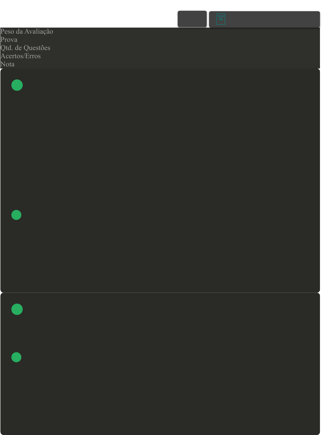 24/10/2023, 19:54 Avaliação II - Individual about:blank 1/5 Prova Impressa GABARITO | Avaliação II - Individual (Cod.:884161) Peso da Avaliação 1,50 Prova 70358036 Qtd. de Questões 10 Acertos/Erros 8/2 Nota 8,00 Ensinar ciências abordando conteúdos relacionados ao corpo humano e à saúde contribuem para que o aluno adquira hábitos saudáveis de higiene, pois muitos alunos ainda chegam à escola em condições precárias. Sobre o papel da escola com relação aos cuidados que a criança necessita ter com o corpo, classifique V para as sentenças verdadeiras e F para as falsas: ( ) É necessário que os professores realizem na escola trabalhos coletivos envolvendo os pais, os órgãos da saúde, da infância e da adolescência e a sociedade em geral. ( ) A escola tem acesso às várias formas de comunicação do conhecimento, por isso ela precisa divulgá-las para conscientizar a população. ( ) A escola não tem a obrigação de tornar os saberes transmissíveis e assimiláveis, pois é ela a detentora do conhecimento. ( ) A escola é a única instituição responsável por erradicar as doenças causadas pela falta de higiene da população. Agora, assinale a alternativa que apresenta a sequência CORRETA: A V - V - F - F. B F - F - V - V. C V - F - F - V. D F - V - V - F. Documento que buscou desenvolver e dar aos professores a possibilidade de ampliar seus conhecimentos, utilizando a sua forma de trabalho, não havendo a preocupação de tornar o momento um processo engessado. Assinale a alternativa CORRETA que apresenta tal fator: A PCN. B PCA. C RCA. D DCN. VOLTAR A+ Alterar modo de visualização 1 2 24/10/2023, 19:54 Avaliação II - Individual about:blank 2/5 Com as mudanças consideradas de extrema necessidade na estrutura educacional nacional, o Conselho Nacional de Educação, com a Câmara da Educação Básica, realizou movimentos junto aos dirigentes estaduais e municipais, em consonância com os professores e demais profissionais da educação. Considerando o exposto, analise as sentenças a seguir: I- Promoveu encontros com profissionais apenas da área privada. II- Promoveu estudos, debates e audiências públicas com todos os profissionais da área educacional. III- Promoveu estudos, debates e audiências públicas com a participação de entidades representativas de diversas esferas da área educacional. IV- Promoveu debates em busca de subsídios para a formulação de novas Diretrizes Curriculares Nacionais. Assinale a alternativa CORRETA: A As sentenças I e IV estão corretas. B As sentenças I, II e III estão corretas. C As sentenças III e IV estão corretas. D As sentenças I e II estão corretas. O Programa Internacional de Avaliação de Alunos (PISA) avalia o nível de ensino que é oferecido aos estudantes. O Brasil não aparece numa colocação destacada e uma das causas pelo recorrente fracasso pode estar relacionado à maneira de ensinar ciências. Quanto ao ensino de ciências nas séries do Ensino Fundamental, classifique V para as sentenças verdadeiras e F para as falsas: ( ) Ao trabalhar os conteúdos de ciências, o aluno tem possibilidades de entender e interpretar os fenômenos que acontecem no mundo. ( ) Já há muitas décadas vem sendo dada grande importância para a área de ciências e sua incorporação no currículo. ( ) Antes mesmo do século XIX, o ensino de ciências já apresentava um conhecimento neutro com saberes e as verdades únicas. ( ) A forma adequada de ensinar ciências deve estar baseada em observar e memorizar os conceitos, com a ajuda do livro didático. Agora, assinale a alternativa que apresenta a sequência CORRETA: A V - V - V - F. B V - F - V - F. C V - V - F - F. D F - V - V - V. 3 4 24/10/2023, 19:54 Avaliação II - Individual about:blank 3/5 As Diretrizes Curriculares Nacionais possuem como objetivo auxiliar no desenvolvimento pleno da criança, adolescente e jovem, para que recebam uma formação que corresponde a sua idade e nível de aprendizagem com qualidade. Sobre os objetivos das DCN, analise as sentenças a seguir: I- Sistematizar os princípios e diretrizes gerais da Educação Básica contidos na Constituição Federal de 1988 e na LBD. II- Estimular a reflexão crítica e propositiva que deve subsidiar a formulação, execução e avaliação do PPP. III- Orientar os cursos de formação inicial e continuada de profissionais docentes, técnicos e funcionários. IV- Os DCN possuem em sua estrutura preocupações voltadas a diversas modalidades do ensino. Assinale a alternativa que apresenta a sequência CORRETA: A As sentenças III e IV estão corretas. B Somente a sentença II está correta. C Somente a sentença I está correta. D As sentenças I, II, III e IV estão corretas. Inicia-se no primeiro dia de trabalho escolar, continua com a chegada dos educandos à escola e termina no último dia letivo. Dessa forma, percebemos que o professor se mantém em movimento a todo instante: prevendo, organizando, buscando, analisando, definindo, delimitando, formulando temáticas que abarquem os interesses de sua clientela e avaliando a todo o momento. A que o exposto se refere? A Textos. B Conteúdos. C Projeto. D Planejamento. Os conteúdos atitudinais relacionados ao ensino de Ciências envolvem a maneira de pensar do educando, com relação a tudo que ocorre a seu redor, com as atitudes científicas. Sobre os exemplos de conteúdos atitudinais que podem ser trabalhados em seus objetivos, assinale a alternativa CORRETA: A Executar, compor, classificar, analisar. B Ponderar, adotar hábitos, partilhar, dialogar. C Reconhecer, definir, citar, caracterizar. D Demonstrar, persistir, coletar, listar. 5 6 7 24/10/2023, 19:54 Avaliação II - Individual about:blank 4/5 Podemos perceber que o PCN é um documento que busca desenvolver e dar aos professores a possibilidade de ampliar seus conhecimentos utilizando a sua forma de trabalho, não havendo a preocupação de tornar este momento um processo engessad