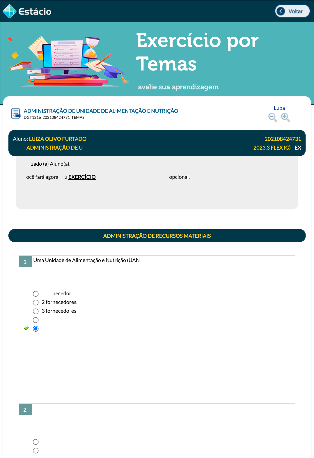 23/10/2023, 22:15 Estácio: Alunos https://simulado.estacio.br/alunos/ 1/5 Exercício por Temas avalie sua aprendizagem Uma Unidade de Alimentação e Nutrição (UAN) precisa elaborar uma lista de compras para repor o estoque de alimentos. Se a UAN precisa de 60 litros de leite para o próximo período de 3 dias úteis, considerando que cada fornecedor só pode fornecer no máximo 15 litros de leite por vez, quantos fornecedores diferentes a UAN precisará contatar para atender a sua demanda? Um restaurante universitário serve em média 1000 refeições por dia e utiliza um ingrediente especí�co em cada prato. Se o consumo diário desse ingrediente é de 5 kg, qual é o estoque mínimo que o restaurante deve manter para garantir que não �que sem o ingrediente durante o período de uma semana (7 dias úteis)? Considere uma margem de segurança de 10%. ADMINISTRAÇÃO DE UNIDADE DE ALIMENTAÇÃO E NUTRIÇÃO Lupa DGT1216_202108424731_TEMAS Aluno: LUIZA OLIVO FURTADO Matr.: 202108424731 Disc.: ADMINISTRAÇÃO DE U 2023.3 FLEX (G) / EX Prezado (a) Aluno(a), Você fará agora seu EXERCÍCIO! Lembre-se que este exercício é opcional, mas não valerá ponto para sua avaliação. O mesmo será composto de questões de múltipla escolha. Após responde cada questão, você terá acesso ao gabarito comentado e/ou à explicação da mesma. Aproveite para se familiarizar com este modelo de questões que será usado na sua AV e AVS. ADMINISTRAÇÃO DE RECURSOS MATERIAIS 1. 1 fornecedor. 2 fornecedores. 3 fornecedores. 5 fornecedores. 4 fornecedores. Data Resp.: 23/10/2023 22:01:15 Explicação: Para atender a demanda de 60 litros de leite, serão necessários pelo menos 4 fornecedores, uma vez que cada um pode fornecer no máximo 15 litros de leite por vez. 2. 30 kg. 40 kg. Luiza Rectangle Luiza Pencil Luiza Pencil Luiza Pencil Luiza Pencil Luiza Typewriter Compartilhe mas proteja seus dados Luiza Typewriter javascript:voltar(); javascript:voltar(); javascript:voltar(); javascript:voltar(); javascript:diminui(); javascript:diminui(); javascript:aumenta(); javascript:aumenta(); 23/10/2023, 22:15 Estácio: Alunos https://simulado.estacio.br/alunos/ 2/5 A manutenção adequada do equipamento é fundamental para a e�ciência operacional de uma Unidade de Alimentação e Nutrição (UAN) funcionando. Qual é a melhor prática para manter o equipamento em boas condições? O cardápio é um aspecto importante da administração de custos e recursos materiais em uma Unidade de Alimentação e Nutrição (UAN). Qual é a melhor prática para criar um cardápio equilibrado e econômico? Uma Unidade de Alimentação e Nutrição (UAN) precisa controlar seus custos de alimentos para garantir a e�ciência operacional. Qual é a melhor prática para reduzir o desperdício de alimentos? 50 kg. 35 kg. 45 kg. Data Resp.: 23/10/2023 22:06:56 Explicação: Para calcular o estoque mínimo, é preciso multiplicar o consumo diário pelo número de dias em que o restaurante precisa estar suprido, e então adicionar uma margem de segurança, que pode ser de�nida como um percentual do consumo diário. Se assumirmos uma margem de segurança de 10%, teremos: 5 kg x 7 dias úteis x 1,1 = 38,5 kg. 3. Substituir o equipamento com frequência. Usar o equipamento além de sua vida útil. Realizar manutenção apenas quando o equipamento apresentar falhas. Ignorar os problemas de manutenção. Realizar manutenção preventiva regularmente. Data Resp.: 23/10/2023 22:08:46 Explicação: Realizar manutenção preventiva regularmente é a melhor prática para manter o equipamento em boas condições, pois a manutenção preventiva regular pode identi�car e corrigir problemas antes que eles se tornem mais graves e caros. Isso pode prolongar a vida útil do equipamento e reduzir os custos associados à substituição frequente ou às falhas imprevistas. 4. Utilizar alimentos com alta taxa de desperdício. Usar alimentos sazonais e locais. Não se preocupar com a qualidade dos alimentos oferecidos. Servir alimentos congelados ou pré-preparados. Oferecer uma grande variedade de alimentos. Data Resp.: 23/10/2023 22:09:30 Explicação: Usar alimentos sazonais e locais é a melhor prática para criar um cardápio equilibrado e econômico, pois alimentos sazonais e locais são geralmente mais baratos e mais frescos, o que pode reduzir os custos e aumentar a satisfação do cliente. 5. Reduzir a variedade de alimentos oferecidos. Utilizar técnicas de armazenamento adequadas. Reduzir as porções servidas aos clientes. 23/10/2023, 22:15 Estácio: Alunos https://simulado.estacio.br/alunos/ 3/5 Compete ao Serviço de Alimentação estabelecer a política de compras junto à administração superior, organizar o sistema e racionalizar o processo de estocagem. Ao decidir pela aplicação da Curva ABC para o controle de estoque de gêneros alimentícios, os passos a serem seguidos incluem: Os custos de produção das empresas podem ser vistos como o resultado da combinação dos preços de mercado, dos fatores de produção e do consumo. Em relação aos custos em uma unidade de alimentação e nutrição, é correto a�rmar que: Comprar alimentos com menor qualidade. Não preparar alimentos em excesso. Data Resp.: 23/10/2023 22:09:51 Explicação: Utilizar técnicas de armazenamento adequadas é a melhor prática para reduzir o desperdício de alimentos, uma vez que o armazenamento adequado pode prolongar a vida útil dos alimentos e reduzir o descarte desnecessário. 6. Levantamento do consumo médio mensal de cada gênero e listagem dos gêneros em ordem crescente de investimento mensal. Levantamento do consumo médio mensal de cada gênero e listagem dos gêneros em ordem decrescente de investimento mensal. Levantamento do consumo médio semanal de cada gênero e listagem dos gêneros em ordem decrescente de investimento semanal. Levantamento do consumo médio mensal de cada gênero e listagem dos gêneros em ordem crescente d