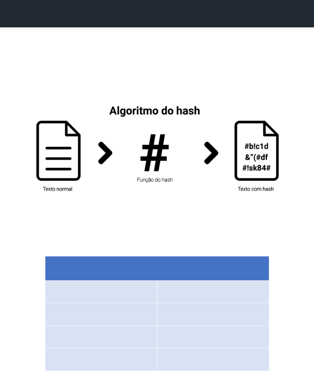 1 AMEAÇAS E VULNERABILIDADES À SEGURANÇA DA INFORMAÇÃO MÓDULO 2 FUNÇÕES DOS HASHES As manipulações impedem que os valores iniciais sejam recuperados a partir dos dados gerados, desta forma: A tabela a seguir apresenta os principais algoritmos de hash (funções de condensação) utilizados no mercado: Algoritmo Tamanho do hash gerado (bits) MD5 128 SHA-1 160 SHA-256 256 SHA-512 512 2 AMEAÇAS E VULNERABILIDADES À SEGURANÇA DA INFORMAÇÃO MÓDULO 2 Na tabela a seguir, consta o resultado para cada algoritmo do hash da palavra Brasil: Algoritmo Hash da palavra Brasil MD5 aa43becf0d21463be7540bf3b40bf243 SHA-1 6a969b07c9e1fd7e53e72b4f6f11a1613a734e45 SHA-256 6641C5A7FF9F56EF2BACEEFB41D9906583B9816A7B3E9C4C23773646B E584CAF SHA-512 07d8b53b89c4f687e82bac6b944697500d2db6c356a01c85ad53684fbf79 d53536393aa554af68336df224eaf8447da0f0d5f4fee62f08497fbce49ce5 b22f1f Como as funções de hashes podem ser aplicadas a quaisquer tipos de conjunto de dados, independentemente do tamanho, e o conjunto resultado possui um tamanho fixo, para um dado algoritmo, pode acontecer de dois dados de entrada diferentes encontrarem o mesmo conjunto resultado, fenômeno conhecido como colisão.