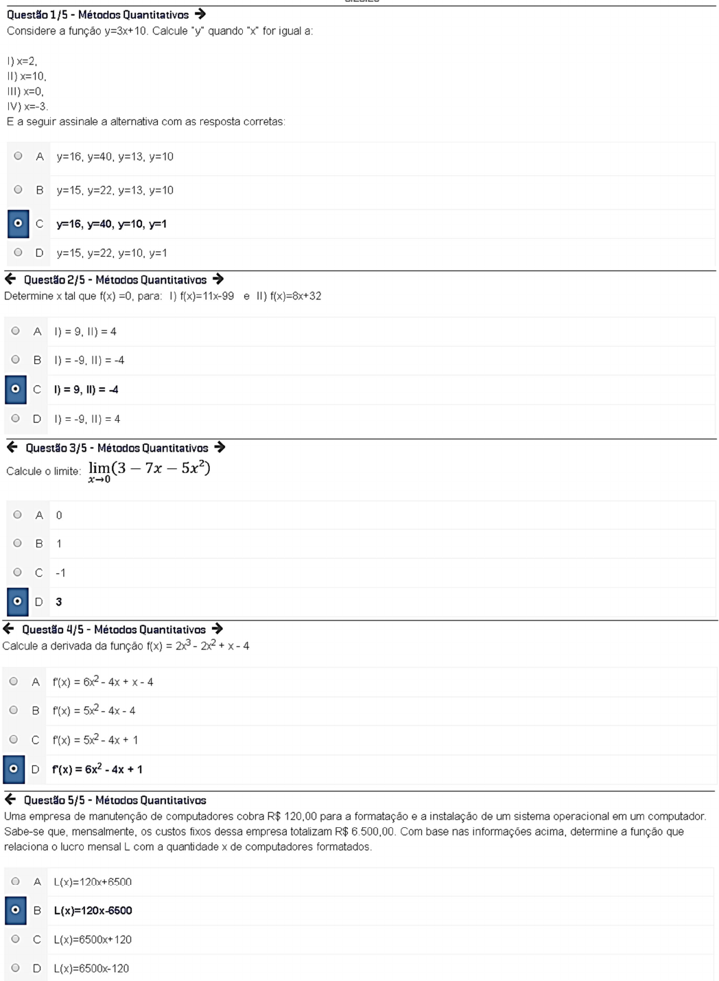 Questão 5ƒ5 - Métodos Quantitativos