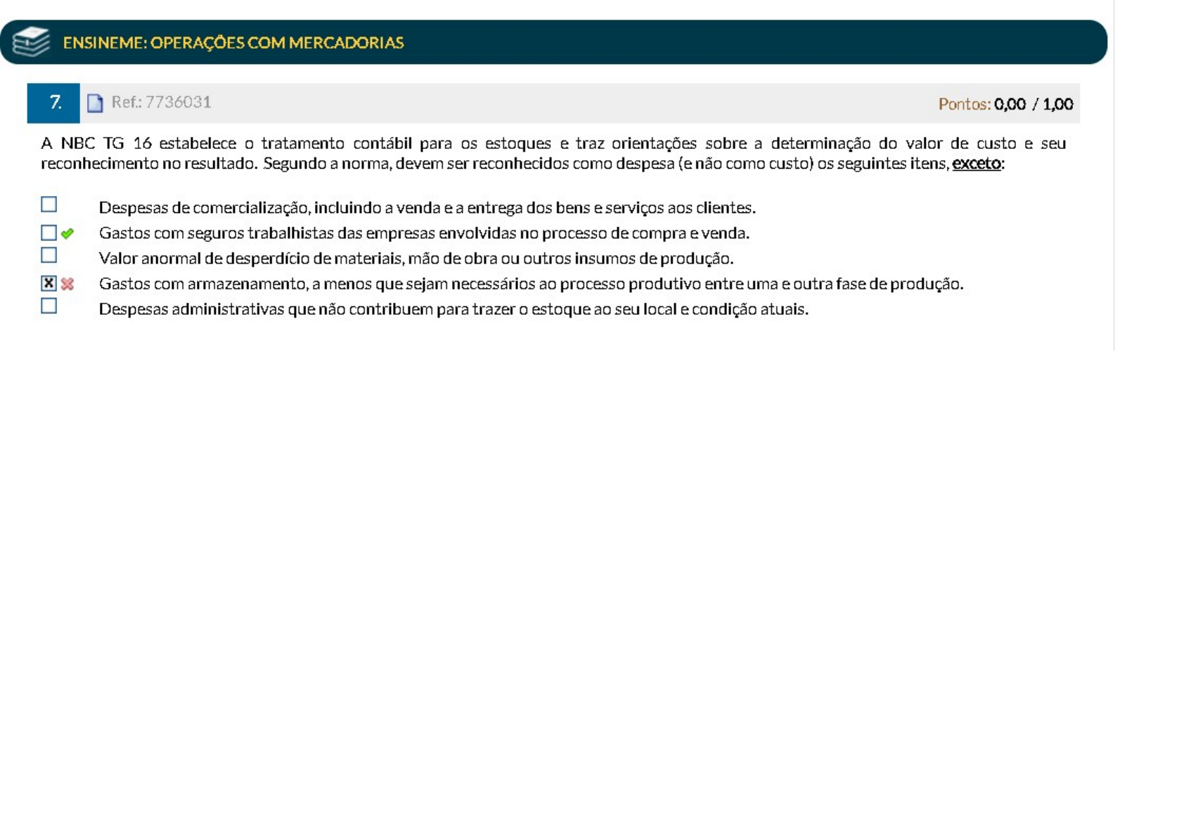 Disciplina: Contabilidade Comercia, Prova: 96325342 - Avaliação Final (Objetiva) - Ina 6. O desconto financeiro é o concedido mediante uma condição...