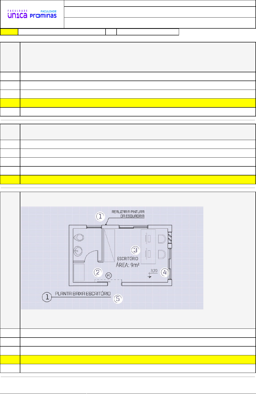 26/10/2023 20:31:41 1/3 REVISÃO DE SIMULADO Nome: PAULO SERGIO DOS SANTOS SUBTIL Disciplina: Desenho Projetivo Respostas corretas são marcadas em amarelo X Respostas marcardas por você. Questão 001 CESGRANRIO - 2016). A NBR 8403 da ABNT estabelece os tipos e larguras de linhas a serem utilizadas nos desenhos técnicos. Segundo essa norma, uma linha tracejada larga e uma linha traço e ponto estreita são utilizadas para designar, respectivamente: A) arestas visíveis e linhas de cota. B) linhas de centro e arestas não visíveis. X C) contornos não visíveis e arestas não visíveis. D) contornos não visíveis e linhas de simetria. E) arestas não visíveis e contornos não visíveis. Questão 002 (2016 – FCC) O tipo de desenho em que a metade da representação é mostrada em corte e a outra metade em vista é denominado A) vista cortada. B) corte parcial. C) corte-seção. X D) corte em desvio. E) meio-corte. Questão 003 Você recebeu o seguinte projeto de um escritório para avaliar os símbolos e as convenções gráficas utilizados. Dentre os números 1 a 5, escolha aquele cuja representação gráfica para o símbolo utilizado está correta. A) 5 B) 1 C) 4 X D) 2 E) 3 26/10/2023 20:31:41 2/3 Questão 004 (ELETROBRAS - 2017). No desenho técnico, o corte normalmente substitui uma das vistas e contribui para a perfeita interpretação da peça. Associe corretamente os diferentes cortes com as características da vista em corte da peça. Cortes 1 - Corte total. 2 - Corte em desvio. 3 - Meia vista-meio corte. 4 - Corte Parcial. 5 - Corte com rebatimento. Características I - aplicado em peças que não devam ser cortadas longitudinalmente e, geralmente, representado na própria vista. II - Deve ser usado apenas em peças simétricas. III - Secciona a peça em vários planos paralelos. IV - Secciona completamente a peça sem sofrer desvio. V - Deve ser usado apenas empeça que possuam centro de rotação. As características I, II, III, IV e V referem-se respectivamente a: A) 5-2-3-4-1. B) 2-1-3-5-4. C) 4-3-2-1-5. D) 3-5-2-1-4. X E) 5-2-3-1-4. Questão 005 (IF-PB - 2019). A ABNT NBR10067:1995 - Princípios gerais de representação em desenho técnico - fixa a forma de representação aplicada em desenho técnico. De acordo com a mesma, é correto afirmar, quanto à escolha das vistas no desenho técnico, que: A) Quando necessárias outras vistas, o menor número de vistas não é um critério de representação. B) Devem ser executadas tantas vistas quantas forem necessárias à caracterização da forma da peça, sendo preferíveis vistas, cortes ou seções ao emprego de grande quantidade de linhas tracejadas. C) A vista mais importante de uma peça deve ser utilizada como vista superior ou principal. X D) Quando necessárias outras vistas, deve-se prezar pela repetição de detalhes a fim de tornar o desenho mais claro. E) Quando necessárias outras vistas, os cortes e/ou seções, não possuem critérios para representação. Questão 006 (2017 – UFSB) A peça abaixo é confeccionada em concreto simples e a linha do corte está posicionada a 1 m do início da peça. Assinale a alternativa que ilustra a representação correta do Corte (1) e da Seção (2) da peça. A) B) X C) 26/10/2023 20:31:41 3/3 D) E) Questão 007 (IF-PB - 2019). A ABNT NBR10067:1995 - Princípios gerais de representação em desenho técnico - fixa a forma de representação aplicada em desenho técnico. Desta forma, de acordo com a norma citada, é correto afirmar, quanto à posição relativa das vistas no 3º diedro, que: A) Vista lateral esquerda, posicionada à direita. B) Vista superior, posicionada abaixo. X C) Vista posterior, posicionada à esquerda ou à direita, conforme a conveniência. D) Vista inferior, posicionada à acima. E) Vista lateral direita, posicionada à esquerda. Questão 008 (IF-PB - 2019). Ao executar o detalhamento de projetos de interiores é comumente necessário representar peças de mármores e granitos. Segundo a ABNT Norma 6492:1994 - Representação de projetos de arquitetura, qual das figuras abaixo representa corretamente estes materiais em corte? A) B) X C) D) E)