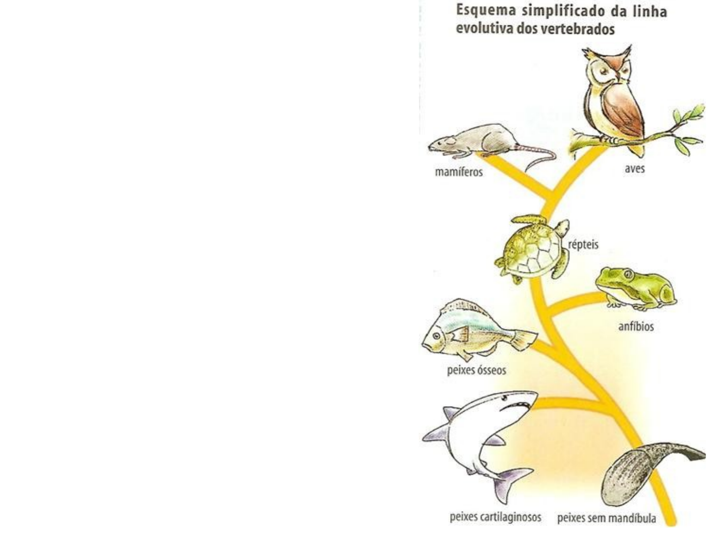 Reino Animalia (Metazoa) Peixes Representantes tubarões, raias, cações e quimeras. Peixes cartilaginosos Características Endoesqueleto de cartilagem; Boca ventral; Corpo coberto por escamas placóides; Pecilotérmicos (Heterotérmicos): a temperatura corporal varia conforme a temperatura externa; Ectotérmicos: necessitam de calor externo para se aquecerem. Peixes cartilaginosos Peixes cartilaginosos Fisiologia Sistema Digestório Completo: boca e cloaca; Carnívoros; Dentes cartilaginosos em fileira (renovação periódica); Fígado: armazena grande quantidade de óleo (contribui para a flutuação). Peixes cartilaginosos Fisiologia Sistema Respiratório Branquial; Opérculo ausente. Peixes cartilaginosos Fisiologia Sistema Circulatório Coração bicavitário; Circulação: simples, completa e fechada. Fisiologia Sistema Excretor Excreta nitrogenada: Ureia (Retenção de grande quantidade de ureia no sangue para evitar a perda de água para o meio externo por osmose). Peixes cartilaginosos Fisiologia Sistema Nervoso Ampola de Lorenzini: detecção de campo elétrico. Linhas laterais: detecção de vibrações na água. Olfato bastante desenvolvido. Fisiologia Reprodução Dioicos; Fecundação interna (machos possuem 2 pênis ou cláspers); Ovíparos: desenvolvimento externo no ovo; Ovovivíparos: filhotes nascem imaturos; Vivíparos: filhotes nascem totalmente formados. Peixes cartilaginosos Fisiologia Reprodução Representantes: salmão, baiacu, tilápia, cavalo marinho, sardinha,... Peixes ósseos Características Endoesqueleto de tecido ósseo; Brânquias com opérculo; Superfície corporal revestida por escamas dérmicas; Bexiga natatória presente: promove a flutuação do animal na água. Pecilotérmicos (Heterotérmicos) e Ectotérmicos. Peixes ósseos Fisiologia Sistema Digestório Completo: boca e ânus; Carnívoros, herbívoros, onívoros e parasitas; Peixes ósseos Fisiologia Sistema Respiratório Branquial; Opérculo presente; Bexiga natatória presente: Ao emergir: bexiga enche. Ao afundar: bexiga esvazia. Peixes ósseos Fisiologia Sistema Respiratório Peixes ósseos Peixes Dipnóicos Bexiga natatória Pulmão Respiram O2 atmosférico Fisiologia Sistema Circulatório • Coração bicavitário; • Circulação: simples, completa e fechada. Peixes ósseos Fisiologia Sistema Excretor Excreta nitrogenada: Amônia; Brânquias regulam o teor de sais no organismo (osmorreguladoras); Peixes ósseos Fisiologia Sistema Nervoso Presença de linha lateral; Peixes ósseos Fisiologia Reprodução • Dióicos (maioria) e Monóicos; • Fecundação e desenvolvimento externo; • Ovíparos (maioria); • Ovoviparos. Peixes ósseos VertebradosVertebrados Classe Amphibia (anfíbios) Primeiros tetrápodes Fase larval aquática e adulta terrestre Divididos em 3 ordens: Anura:(sapos, rãs, pererecas) Caudata ou Urodela: (salamandras e tritões) Apoda: (cobras-cegas ou cecílias) Anfíbios Primeiros vertebrados que colonizaram o ambiente terrestre Novidades evolutivas (adaptativas) Estruturas esqueléticas resistentes; Quatro apêndices locomotores (primeiros tetrápodes); Respiração pulmonar e cutânea, simultâneas; Anfíbios Sapo de chifre Sapo de chifre Sapo-boi-azul Sapo-cururu Rã dourada Rã Kambo Rã transparante Sapo-roxo Perereca-verde Iberia Eleutherodactylus Rã vermelha Paedophryne amauensis Rã leiteira Salamandra de fogo Ambystoma Bolitoglossa mexicana Salamandra gigante do Japão Cobra-cega Cobra-cega Cobra-cega Sistema Digestório: Completo (boca + cloaca) Maioria (carnívora) Alguns possuem língua protátil (predação) Sistema Respiratório: Fase larval: respiração branquial Fase adulta: respiração pulmonar e cutânea. Anfíbios A respiração cutânea Pele fina, altamente permeável com glândulas mucosas que lubrificam a superfície, facilitando as trocas gasosas. Anfíbios Sistema Circulatório: Circulação dupla, incompleta, com coração tricavitário (dois átrios e um ventrículo) Pecilotérmicos (heterotérmicos) Ectotérmicos Anfíbios Sistema Excretor: Fase larval (girino): excretam amônia Fase adulta: excretam uréia Sistema Nervoso: Visão e audição bastante desenvolvidos Membrana timpânica Anfíbios Reprodução: Dióicos Fecundação externa (anuros) ou interna (urodelos/caudata); Desenvolvimento direto (s/ metamorfose) ou indireto (c/ metamorfose) Ovo anamniótico sem casca. O saco vitelínico é o único anexo embrionário presente Peixes cartilaginosos Reprodução: Características Gerais RépteisRépteis Squamata Crocodilia Chelonia Lagartos, Serpentes e Anfisbenas Jacarés, Crocodilos e Gaviais Tartarugas, Jabutis e Cágados RépteisRépteis Crocodilo-do-Nilo RépteisRépteis Jacaré do Pantanal RépteisRépteis Gavial RépteisRépteis Iguana-verde RépteisRépteis Serpentes-marinhas RépteisRépteis Cobra-de-água-viperina RépteisRépteis Suçuabóia RépteisRépteis Anfisbena ou Cobra de duas cabeças RépteisRépteis Tartaruga-verde RépteisRépteis Jabuti-piranga RépteisRépteis Camaleão-velada RépteisRépteis Monstro de Gila RépteisRépteis Dragão de Komodo RépteisRépteis Píton-burmesa-albina RépteisRépteis Cobra-coral-verdadeira RépteisRépteis Surucucu Características Gerais Primeiro grupo de vertebrados a conquistar’ definitivamente o ambiente terrestre. Ovo amniótico com casca (calcária ou coriácea); Pele seca altamente queratinizada e impermeável; Fecundação interna; Ácido úrico como excreta nitrogenada. RépteisRépteis Ovo amniótico Casca: proteção mecânica, proteção contra desidratação e trocas gasosas. Âmnion: produz o líquido amniótico que hidrata o embrião. Córion: proteção e trocas gasosas. Alantóide: Armazenamento de excretas (ácido úrico). RépteisRépteis Ovo amniótico Temperatura do ovo relacionada com a determinação do sexo em répteis RépteisRépteis Grupos Crocodilia Chelonia Ovos incubados em altas temperatura s Machos Fêmeas Ovos incubados em baixas temperatura s 