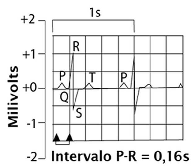 Seção 1: O Eletrocardiograma O impulso cardíaco que passa pelo coração propaga a corrente elétrica, não só por todo o músculo cardíaco, mas também propaga uma pequena proporção desta corrente para os tecidos adjacentes, que se dissemina por todo o corpo. Quando são colocados eletrodos sobre a pele, em pontos opostos ao coração, podem-se registrar os potenciais elétricos gerados por esta corrente. Este registro é chamado de eletrocardiograma. O eletrocardiograma apresenta algumas características que, quando presentes, é considerado como normal, que são a onda P, o complexo QRS (frequentemente formado por três ondas distintas: uma onda Q, uma onda R e uma onda S) e a onda T. Cada onda é a representação da atividade elétrica que ocorre durante o sistema de condução e o eletrocardiograma é a representação gráfica precisa e sequenciada dos eventos elétricos que ocorrem nas células cardíacas durante todo o processo. O eletrocardiograma, então, é formado por ondas de despolarização e de repolarização. Despolarização e Repolarização O interior da fibra cardíaca, no eletrocardiograma normal, possui potencial negativo que desaparece durante a despolarização, e o potencial de membrana se inverte, tornando-se ligeiramente positivo no interior e negativo no exterior. Quando as células miocárdicas de Purkinje são estimuladas, ocorre uma descarga de forças elétricas armazenadas dentro das células miocárdicas – esse fenômeno elétrico é chamado de DESPOLARIZAÇÃO e resulta na CONTRAÇÃO VENTRICULAR. Após a despolarização as células se recuperam e rearmazenam energia, este processo é REPOLARIZAÇÃO. Em condições normais o Nódulo AS só envia um novo impulso elétrico quando a repolarização esta completa. - repouso. Cada fase do ciclo cardíaco é caracterizada por alterações da atividade elétrica do coração que podem ser identificadas no ECG. O impulso elétrico originado no Nódulo SA, a condução através do coração, a estimulação dos músculos e o período de recuperação, podem ser correlacionados com fluxo de forças elétricas em cada uma destas fases especificamente. Seção 2: As derivações eletrocardiográficas Como as forças elétricas geradas pelo coração se espalham simultaneamente em várias direções, é necessário registrar o fluxo da corrente em diversos planos, caso se queira obter uma visão em conjunto da atividade elétrica cardíaca. As perspectivas, com que o eletrocardiograma (ECG) registra as informações a respeito das ondas, são chamadas de derivações e planos. Derivações: Fornecem uma imagem da atividade elétrica do coração entre um pólo positivo e um pólo negativo, entre os dois pólos existe uma linha imaginária que representa o eixo elétrico da derivação, que é um termo que faz referência à direção da corrente elétrica que se move pelo coração, essa direção influencia a deflexão para onde aponta uma onda no ECG. Triângulo de Einthoven – Em torno da área cardíaca é traçado um triângulo, chamado triângulo de Einthoven, como um meio esquemático de mostrar que os dois braços e a perna esquerda formam os vértices de um triângulo ao redor do coração. Saiba mais Quando não existe atividade elétrica ou ela é fraca demais para ser medida, aparecerá no ECG uma linha reta, denominada traçado isoelétrico. A direção da corrente elétrica determina a deflexão de uma onda de ECG, para cima ou para baixo. A medida que a corrente elétrica se afasta do polo positivo o eletrocardiógrafo registrara um deflexão principalmente para baixo. À medida que a corrente elétrica avança na direção do pólo positivo, o traçado apresenta deflexão principalmente para cima. As derivações eletrocardiográficas O ECG padrão ou standard é composto por 12 derivações e registra informações de 12 perspectivas diferentes do coração, fornecendo um quadro completo da atividade elétrica cardíaca e informações dos diferentes planos do coração. Estas derivações são obtidas à partir da colocação de eletrodos nos membros e no tórax do paciente, em locais determinados. Derivações Periféricas ou dos Membros: as derivações periféricas ou dos membros estão classificadas em Bipolares e Unipolares Ampliadas. Derivações Bipolares Periféricas: fornecem informações sobre o plano frontal (vertical) do coração; nestas derivações o eletrocardiograma é registrado através de dois eletrodos colocados nos diferentes lados do coração, utilizando-se os membros do paciente, por esta m “b ” c mb f g eletrodos, um negativo e um positivo, para formar um circuito completo com o elétrocardiografo. São identificadas pela letra D = derivação e numeradas de I a III, desta forma temos DI, DII e DIII. Derivação DI: fornece uma visão do coração que mostra a corrente elétrica se movendo da direita para a esquerda do coração e, como a corrente elétrica flui do negativo para o positivo, o eletrodo negativo é colocado no braço direito e o eletrodo positivo é colocado no braço esquerdo. A deflexão da onda é positiva no traçado de ECG. A derivação DI é útil para monitorar os ritmos atriais e os hemibloqueios cardíacos. Derivação II: fornece uma visão do coração que mostra a corrente elétrica se movendo para baixo e para a esquerda do coração, então o eletrodo positivo é colocado na perna esquerda e o negativo no braço direito do paciente. A deflexão da onda é produzida com alta voltagem positiva, resultando em ondas P, ondas R (dentro do complexo QRS) e ondas T altas. A derivação DII é útil para detectar arritmias do Nó SA, principal célula marca-passo cardíaca, e atriais, por esta razão é frequentemente utilizada para monitoramento dos pacientes. Derivação DIII: O eletrodo positivo é colocado na perna esquerda e o negativo no braço esquerdo, o que significa que o eletrocardiógrafo registra positivamente quando o 