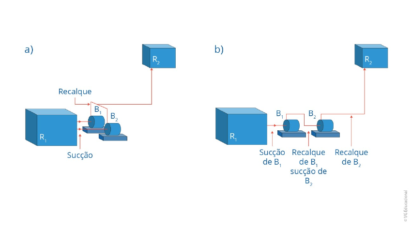 Engenharia Mecânica – Máquinas Hidráulicas – Anhembi Morumbi Atividade 3 – Ricardo Augusto de Abreu Borghi Diante da enorme variedade de exigências a que uma instalação hidráulica pode ser submetida, é natural que seja difícil de se encontrar, no mercado, uma única bomba, capaz de atender a todas as solicitações de vazão e altura manométrica. Por esse motivo, é necessário realizar a associação de bombas. A seguinte figura ilustra, esquematicamente, uma associação das bombas (a) em paralelo e (b) em série. Figura - Associação das bombas (a) em paralelo e (b) em série Fonte: Baptista e Lara (2010, p. 170). #PraCegoVer: A figura mostra o esquema de associação de bombas (a) em paralelo e (b) em série. Iniciando à esquerda da imagem, na figura (a), há um cubo cinza R1, simbolizando o motor de acionamento de duas bombas ligadas em paralelo; mais à direita, há duas linhas horizontais e, abaixo delas, está escrito sucção. Essas linhas se conectam cada uma em uma bomba diferente. Há dois cilindros escritos B1 mais ao fundo e B2 mais à frente da imagem, simbolizando as bombas 1 e 2, respectivamente. Mais à direita, uma linha denominada recalque sai da parte superior das bombas. A linha se desloca para a direita e sobe verticalmente em direção a um cubo cinza R2, que faz referência a um reservatório. Ao lado direito da imagem, na figura (b), há um cubo cinza R1, simbolizando o motor de acionamento de duas bombas ligadas em série; mais à direita, há uma linha horizontal e, abaixo dela, está escrito sucção de B1. Essa linha se conecta, mais à direita, à bomba B1. Mais à direita, uma linha denominada recalque de B1 e sucção de B2 sai da parte superior de B1 e entra na parte de trás da bomba B2. Outra linha, nomeada como recalque de B2, sai da parte superior da bomba B2, desloca-se para a direita e sobe verticalmente em direção a um cubo cinza R2, que faz referência a um reservatório. BAPTISTA, M.; LARA, M. Fundamentos de Engenharia Hidráulica. 3. ed. Belo Horizonte: Editora UFMG, 2010. Comente sobre os principais componentes e apresente alguns benefícios e limitações das associações em série e em paralelo. Resposta: Associação em série: Sistema amplamente utilizado, quando da necessidade de obter uma variação representativa da altura manométrica de elevação, tem por característica uma vazão que não sofre alteração mas a pressão sim é aumentada a medida que é submetida ao dispositivo, considerando que, Ht = Hbomba (a) + Hbomba (b) Este sistema é utilizado quando há necessidade da elevatória suprir reservatórios em distâncias ou níveis variantes, ou em sistemas industriais que contam com reservatórios com várias pressões e devam ser constantemente supridos ou situações das quais as pressões são demasiadamente diversificadas. Observamos por fim, que ao associarmos bombas em série para uma vazão específica, a carga manométrica será invariavelmente fornecida por cada bomba presente no projeto, dessa forma, entende-se que basta somar as alturas manométricas de cada bomba para se obter curvas características , e quando a altura manométrica for muito elevada devemos sempre analisar a possibilidade do emprego de bombas em série, observando as capacidades de pressões e obviamente, procurando elegem o mesmo modelo afim de otimizar os processos de manutenção. O ponto positivo na utilização da associação de bombas em série é o fato de permitir o abastecimento de reservatórios em níveis ou distâncias distintos como também escalonadas. O ponto negativo dá-se no momento da manutenção, onde, quando apenas uma bomba for submetida à manutenção, todas as outras do sistema deverão permanecer paradas. Associação em paralelo: Quando há a necessidade de obter variações importantes na vazão do sistema, adota-se a associação em paralelo, dessa forma, tendo uma vazão aumentada, consequentemente a pressão também se elevará, mas a altura manométrica permanecerá constante. Quando se emprega o sistema paralelo, se obterá a vantagem de que não haverá interrupção completa da operação caso uma bomba apresente falha operacional, e sim, no máximo, uma redução da vazão que está sendo bombeada pelo sistema, também como uma vantagem bem peculiar, é o fato que o sistema em paralelo é flexível do ponto de vista operacional pois, como a vazão é variável, permite-se a remoção ou introdução de bombas em funcionamento no sistema sem acarretar maiores prejuízos na vazão requerida. O ponto positivo da associação em paralelo é o fato do aumento da vazão poderá acelerar consideravelmente o processo de enchimento de reservatórios, e facilitará muito em caso de manutenção, já que haverá a possibilidade de isolar um dos itens que esteja apresentando falha, tendo pequena perda no volume de vazão mas prejuízo algum no abastecimento. O ponto negativo observado na associação em paralelo, dá-se pela necessidade de calcular a pressão estanque da linha, pois as constantes variações de pressão poderão causar fissuras e rupturas de válvulas e conexões, obrigando a ter uma constante avaliação em toda a rede, pois tais variações abruptas de pressão, causam o efeito de golpe de aríete nas estruturas, obrigando a necessidades maiores de manutenção preventiva.