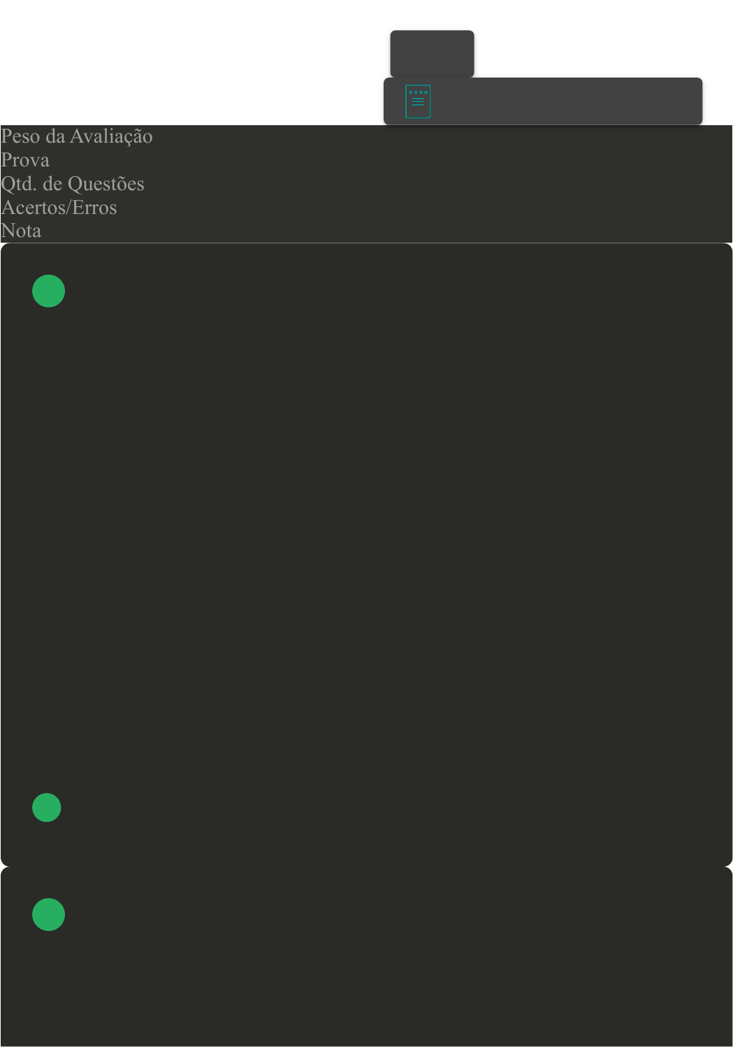 11/11/2023 17:59 Avaliação II - Individual about:blank 1/6 Prova Impressa GABARITO | Avaliação II - Individual (Cod.:890364) Peso da Avaliação 1,50 Prova 74303070 Qtd. de Questões 10 Acertos/Erros 9/1 Nota 9,00 O planejamento de um sistema educacional nos remete ao planejamento que envolve três níveis governamentais: nacional, estadual e municipal. Cada qual adaptando-se à sua realidade a partir do planejamento nacional. Desta forma, os documentos formulados pelos sistemas governamentais, mesmo tendo diferentes enfoques, possuem em comum alguns elementos constitutivos. Sobre os elementos de afinidade com relação ao sistema, analise as sentenças a seguir: I- Desenvolvimento, logística, formulação de objetivos, formatação das leis. II- Conjunto de elementos de um todo, relação dos elementos coordenados. III- Embasamento teórico, métodos adotados pelos profissionais. IV- Formação de núcleos, desconsiderando o que apresenta o sistema. Agora, assinale a alternativa CORRETA: A As sentenças I e IV estão corretas. B As sentenças II e IV estão corretas. C Somente a sentença III está correta. D As sentenças I, II e III estão corretas. O planejamento é um elemento essencial para que qualquer atividade alcance êxito. Assim sendo, quando realizamos o planejamento, dentro da educação, o professor necessita apegar-se ao plano de aula, ao plano diário, em que cada professor desenvolve suas atividades. Sobre o plano de aula, classifique V para as sentenças verdadeiras e F para as falsas: VOLTAR A+ Alterar modo de visualização 1 2 11/11/2023 17:59 Avaliação II - Individual about:blank 2/6 ( ) Um elemento que auxilia na delimitação de passos a serem desenvolvidos. ( ) Um esboço do que se pretende trabalhar de forma escrita ou mental. ( ) Um elemento ineficaz no processo de ensino-aprendizagem. ( ) Um elemento para ser somente apresentado aos gestores. Agora, assinale a alternativa que apresenta a sequência CORRETA: A F - F - V - V. B V - V - F - F. C F - V - F - V. D V - F - V - F. À primeira vista, a profusão de conceitos para organizar a Base Nacional Comum Curricular (BNCC) pode parecer um pouco confusa. O texto do Plano Nacional de Educação (PNE) determinava que o documento fosse organizado por direitos e objetivos de aprendizagem e desenvolvimento, mas as duas últimas versões do documento alteraram os termos usados no Ensino Fundamental. São eles: A Direitos de Aprendizagem. B Objetivos Educacionais. C Objetivos Gerais e Específicos. D Competências e Habilidades. Dentre as práticas de ensino que podem ser adotadas, hé uma prática em que o aluno estuda um assunto delimitado a partir de um roteiro idealizado pelo professor. Assinale a alternativa CORRETA que apresenta essa prática: A Aula Expositiva. 3 4 11/11/2023 17:59 Avaliação II - Individual about:blank 3/6 B Aula Dialogada. C Estudo Dirigido. D Método Montessori. Na formação inicial do professor, podemos encontrar inúmeras dificuldades, como os currículos que são desenvolvidos por universidades sem a preocupação de ligar o científico e o pedagógico (teoria e prática). Dessa maneira, observamos que muitos professores vivenciam e executam tarefas totalmente diferentes das aprendidas em sua formação inicial. Dentro desta perspectiva, há vários motivos que podem acarretar tais dificuldades. Sobre esses motivos, assinale a alternativa CORRETA: A Pela falta de vivência dos futuros professores nas escolas. B Pela falta de materiais didáticos adequados para o ensino dos conteúdos. C Pela falta de comunicação entre o ensino superior e a comunidade escolar. D Pela falta de infraestrutura adequada para que os futuros professores possam estudar. Os objetivos educacionais são divididos quanto à sua especificação em gerais e específicos. Com relação ao objetivo geral, analise as seguintes sentenças: I- Os objetivos gerais podem ser formulados simultaneamente, pelo sistema escolar, pela escola e pelo professor. II- São complexos e alcançáveis em determinado período (médio ou longo prazo). III- Esclarece e direciona o foco central do planejamento ou pesquisa de maneira ampla. IV- São também chamados de objetivos instrucionais, pois auxiliam na escolha das atividades a serem desenvolvidas nas aulas. Assinale a alternativa CORRETA: A Somente a sentença II está correta. B As sentenças II e IV estão corretas. 5 6 11/11/2023 17:59 Avaliação II - Individual about:blank 4/6 C As sentenças I, II e III estão corretas. D As sentenças I e IV estão corretas. No início do ano letivo, todos os professores, reunidos em suas escolas, com o gestor da instituição, realizam reuniões para organizar e planejar todas as atividades que serão ou se deseja realizar no ano letivo. Este planejamento é um documento que pergunta onde estamos onde queremos chegar. Com a obtenção destas repostas, realiza-se um feedback para observar os pontos positivos e negativos dentro desse processo. Sobre a que se refere esse tipo de planejamento, analise as opções a seguir: I- Planejamento curricular. II- Planejamento escolar. III- Planejamento didático. IV- Planejamento extracurricular. Assinale a alternativa CORRETA: A As sentenças II e IV estão corretas. B Somente a sentença III está correta. C As sentenças I e III estão corretas. D Somente a sentença II está correta. A utilização do jogo necessita de algumas adaptações, pois, dependendo do conteúdo a ser trabalhado, o professor precisa criar jogos que se adequem a sua atividade proposta. Considerando algumas sugestões de como utilizar os jogos de maneira adequada e proveitosa no ensino, assinale a alternativa INCORRETA: A Determine os conteúdos que serão abordados ou fixados através da aprendizagem pelo jogo. B Não explique aos alunos, nem oralmente nem por escrito, as regras do jogo. Deixe que eles descubram à medida que o manipulam. 7 8 11/11/2023 17:59 Avaliação II - Individual about:blank 5/6 C Elabore um jogo 