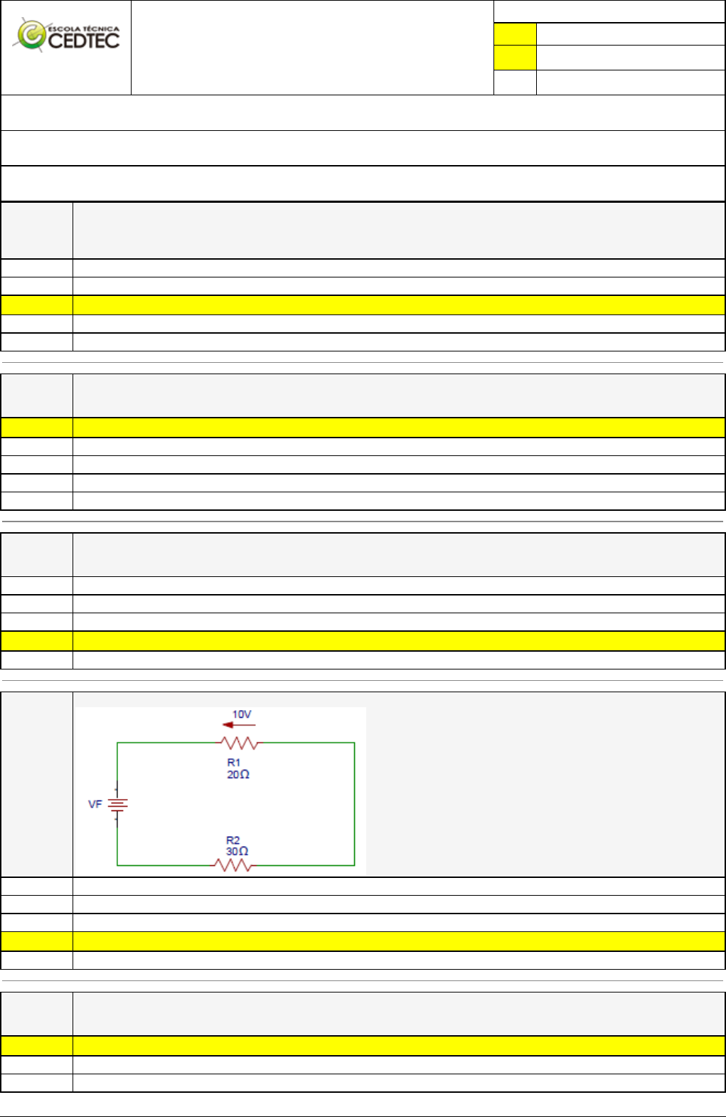 Pincel Atômico - 12/11/2023 16:00:42 1/5 DIONATAN SOBRINHO DE ANDRADE Avaliação Presencial (EAD) Atividade finalizada em 18/03/2023 11:02:06 (748439 / 1) LEGENDA Resposta correta na questão # Resposta correta - Questão Anulada X Resposta selecionada pelo Aluno Disciplina: ELETRICIDADE [773099] - Avaliação com 20 questões, com o peso total de 51,00 pontos [capítulos - Todos] Turma: Curso Técnico: Eletrotécnica - Grupo: EAD - 01/23 - EAD ELE [79214] Aluno(a): 91390018 - DIONATAN SOBRINHO DE ANDRADE - Respondeu 9 questões corretas, obtendo um total de 22,95 pontos como nota [114_10106] Questão 001 Suponha que em sua casa uma lâmpada de 100 [W] permanece acesa 6h/dia. Qual será o custo mensal (30 dias) de funcionamento dessa lâmpada: Dados: 1kWh = R$0,20 R$4,40 R$2,40 X R$3,60 R$1,80 R$1,20 [114_7563] Questão 002 O sentido eletrônico se refere ao sentido de movimentação dos(as): X Elétrons Íons e das lacunas Íons Lacunas Elétrons e das lacunas [114_175120] Questão 003 A eletricidade (do grego elétron, que significa âmbar) é um fenômeno físico originado por cargas elétricas. Há dois tipos de cargas elétricas: positivas e negativas. As cargas de nomes iguais (mesmo sinal) se repelem e as de nomes distintos (sinais diferentes) se atraem. De acordo com a informação, assinale a alternativa CORRETA: Os prótons possuem carga elétrica negativa. O fenômeno descrito acima não pode ser explicado utilizando-se o modelo atômico de Rutherford. Os elétrons possuem carga elétrica positiva. X O fenômeno descrito acima não pode ser explicado utilizando-se o modelo atômico de Dalton. O fenômeno descrito acima não pode ser explicado utilizando-se o modelo atômico de Thomson. [114_30986] Questão 004 No circuito abaixo, determine a tensão da fonte (VF). 30 [V] 10 [V] 50 [V] X 25 [V] 20 [V] [114_30965] Questão 005 Um ferro de solda absorve 3 [A] funcionando em 110 [V]. Qual é a potência requerida? X 330 [W] 430 [W] 113 [W] Pincel Atômico - 12/11/2023 16:00:42 2/5 230 [W] 360 [W] [114_35329] Questão 006 O que é um circuito puramente resistivo? É um dos mais simples filtros eletrônicos de resposta de impulso infinita analógicos. Ele consiste de um resistor e de um indutor, podendo estar ligados tanto em série quanto em paralelo, sendo alimentados por uma fonte de tensão. X É um circuito elétrico consistindo de um resistor (R), um indutor (L) e um capacitor (C) conectados em série ou em paralelo. É aquele em que as cargas capacitivas e indutivas se anulam, fazendo com que a impedância tenha apenas a parcela real de resistência, sem a parcela imaginária. É aquele em que as cargas capacitivas e indutivas não se anulam, fazendo com que a impedância tenha apenas a parcela real de resistência, sem a parcela imaginária. [114_31000] Questão 007 Um ohmímetro serve para medição de: Continuidade de um circuito X Corrente elétrica Energia Tensão Potência [114_175190] Questão 008 Sobre a ligação trifásica que está representada na figura Podemos afirmar que: I - é uma ligação em triangulo ou A. II - é uma ligação em estrela ou Y com neutro. III - é uma ligação em estrela ou Y sem neutro. IV - Para Z1 = Z2 = Z3, a corrente de linha tem um valor eficaz 3 vezes maior que a corrente de fase. Está(ão) correta(s), apenas: IV III III e IV X II I [114_30992] Questão 009 Um circuito é formado por três resistores de 30 [Ω] e associados em paralelo. Se a tensão na fonte é de 20 [V], determine a potência que a fonte oferece ao circuito. 80 [W] X 60 [W] 50 [W] 70 [W] 40 [W] [114_45349] Questão 010 No bulbo de uma determinada lâmpada encontra-se gravados 100 W – 120 V. Em função destes dados, calcule a intensidade de corrente ”I” que a percorrerá, se considerarmos que a mesma foi conectada a uma fonte de 120 [V]: X I = 0,8 [A] I = 1,0 [A] I = 3,0 [A] I = 2,0 [A] I = 1,8 [A] Pincel Atômico - 12/11/2023 16:00:42 3/5 [277_285] Questão 011 O gráfico abaixo está de acordo com a lei de Ohm? X Não, pois os valores são diretamente proporcionais. Não, pois em qualquer ponto da reta o valor de R será 500 [Ω]. Sim, pois os valores são diretamente proporcionais. Não, pois a curva indica valores inversamente proporcionais. Sim, pois em qualquer ponto da reta o valor de R será 400 [Ω]. [277_54354] Questão 012 Considere a carga em triângulo equilibrada abaixo (ZAB=ZBC=ZCA) e calcule as Potências Ativa e Reativa trifásicas, considerando o defasamento de 30°: Dados: VL = 200 V e Z∆ = 100 ohms Q3Ø = 500 [VAr] e P3Ø = 1039,2 [W] X Q3Ø = 500 [VAr] e P3Ø = 2039,2 [W] Q3Ø = 600 [VAr] e P3Ø = 2039,2 [W] Q3Ø = 800 [VAr] e P3Ø = 3039,2 [W] Q3Ø = 600 [VAr] e P3Ø = 1039,2 [W] [277_45384] Questão 013 Considere um circuito RL paralelo com R = 40 Ω e XL = 60Ω . Se nesse circuito a tensão da fonte é 120 Vef. Determine a corrente total na fonte: X IT = 2,6 [A] IT = 0,6 [A] IT = 3,6 [A] IT = 5,0 [A] IT = 1,6 [A] Pincel Atômico - 12/11/2023 16:00:42 4/5 [277_208] Questão 014 No circuito a seguir, a resistência equivalente, corrente elétrica e a potência são, respectivamente: Req = 10,69 [Ω] I = 1,80 [A] P = 25,00 [W] Req = 8,70 [Ω] I = 1,40 [A] P = 17,00 [W] Req = 110,69 [Ω] I = 1,40 [A] P = 21,00 [W] X Req = 4,90 [Ω] I = 4,08 [A] P = 81,6 [W] Req = 22,80 [Ω] I = 1,20 [A] P = 28,00 [W] [277_175123] Questão 015 Os modelos atômicos descrevem alguns aspectos estruturais dos átomos. Sobre essa afirmação podemos afirmar que Os principais modelos atômicos são: Modelo de Rutherford e o Modelo de Rutherford-Bohr. O primeiro modelo atômico desenvolvido foi o Modelo Atômico de Rutherford. Newton foi contra os modelos atômicos. X Os modelos atômicos foram desenvolvidos por cientistas com o intuito de compreender melhor o átomo e a sua composição. Os modelos atômicos foram desenvolvidos pelos cientistas gregos Leucipo e Demócrito. [277_222] Questão 016 No circuito a seguir, a resistência equivalente, corrente elé