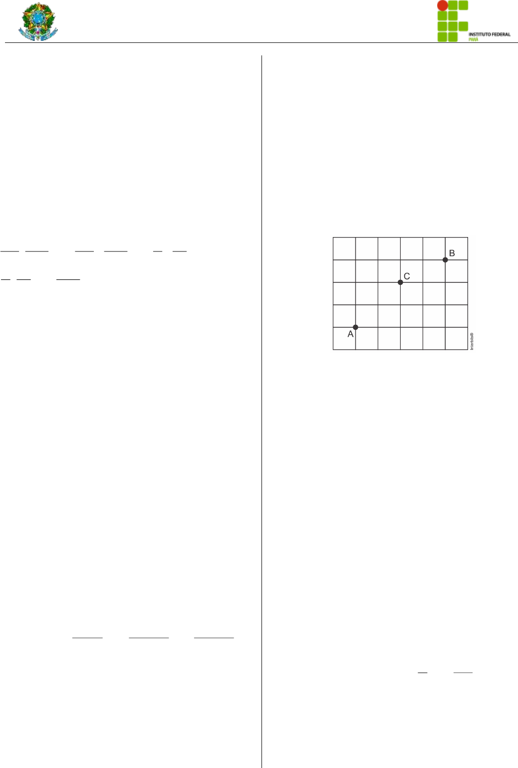 SERVIÇO PÚBLICO FEDERAL MINISTÉRIO DE EDUCAÇÃO INSTITUTO FEDERAL DE EDUCAÇÃO, CIÊNCIA E TECNOLOGIA DO PARÁ CAMPUS TUCURUÍ MATEMÁTICA III DOCENTE: PATRÍCIA BORCHARDT ANÁLISE COMBINATÓRIA – ENEM 1. (ENEM 2021) Uma pessoa produzirá uma fantasia utilizando como materiais: 2 tipos de tecidos diferentes e 5 tipos distintos de pedras ornamentais. Essa pessoa tem à sua disposição 6 tecidos diferentes e 15 pedras ornamentais distintas. A quantidade de fantasias com materiais diferentes que podem ser produzidas é representada pela expressão a) 6! 15! 4!2! 10!5! b) 6! 15! 4!2! 10!5! c) 6! 15! 2! 5! d) 6! 15! 2! 5! e) 21! 7!14! 2. (ENEM PPL 2021) Um diretor esportivo organiza um campeonato no qual haverá disputa de times em turno e returno, isto é, cada time jogará duas vezes com todos os outros, totalizando 380 partidas a serem disputadas. A quantidade de times (x) que faz parte desse campeonato pode ser calculada pela equação a) x = 380 – x2 b) x2 – x = 380 c) x2 = 380 d) 2x – x = 380 e) 2x = 380 3. (ENEM PPL 2020) A prefeitura de uma cidade está renovando os canteiros de flores de suas praças. Entre as possíveis variedades que poderiam ser plantadas, foram escolhidas cinco: amor-perfeito, cravina, petúnia, margarida e lírio. Em cada um dos canteiros, todos com composições diferentes, serão utilizadas somente três variedades distintas, não importando como elas serão dispostas. Um funcionário deve determinar os trios de variedades de flores que irão compor cada canteiro. De acordo com o disposto, a quantidade de trios possíveis é dada por a) 5 b) 5 3 c) 5! (5 3)! d) 5! (5 3)!2! e) 5! (5 3)!3! 4. (ENEM PPL 2020) Um determinado campeonato de futebol, composto por 20 times, é disputado no sistema de pontos corridos. Nesse sistema, cada time joga contra todos os demais times em dois turnos, isto é, cada time joga duas partidas com cada um dos outros times, sendo que cada jogo pode terminar empatado ou haver um vencedor. Sabendo-se que, nesse campeonato, ocorreram 126 empates, o número de jogos em que houve ganhador é igual a a) 64. b) 74. c) 254. d) 274. e) 634. 5. (ENEM 2020) Três amigos, André, Bernardo e Carlos, moram em um condomínio fechado de uma cidade. O quadriculado representa a localização das ruas paralelas e perpendiculares, delimitando quadras de mesmo tamanho nesse condomínio, em que nos pontos A, B e C estão localizadas as casas de André, Bernardo e Carlos, respectivamente. André deseja deslocar-se da sua casa até a casa de Bernardo, sem passar pela casa de Carlos, seguindo ao longo das ruas do condomínio, fazendo sempre deslocamentos para a direita ( ) ou para cima ( ), segundo o esquema da figura. O número de diferentes caminhos que André poderá utilizar para realizar o deslocamento nas condições propostas é a) 4. b) 14. c) 17. d) 35. e) 48. 6. (ENEM 2020) Nos livros Harry Potter, um anagrama do nome do personagem “TOM MARVOLO RIDDLE” gerou a frase “I AM LORD VOLDEMORT”. Suponha que Harry quisesse formar todos os anagramas da frase “I AM POTTER”, de tal forma que as vogais e consoantes aparecessem sempre intercaladas, e sem considerar o espaçamento entre as letras. Nessas condições, o número de anagramas formados é dado por a) 9! b) 4!5! c) 2 4!5! d) 9! 2 e) 4!5! 2 7. (ENEM digital 2020) Eduardo deseja criar um e-mail utilizando um anagrama exclusivamente com as sete letras que compõem o seu nome, antes do símbolo @ . O e-mail terá a forma *******@site.com.br e será de tal modo que as três letras “edu” apareçam sempre juntas e SERVIÇO PÚBLICO FEDERAL MINISTÉRIO DE EDUCAÇÃO INSTITUTO FEDERAL DE EDUCAÇÃO, CIÊNCIA E TECNOLOGIA DO PARÁ CAMPUS TUCURUÍ exatamente nessa ordem. Ele sabe que o e-mail eduardo@site.com.br já foi criado por outro usuário e que qualquer outro agrupamento das letras do seu nome forma um e-mail que ainda não foi cadastrado. De quantas maneiras Eduardo pode criar um e-mail desejado? a) 59 b) 60 c) 118 d) 119 e) 120 8. (ENEM digital 2020) Um modelo de telefone celular oferece a opção de desbloquear a tela usando um padrão de toques como senha. Os toques podem ser feitos livremente nas 4 regiões numeradas da tela, sendo que o usuário pode escolher entre 3, 4 ou 5 toques ao todo. Qual expressão representa o número total de códigos existentes? a) 5 4 34 4 4 b) 5 4 34 4 4 c) 5 4 34 4 4 d) 5(4!) e) 54 9. (ENEM 2019) Uma empresa confecciona e comercializa um brinquedo formado por uma locomotiva, pintada na cor preta, mais 12 vagões de iguais formato e tamanho, numerados de 1 a 12. Dos 12 vagões, 4 são pintados na cor vermelha, 3 na cor azul, 3 na cor verde e 2 na cor amarela. O trem é montado utilizando-se uma locomotiva e 12 vagões, ordenados crescentemente segundo suas numerações, conforme ilustrado na figura. De acordo com as possíveis variações nas colorações dos vagões, a quantidade de trens que podem ser montados, expressa por meio de combinações, é dada por a) 4 3 3 212 12 12 12C C C C b) 4 3 3 2 12 8 5 2C C C C c) 4 3 212 8 5C 2 C C d) 4 3 2 12 12 12C 2 C C e) 4 3 3 212 8 5 2C C C C 10. (ENEM 2018) O Salão do Automóvel de São Paulo é um evento no qual vários fabricantes expõem seus modelos mais recentes de veículos, mostrando, principalmente, suas inovações em design e tecnologia. Disponível em: http://g1.globo.com. Acesso em: 4 fev. 2015 (adaptado). Uma montadora pretende participar desse evento com dois estandes, um na entrada e outro na região central do salão, expondo, em cada um deles, um carro compacto e uma caminhonete. Para compor os estandes, foram disponibilizados pela montadora quatro carros compactos, de modelos distintos, e seis caminhonetes de diferentes cores para serem escolhidos aqueles que serão expostos. A posição dos carros dentro de cada estande é irrelevante. Uma expressão que fornece a quantidade de maneiras diferentes que os estandes podem ser compostos é a) 410A b) 4 10C c) 2 2 4 6C C 2 2 d) 2 