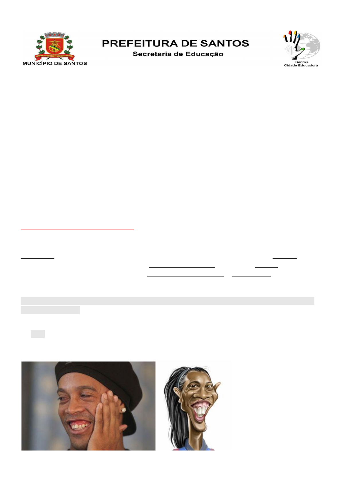 V v Roteiro de Estudos - Mário de Almeida Alcântara Nome do professor: Ilza Disciplina: Língua Portuguesa Anos: 7º A , 7ºB e 7ºC Objetivos: Conhecer , analisar e interpretar caricatura,charges, cartuns , tirinhas e memes. Roteiros de 15 a 26 de março Aula 1 – Caricatura é uma fotografia desenhada e evolui para a charge. Como a charge, o cartum é apresentado em um quadro apenas. Um conjunto de cartuns formam uma tirinha, que tem introdução, desenvolvimento e desfecho. História em quadrinhos é uma tirinha que envolve mais personagens, mais conflitos, mais situações. Caricatura é a representação exagerada de características ou hábitos de uma pessoa. Observe as imagens abaixo: 1- Foto e Caricatura Charges, cartuns e tirinhas são gêneros textuais de caráter humorístico, que fazem uso da linguagem verbal e não verbal, logo, texto escrito e imagens compõem os sentidos desses gêneros. Apesar de compartilharem do mesmo caráter humorístico, eles têm diferenças entre si. A charge Charge e cartum Qual a diferença entre charge e cartum? A charge aborda temas de cunho político, econômico ou do meio social, de forma satírica/irônica. Nela, sempre irão aparecer personagens situados em um determinado tempo e espaço.. A charge de Jean Galvão publicada na Folha no dia 19 de julho de 2020 remete à volta às aulas sob o risco de contaminação pelo coronavírus Cartum: Já o Cartum, diferentemente da charge, não se localiza em determinado tempo e espaço, ou seja, é atemporal. Nesse gênero, o comportamento humano e as relações são apresentadas de maneira humorística e crítica, os personagens podem ser pessoas comuns e estarem situados em qualquer lugar. O cartum pode apresentar, inclusive, somente a presença da linguagem não verbal. O nome cartum, é oriundo do inglês cartoon, que significa cartão. Esse cartão tem como objetivo a realização de uma crítica veloz através de uma imagem que possa ser representativa para o leitor e levá-lo a uma reflexão. Mafalda, a personagem do cartunista argentino Quino, realiza diversas críticas sociais desde 1964 DIFERENÇA ENTRE CHARGE E CARTUM: Charge Cartum Definição Críticas a acontecimentos recentes, envolvendo figuras públicas. Sátiras a questões sociais, de forma atemporal e universal. Característica s ● Linguagem verbal e não verbal ● Humor ● Leitura crítica do cotidiano ● Atual ● Efêmero ● Precisa de contextualização ● Situações particulares ● Personagens públicas ● Linguagem verbal e não verbal ● Humor ● Leitura crítica da realidade ● Atemporal ● O contexto é a própria sociedade ● Situações e questões coletivas Exemplos ● Críticas ao governo ● Criticas a personalidades públicas ● Visão crítica sobre uma notícia que despertou a atenção do público ● Críticas à sociedade ● Questionamento sobre o cotidiano Ambos são gêneros jornalísticos que se utilizam de linguagem não verbal (palavras) e não verbal (imagens) associadas ao humor. As tirinhas são como histórias em quadrinhos, porém, mais curtas. Geralmente essa sequência de quadrinhos faz críticas sociais e são publicadas com regularidade. Elas podem estar presentes em revistas, jornais, sites, mídias sociais, entre outros. É provável que sua origem tenha sido no ano de 1895, com a primeira tira “The Yellow Kid”(O garoto amarelo), no jornal New York World. Adaptação para educação especial: Aula 2- Leia e responda: Mafalda, criação do cartunista argentino Quino, é conhecida por suas opiniões ácidas e críticas sobre os mais variados assuntos 1-Assinale a alternativa que melhor expresse o efeito de humor contido na tirinha: https://escolaeducacao.com.br/tirinhas-humor-nas-aulas/ a) O discurso feminista de Susanita é responsável pelo efeito de humor, já que o tema é tratado de forma irônica, denotando certo machismo por parte do autor da tirinha. b) Mafalda opõe-se ao discurso da amiga Susanita e, por meio de suas feições em todos os quadrinhos, percebe-se nitidamente seu descontentamento. c) A linguagem verbal não contribui para o melhor entendimento da tirinha, pois todo efeito de humor está contido na linguagem não verbal por meio da expressão exibida por Mafalda no último quadrinho. d) Susanita apresenta um discurso de acordo com as teorias feministas que pregam a libertação das práticas tradicionalmente atribuídas à mulher. Contudo, no último quadrinho, a personagem defende o uso de uma tecnologia que apenas reforça os padrões tradicionais. 2-Sobre as charges e tirinhas, é incorreto afirmar: a) As charges são poderosos veículos de comunicação, constituindo um gênero que alia a força das palavras a imagens e muito bom humor. b) No Brasil, a charge é comumente utilizada com a intenção de tecer críticas políticas e sociais, sempre preservando como traço predominante o humor. c) Assim como nas charges, as tirinhas apresentam uma linguagem permeada pelo bom humor, aliando as linguagens verbal e não verbal para a construção de sentidos do texto. d) As charges e as tirinhas não podem ser consideradas como gêneros textuais, visto que a linguagem não verbal é a linguagem predominante. Adaptação para educação especial: Aula 3- Cartum - Direitos dos cidadãos 1. Observe a personagem do cartum e o local em que ela se encontra. a) A personagem é um adulto ou uma criança? b) Em que local ela se encontra? c) O que ela está fazendo? d) De que tipo são as aves que sobrevoam o local? 2. Observe as palavras escritas no cartum. Marque a opção que indica a que elas se referem: a) Aos deveres de todos os cidadãos. b) Aos direitos de todos os cidadãos. c) Aos direitos de algumas pessoas. 3. O humor do cartum está na correspondência entre as palavras e as imagens. No cartum, que elemento representa: a) a moradia? b) a informação? c) a alimentação? d) a educação? e) o transporte? f) o saneamento básico? g) a saúde? 4. A cri