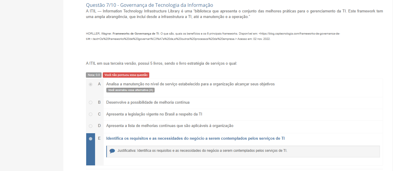 A ITIL - Information Technology Infrastructure Library é uma "biblioteca que apresenta 0 conjunto das melhores práticas para gerenciamento da Este framework tem uma ampla abrangência, que inclui desde a infraestrutura a TI, até a manutenção e a Frameworks de Governança de TI: que são, quais os benefícios e os 6 principais frameworks Disponível em: Acesso em: 02 nov. 2022 A ITIL em sua terceira possui 5 sendo 0 livro estratégia de serviços 0