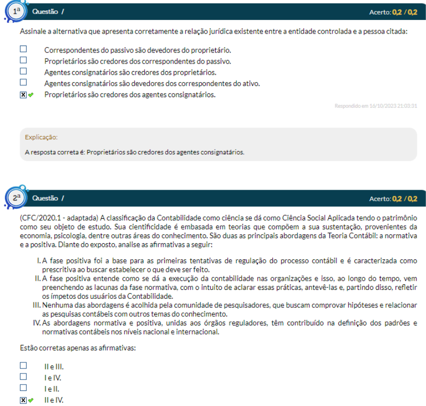 Questão: Sobre a disciplina Teoria da Contabilidade é correto afirmar que Questão 7 Resposta a. Teoria da Contabilidade é oferecida para o curso su...