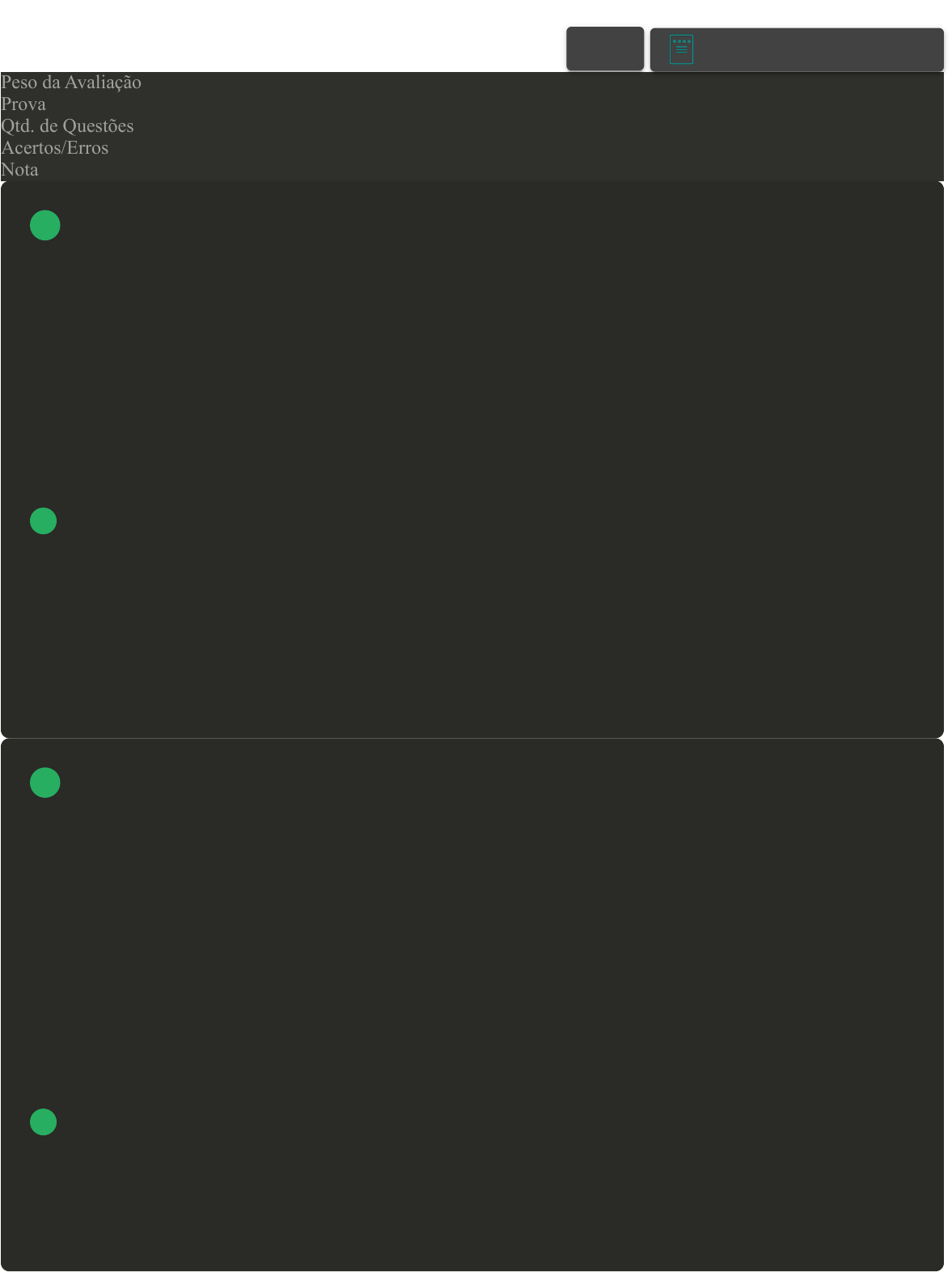 Prova Impressa GABARITO | Avaliação II - Individual (Cod.:884429) Peso da Avaliação 1,50 Prova 68572966 Qtd. de Questões 10 Acertos/Erros 10/0 Nota 10,00 [Laboratório Virtual – Atividade proteolítica de enzimas] Considerando a atividade proteolítica de enzimas, ao se pensar nessa prática realizada, você observou que a gelatina foi utilizada como um dos componentes da experiência. Sobre o exposto, assinale a alternativa CORRETA: A O emprego da gelatina foi realizado em virtude de ela apresentar composição lipoproteica (50% de lipídios e 50% de proteínas). B O emprego da gelatina foi realizado em virtude de ela atuar como modelo proteico de substrato. C O emprego da gelatina foi realizado em virtude de ela atuar como modelo energético de substrato. D O emprego da gelatina foi realizado em virtude de ela ter sua atividade enzimática elevada. Após duas voltas no ciclo do ácido cítrico, também chamado de ciclo de Krebs, observa-se que os carbonos derivados da glicose são oxidados e liberados. Quais são as moléculas liberadas? A H2O B O2 C CO2 D H+ VOLTAR A+ Alterar modo de visualização 1 2 A glicose, substância energética mais utilizada para obtenção de energia pelos organismos, é obtida primeiramente por meio da quebra das macromoléculas denominadas de carboidratos, compostos mais abundantes na natureza. Os carboidratos adquiridos pela alimentação são transportados do intestino para um determinado local. Sobre esse local, assinale a alternativa CORRETA: A Para as moléculas e, a partir da diferença da concentração, para a corrente sanguínea. B Para as vias universais e, a partir da diferença da concentração, para a corrente sanguínea. C Para as membranas e, a partir da diferença da concentração, para a corrente sanguínea. D Para as células e, a partir da diferença da concentração, para a corrente sanguínea. Os processos catabólicos envolvem certas reações que têm por função degradar (“quebrar”) substâncias orgânicas para obtenção de ATP, ou seja, para obter energia. Diferentemente do anabolismo, o catabolismo atua fornecendo energia para que importantes atividades possam ser realizadas, tais como movimentação, respiração, controle da temperatura e ação do nosso sistema nervoso. Sobre o catabolismo, assinale a alternativa CORRETA: A O catabolismo se relaciona com a síntese de compostos orgânicos estruturais e funcionais, tais como proteínas de membrana, enzimas e hormônios. B No catabolismo ocorre a oxidação das moléculas e, durante o anabolismo, aumento das moléculas. C O catabolismo tem influência direta sobre o anabolismo, pois atua fornecendo energia para a síntese de biomoléculas. D No metabolismo as vias catabólicas e as vias anabólicas trabalham no mesmo sentido. Por meio da cadeia respiratória ou CTE, os complexos são responsáveis pelas reações de oxirredução, tendo como importância estrutural a presença dos citocromos e da ubiquinona. Nesse processo, ocorre transferência de prótons e elétrons transportados por NAD+ e FAD para o oxigênio. Sobre o que é formado no processo, assinale a alternativa CORRETA: 3 4 5 A Água. B CO2. C GTP. D ATP. Nos procariontes, como não há mitocôndrias, o processo inteiro ocorre com o rendimento total de 38 ATp. Sobre em que lugar o processo ocorre, assinale a alternativa CORRETA: A No núcleo e no citoplasma. B No citoplasma e na mitocôndria. C Nos centríolos. D No citoplasma e na face citoplasmática da membrana celular. O ciclo de Krebs, também conhecido como Ciclo do Ácido Cítrico, inicia-se quando ocorre a reação entre acetilcoenzima A e o ácido oxalacético. O acetilcoenzima A é formado após o processo de glicose, quando o ácido pirúvico reage com certa substância. Que substância é essa? A Glicose. B Sacarose. C Coenzima A. 6 7 D Glicogênio. [Laboratório Virtual – Atividade proteolítica de enzimas] Paulo acabou de almoçar em uma churrascaria de sua cidade e ingeriu elevada quantidade de carne vermelha. Após o almoço, ele comeu uma fatia de abacaxi assado. Sobre o exposto, assinale a alternativa CORRETA: A A ingestão dessa fruta após a refeição favorecerá o processo de transformação da carne em ácidos graxos de cadeia carbônica longa, sob a ação da enzima catalase. B A ingestão dessa fruta após a refeição favorecerá o processo de digestão da carne, pois o abacaxi apresenta a enzima proteolítica bromelina. C A ingestão dessa fruta após a refeição favorecerá a etapa de digestão de carboidratos e proteínas, em virtude da presença da enzima papaína no abacaxi. D A ingestão dessa fruta após a refeição favorecerá o conjunto de reações chamado de proteogênese mediante a atividade das enzimas bromelina e papaína. As substâncias conhecidas por carboidratos são macromoléculas importantes para os seres vivos e apresentam, entre outras funções, a atuação energética e estrutural, além de se constituírem enquanto compostos de reserva. Os carboidratos originados a partir da fotossíntese fornecem para a planta energia química e carbono para sintetizar as principais moléculas orgânicas das células. Sobre o metabolismo dos carboidratos, analise as sentenças a seguir: I- Entre os carboidratos, a glicose é utilizada como combustível para a respiração celular. No entanto, aminoácidos e ácidos graxos também participam desse processo. II- O metabolismo dos carboidratos ocorre desde o microrganismo até a espécie humana, e tem a glicose como o principal substrato, por meio do qual as células obtém a energia necessária para suas atividades. III- A digestão dos carboidratos no sistema digestório produz vários tipos de monossacarídeos, entre eles a glicose. Depois que ocorre a absorção, as células recebem esses monossacarídeos. Assinale a alternativa CORRETA: A Somente a sentença II está correta. 8 9 B As sentenças I, II e III estão corretas. C Somente a sentença III está corr