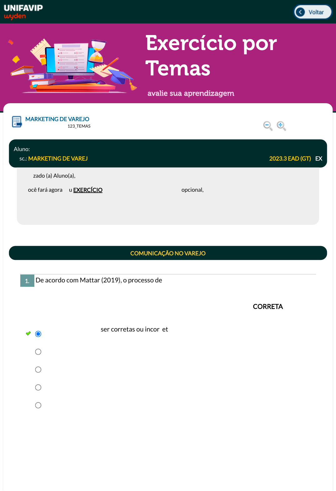 11/20/23, 7:19 PM UNIFAVIP: Alunos https://simulado.wyden.com.br/alunos/ 1/6 Exercício por Temas avalie sua aprendizagem De acordo com Mattar (2019), o processo de vendas no varejo acontece em sete passos. Em relação ao quinto passo "tratamento das objeções", assinale a alternativa CORRETA, que melhor explique esse conceito: MARKETING DE VAREJO Lupa DGT0692_202203861123_TEMAS Aluno: HENRI UE MARTINS LAURIANO Matr.: 20 20 61123 Disc.: MARKETING DE VAREJ 2023.3 EAD (GT) / EX Prezado (a) Aluno(a), Você fará agora seu EXERCÍCIO! Lembre-se que este exercício é opcional, mas não valerá ponto para sua avaliação. O mesmo será composto de questões de múltipla escolha. Após responde cada questão, você terá acesso ao gabarito comentado e/ou à explicação da mesma. Aproveite para se familiarizar com este modelo de questões que será usado na sua AV e AVS. COMUNICAÇÃO NO VAREJO 1. As objeções podem ser corretas ou incorretas. Quando incorretas o vendedor deve apontar que o cliente está errado. Quando correta, deve encontrar formas de compensar o cliente. Tratar as objeções consiste em não permitir que o cliente apresente razões contrárias à compra. É melhor responder às objeções mesmo sem uma argumentação coerente, já que o que vale é manter o máximo possível o cliente dentro da loja. Nem sempre o vendedor precisa se atentar ao tratamento das objeções, pois alguns clientes não estão interessados na compra. Não é papel direto do vendedor saber tratar as objeções, já que o fabricante deve apresentar os argumentos de venda do produto. Data Resp.: 20/11/2023 19:13:37 Explicação: A resposta correta é: As objeções podem ser corretas ou incorretas. Quando incorretas o vendedor deve apontar que o cliente está errado. Quando correta, deve encontrar formas de compensar o cliente. javascript:voltar(); javascript:voltar(); javascript:diminui(); javascript:aumenta(); 11/20/23, 7:19 PM UNIFAVIP: Alunos https://simulado.wyden.com.br/alunos/ 2/6 Como vimos no conteúdo estudado, o varejista precisa estar atento para a seleção, contratação e preparação das pessoas que exercerão a atividade de vendas diretas na organização. Essa função exige características e habilidades individuais que precisam ser valorizadas ou treinadas. Assinale a alternativa ERRADA, que não corresponde as habilidades individuais que o bom pro�ssional de vendas deve possuir: Segundo Mattar (2019), os displays são peças de merchandising no ponto de venda, que visam informar os clientes, contribuindo para criar uma atmosfera na loja, além de expor os produtos e promovê-los. Segundo o texto, os conteúdos que um display pode expor dizem respeito ao tipo e à variedade de mercadorias que eles contêm. Entre as alternativas a seguir, assinale a INCORRETA (que não é mencionada no texto): De acordo com Kotler (2012), o conceito de promoção de vendas inclui ferramentas especí�cas para pelo menos três públicos: promoção de consumo, promoção de canal de distribuição e 2. Comunicabilidade - A facilidade em ter uma comunicação interpessoal e�caz faz com que sejam quebradas barreiras e permite um rico diálogo do vendedor com o cliente, apresentando e explicando as vantagens do produto em questão. Beleza física - Vendedores que são mais belos têm mais êxito em suas vendas, independentemente do sucesso em seu desempenho de apresentação de produtos. Empatia - É a habilidade e capacidade de se colocar no lugar dos outros, de ter uma visão adequada das necessidades das outras pessoas. Credibilidade - Vendedores com essa habilidade conseguem minimizar a percepção de risco dos consumidores e vender mais. Atitude automotivada - Uma atitude positiva em relação à vida e a si mesmo contribuem para quem trabalha com vendas, já que transmite alegria e otimismo aos clientes. Data Resp.: 20/11/2023 19:14:05 Explicação: A resposta correta é: Beleza física - Vendedores que são mais belos têm mais êxito em suas vendas, independentemente do sucesso em seu desempenho de apresentação de produtos. 3. Produtos temáticos: No display, estão agrupados produtos de acordo com adequação às datas festivas e eventos sazonais como: carnaval, festas juninas, volta às aulas, Natal etc. Agrupamentos de linhas de produtos relacionadas: Diferentes linhas de produtos estão dispostas no display, mas relacionados pela utilização �nal do consumidor. Produtos sortidos e de baixo custo: produtos de marcas diversas distribuídos de forma aleatória e em menor quantidade gerando senso de escassez. Produto isolado: Um só produto com diversos SKUs (Stocking Keeping Units ¿ código utilizado para identi�car tipos de produtos e variações). Agrupamento de produtos relacionados: No display, estão diversos produtos relacionados pela mesma necessidade do cliente. Data Resp.: 20/11/2023 19:15:28 Explicação: A resposta correta é: Produtos sortidos e de baixo custo: produtos de marcas diversas distribuídos de forma aleatória e em menor quantidade gerando senso de escassez. 4. 11/20/23, 7:19 PM UNIFAVIP: Alunos https://simulado.wyden.com.br/alunos/ 3/6 promoção de negócios e equipe de vendas. Sobre a promoção de consumo, é CORRETO o que se a�rma em: Segundo Mattar (2019), a propaganda de produtos traz apelo principalmente para os produtos e mercadorias dispostas no varejo e procura trazer o consumidor à loja para efetuar suas compras. De acordo com o texto, assinale a alternativa CORRETA, que representa uma estratégia voltada ao relacionamento de longo prazo com o cliente: A Reebok em parceria com o São Paulo Futebol Clube desenvolveram uma estratégia para se posicionar entre as cinco maiores torcidas do Brasil Que estratégia foi essa? Ação desenvolvida no ambiente virtual que visa o uso de tecnologias de realidade aumentada e outras formas de interação com o consumidor. Nesta ferramenta são descritos descontos, boni�cações de propaganda, além de bo