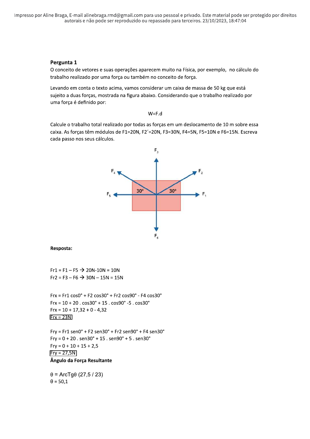 Pergunta 1 Um objeto com massa de 12 kg e volume de 0,002m3 está totalmente imerso dentro de um reservatório de água (pH20 = 1000kg/m3) (Fonte: Instit