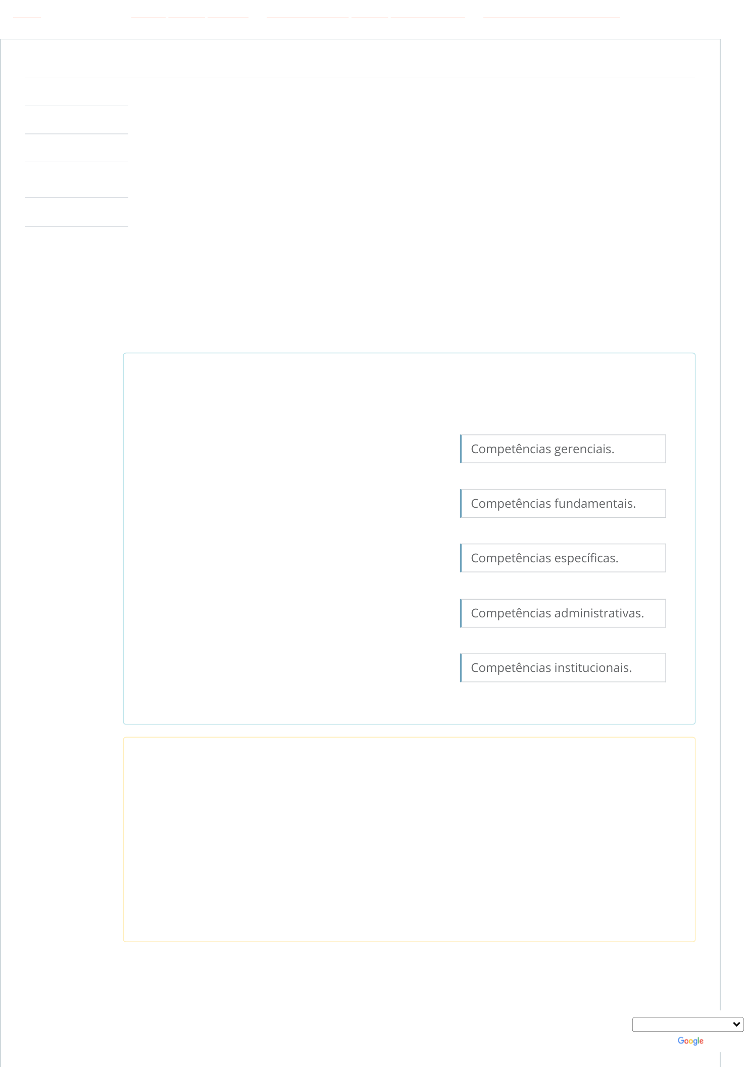 21/11/2023, 02:34 Exercício Avaliativo - Módulo 3: Revisão da tentativa https://mooc38.escolavirtual.gov.br/mod/quiz/review.php?attempt=13190595&cmid=275254 1/9 Painel / Meus cursos / Gestão por Competências / Módulo 3: Gestão por Competências na RFB / Exercício Avaliativo - Módulo 3 Iniciado em terça, 21 nov 2023, 02:21 Estado Finalizada Concluída em terça, 21 nov 2023, 02:34 Tempo empregado 13 minutos 32 segundos Notas 7,00/9,00 Avaliar 24,89 de um máximo de 32,00(78%) Questão 1 Correto Atingiu 1,00 de 1,00 O Mapeamento de Competências é realizado com a participação de vários servidores de diferentes níveis organizacionais. As competências são identificadas com o emprego de técnicas de mapeamento, a partir de fontes diferentes para cada tipo de competência. Considerando as fontes de consulta e os tipos de competências, relacione as informações abaixo: Competências relacionadas aos ocupantes de postos gerenciais.  Competências ligadas a todos os servidores.  Competências ligadas aos vários processos de trabalho da Cadeia de Valor.  Competências relacionadas às atividades de apoio administrativo e assessoria.  Competências derivadas do Mapa Estratégico, refletem os atributos que tornam a organização eficaz para alcançar os objetivos e geram benefícios para a sociedade.  Competências gerenciais. Competências fundamentais. Competências específicas. Competências administrativas. Competências institucionais. Sua resposta está correta. A opções corretas são: a. Competências relacionadas aos ocupantes de postos gerenciais. – Competências gerenciais. b. Competências ligadas a todos os servidores. – Competências fundamentais. c. Competências ligadas aos vários processos de trabalho da Cadeia de Valor. – Competências específicas. d. Competências relacionadas às atividades de apoio administrativo e assessoria. – Competências administrativas. e. Competências derivadas do Mapa Estratégico, refletem os atributos que tornam a organização eficaz para alcançar os objetivos e geram benefícios para a sociedade. - Competências institucionais. Selecione o idioma Powered by Tradutor https://mooc38.escolavirtual.gov.br/my/ https://mooc38.escolavirtual.gov.br/course/view.php?id=14637 https://mooc38.escolavirtual.gov.br/course/view.php?id=14637#section-3 https://mooc38.escolavirtual.gov.br/mod/quiz/view.php?id=275254 https://translate.google.com/ https://translate.google.com/ https://translate.google.com/ https://translate.google.com/ https://translate.google.com/ https://translate.google.com/ https://translate.google.com/ https://translate.google.com/ https://translate.google.com/ https://translate.google.com/ 21/11/2023, 02:34 Exercício Avaliativo - Módulo 3: Revisão da tentativa https://mooc38.escolavirtual.gov.br/mod/quiz/review.php?attempt=13190595&cmid=275254 2/9 Questão 2 Correto Atingiu 1,00 de 1,00 Sobre as etapas da Gestão por Competências, analise as proposições a seguir, preenchendo as lacunas com as opções correspondentes: A Gestão por Competências na RFB é estruturada com base em três etapas, que são o ________________________, o ____________________________ e a _______________________. Na fase de Mapeamento, são identificadas as competências necessárias ao desempenho excelente dos servidores e o resultado dessa etapa é __________________________________ A sequência está correta em: Escolha uma opção: a. Mapeamento de Competências; Diagnóstico de Necessidades de capacitação; Capacitação de Desenvolvimento de Competências; e o Inventário de Competências.  Parabéns, este é o item correto. b. Mapeamento; Associação de Competências; Diagnóstico de Necessidades de capacitação; e a Cadeia de Valor. c. Diagnóstico de Lacunas; Apuração dos Resultados; Planejamento da Capacitação; e Cadeia de Valor. d. Mapeamento de Competências; Diagnóstico; Planejamento da Capacitação; e Cadeia de Valor. e. Planejamento Estratégico; Mapeamento; Diagnóstico; e Análise Documental. Sua resposta está correta. A opção correta é: a) A Gestão por Competências na RFB é estruturada com base em três etapas, que são o Mapeamento de Competências, o Diagnóstico de Necessidades de capacitação e a Capacitação de Desenvolvimento de Competências. Na fase de Mapeamento, são identificadas as competências necessárias ao desempenho excelente dos servidores e o resultado desta etapa é o Inventário de Competências. Feedback: O modelo adotado pela RFB inicia-se diretamente com o Mapeamento de competências, a partir do Mapa estratégico definido para o período. As competências mapeadas compõem o Inventário de Competências. O Diagnóstico de Necessidades de Capacitação é realizado periodicamente por meio de questionários eletrônicos. Seus resultados são utilizados no planejamento das ações de Capacitação e Desenvolvimento. Powered by Tradutor https://translate.google.com/ https://translate.google.com/ https://translate.google.com/ https://translate.google.com/ https://translate.google.com/ https://translate.google.com/ https://translate.google.com/ https://translate.google.com/ https://translate.google.com/ https://translate.google.com/ 21/11/2023, 02:34 Exercício Avaliativo - Módulo 3: Revisão da tentativa https://mooc38.escolavirtual.gov.br/mod/quiz/review.php?attempt=13190595&cmid=275254 3/9 Questão 3 Incorreto Atingiu 0,00 de 1,00 O Diagnóstico de Competências é realizado a partir de respostas a questionários sobre a necessidade de capacitação que os servidores apresentam nas competências avaliadas. Sobre os diversos níveis de avaliação possíveis, é correto afirmar que: I. A autoavaliação produz resultados mais confiáveis, uma vez que a própria pessoa sabe, melhor que qualquer outra, os pontos em que precisa se desenvolver. II. Quanto mais observadores forem consultados, mais próximos da realidade serão os resultados. III. A avaliação 360º, que envolve to