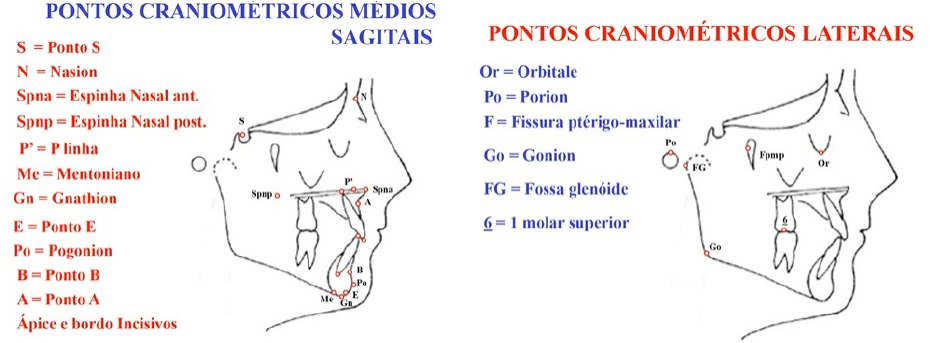 CEFALOMETRIA - Pieter Camper descreve o ângulo facial, formado pela intersecção do Plano de Camper (centro do conduto auditivo externo e base do nariz) e a Linha facial. - Definição do Plano de Fankfurt (plano de orientação do crânio): no crânio, passa pela borda superior do meato acústico externo ao ponto mais baixo da órbita esquerda. Na cabeça, da borda superior do trago ao ponto mais baixo da margem da órbita. Pontos Cefalométricos: · Pontos Sagitais – impares · Pontos Laterais – pares Estes podem apresentar-se duplos, nesse caso pode tomar o ponto médio entre os dois ou aceitar aquele correspondente ao lado esquerdo da face. Pontos: · (Or) – Orbital: no ponto mais inferior do bordo da órbita; · (Fpm) – fissura ptérigo-maxilar: limite posterior da tuberosidade da maxila; · (S) Sela Túrcica – no centro geométrico da sela túrcica; · (N) Násio – ponto mais anterior da sutura fronto-nasal; · (Spna) Espinha Nasal Anterior – ponto mais anterior da maxila; · (Spnp) Espinha Nasal Posterior – ponto mais posterior da maxila; · (Pg) Pogônio – ponto mais anterior do mento ósseo; · (Me) Ponto Mentoniano – ponto mais inferior do mento ósseo; · (Po) Porion – ponto mais superior no bordo esterno do meato acústico externo; · (Go) Gônio – ponto mais posterior e inf. do ângulo da mandíbula; · (Gn) Gnático – ponto mais anterior e inf. do mento; · (Or) Orbital – ponto médio entre N e A; · (A) Ponto A – ponto mais profundo da concavidade subespinhal; · (B) Ponto B – ponto mais profundo da concavidade supramentoniana; Pontos do perfil dos tecidos moles: · (Ls) lábio superior – ponto mais proeminente do lábio, entre o vermelhão e epiderme; · (Li) lábio inferior – ponto mais proeminente do lábio, entre o vermelhão e epiderme; · (Pg’) – ponto mais proeminente do pogônio (mento); · Centro do S nasal. Linhas e Planos: · · Linha PtGn · Longo eixo do (1) incisivo superior e inferior · Linha de Steiner · Linha SN (base anterior do crânio) · Linha NA · Linha NB · Linha NPg · Linha APg · Plano de Frankfurt – pórion direito e esquerdo e ponto Or esquerdo. Divide o terço superior do terço médio e inferior da face. · Plano Biespinhal – angulação da maxila (Spna – Spnp) · Plano Oclusal – plano entre os pontos da arcada. · Plano mandibular/Linha GoGn – linhas paralelas quando não há irregularidades. · Plano facial – entre os pontos N e Po. · Eixo Y de crescimento – (SGn) indica crescimento vertical ou horizontal; ANÁLISE CEFALOMÉTRICA Elementos de diagnóstico: 1. Anamnese: história médica geral. 2. Exame físico do paciente: altura, peso, anormalidades, musculatura facial; exame intraoral, visual e digital. 3. História dental. 4. Radiografias intraorais. 5. Radiografias lateral da mandíbula, etc. 6. Modelos de gesso para registro e acompanhamento. 7. Fotografias. 8. Em casos mais difíceis: Registros cefalométricos adicionais para analise dinâmica, facial, ou posição postural de repouso de mandíbula, posições de fonação da mandíbula, registro com a boca totalmente aberta, registro de opacidade média. 9. Avaliação da maturação sexual e de radiografias de mãos, ou outra área, que informem sobre o progresso de maturação óssea. A radiografia cefalométrica pode oferecer as seguintes informações: · Relacionamento dimensional dos componentes crânio-faciais; · Classificação de anormalidades esqueléticas e dentarias em relação a base do crânio, ao perfil do tecido mole, ao relacionamento inter e intra-maxilar e à dentição; · Expressões de crescimento e desenvolvimento responsáveis pelo padrão dento-facial: se estão situadas na base do crânio, se são devidas a anomalias congênitas. · Condições patológicas ou planejamento de tratamento; · Analises de alterações obtidas nos tecidos moles e duros por terapia ortodôntica, crescimento e a associação delas; · Avaliação da eficácia de diferentes condutas de tto; · Eficácia da contenção; · Alterações de crescimento dento-facial depois que o tto e a contenção foram completados. A partir da radiografia cefalométrica, vamos traçar os pontos de referência cefalométricos, linhas e planos, compondo o cefalograma. O cefalograma permite: · Análise do padrão esquelético · Análise do padrão dentário · Análise do perfil facial ANÁLISE DO PADRÃO ESQUELÉTICO No plano ântero-posterior: · SNA – 82o > 82o A maxila está protruída em relação a base anterior do crânio. < 82o A maxila está retruída em relação a base anterior do crânio. · SNB – 80o > 80o a mandíbula está protruída em relação a base anterior do crânio. < 80o a mandíbula está retruída em relação a base anterior do crânio. · ANB – relação óssea entre maxila e mandíbula (SNA – SNB) 0 a 4 o – Classe I esquelética > 4o – Classe II esquelética < 0o – Classe III esquelética · NAPg – maxila em relação ao perfil total ósseo. 0o – perfil ósseo reto; os três pontos estão na mesma linha. Ponto A atrás de NPg (-) – perfil ósseo côncavo Ponto A na frente de NPg (+) – perfil ósseo convexo No plano vertical: · SNGn – eixo Y do crescimento. Valor normal: 67o > 67 o – predominância do componente vertical de crescimento. < 67 o – predominância do componente horizontal de crescimento. · SN.GoGn Padrão do esqueleto cefálico/sentido predominante de crescimento. Valor normal: 32o – Mesiofacial. > 32o: padrão de crescimento vertical - Dólicofacial. < 32o: padrão de crescimento horizontal – Braquifacial. Estes valores (SN.GoGn e eixo Y) vão descrever a face em 3 tipos morfológicos básicos: · Mesiofacial: valores médios. · Braquifacial: SNGn < 32 e eixo Y < 67. · Dólicofacial: SNGn > 32 e eixo Y > 67. Dólicofacial Padrão de crescimento vertical e predominância do componente vertical de crescimento. A face está crescendo mais para baixo do que frente. Te