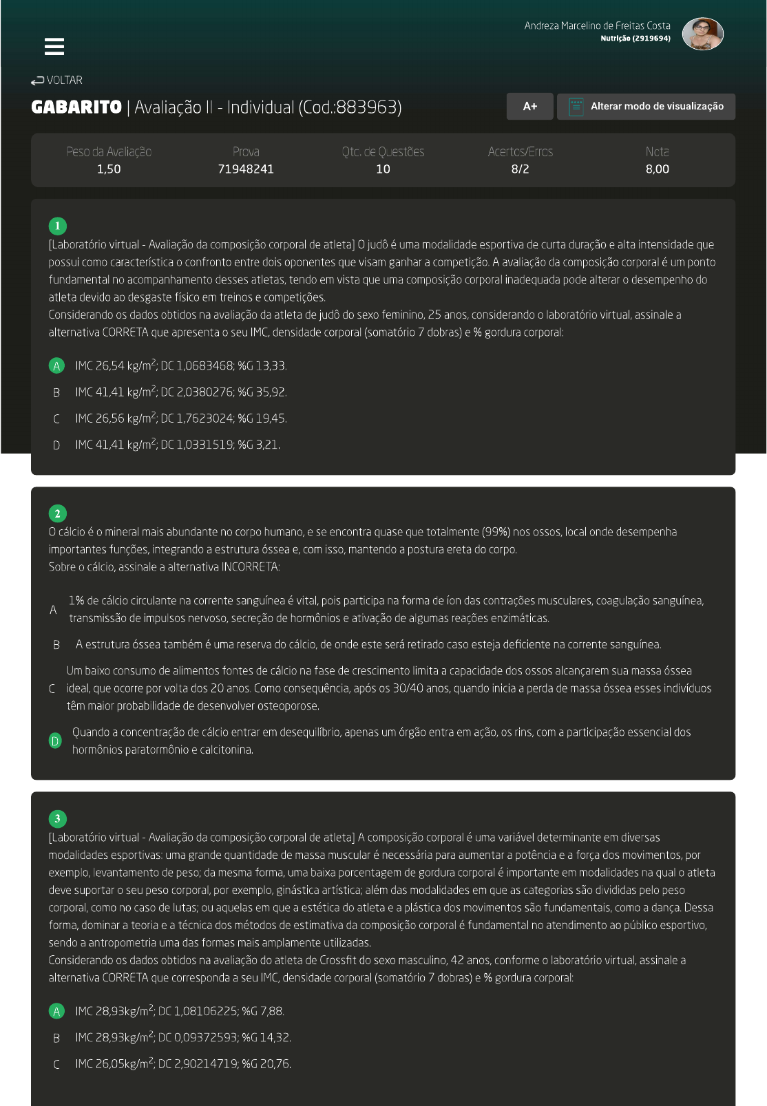 Atividade Nutrição ideal para o exercício físico - Universidade Cruzeiro do Sul