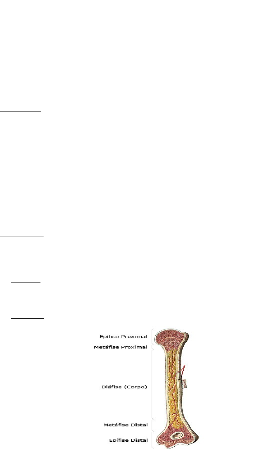 FISIOLOGIA ÓSSEA Conceito de Ossos: Ossos são órgãos esbranquiçados, muito duros, que se unindo aos outros, por intermédio das articulações constituem o esqueleto. É uma forma especializada de tecido conjuntivo cuja principal característica é a mineralização (cálcio) de sua matriz óssea (fibras colágenas e proteoglicanas). O osso é um tecido vivo, complexo e dinâmico. Uma forma sólida de tecido conjuntivo, altamente especializado que forma a maior parte do esqueleto e é o principal tecido de apoio do corpo. O tecido ósseo participa de um contínuo processo de remodelamento dinâmico, produzindo osso novo e degradando osso velho. O osso é formado por vários tecidos diferentes: tecido ósseo, cartilaginoso, conjuntivo denso, epitelial, adiposo, nervoso e vários tecidos formadores de sangue. Células Ósseas a) Osteócitos: os osteócitos estão localizados em cavidades ou lacunas dentro da matriz óssea. Destas lacunas formam-se canalículos que se dirigem para outras lacunas, tornando assim a difusão de nutrientes possível graças à comunicação entre os osteócitos. Os osteócitos têm um papel fundamental na manutenção da integridade da matriz óssea. b) Osteoblastos: os osteoblastos sintetizam a parte orgânica da matriz óssea, composta por colágeno tipo I, glicoproteínas e proteoglicanas. Também concentram fosfato de cálcio, participando da mineralização da matriz. Possuem sistema de comunicação intercelular semelhante ao existente entre os osteócitos. Os osteócitos inclusive originam-se de osteoblastos, quando estes são envolvidos completamente por matriz óssea. c) Osteoclastos: os osteoclastos participam dos processos de absorção e remodelação do tecido ósseo. São células gigantes e multinucleadas, extensamente ramificadas, derivadas de monócitos que atravessam os capilares sanguíneos. Estrutura Óssea A disposição do tecido ósseo compacto e esponjoso em um osso longo é responsável por sua resistência. Os ossos longos contêm locais de crescimento e remodelação, e estruturas associadas às articulações. As partes de um osso longo são as seguintes: 1) Diáfise: é a haste longa do osso. Ela é constituída principalmente de tecido ósseo compacto, proporcionando, considerável resistência ao osso longo. 2) Epífise: as extremidades alargadas de um osso longo. A epífise de um osso o articula, ou une, a um segundo osso, em uma articulação. Cada epífise consiste de uma fina camada de osso compacto que reveste os ossos esponjosos e recobertos por cartilagem. 3) Metáfise: parte dilatada da diáfise mais próxima da epífise. Configuração Interna dos Ossos As diferenças entre os dois tipos de osso, compacto e esponjoso, dependem da quantidade relativa de substâncias sólidas e da quantidade e tamanho dos espaços que eles contêm. Todos os ossos tem uma fina lâmina superficial de osso compacto em torno de uma massa central de osso esponjoso, exceto onde o último é substituído por uma cavidade medular. O osso compacto do corpo, ou diáfise, que envolve a cavidade medular é a substância cortical. A arquitetura do osso esponjoso e compacto varia de acordo com a função. O osso compacto fornece força para sustentar o peso. Nos ossos longos planejados para rigidez e inserção de músculos e ligamentos, a quantidade de osso compacto é máxima, próximo do meio do corpo onde ele está sujeito a curvar-se. Os ossos possuem alguma elasticidade (flexibilidade) e grande rigidez. Periósteo e Endósteo: O Periósteo é uma membrana de tecido conjuntivo denso, muito fibroso, que reveste a superfície externa da diáfise, fixando-se firmemente a toda a superfície externa do osso, exceto à cartilagem articular. Protege o osso e serve como ponto de fixação para os músculos e contém os vasos sanguíneos que nutrem o osso subjacente. O Endósteo se encontra no interior da cavidade medular do osso, revestido por tecido conjuntivo. Tecido Ósseo Compacto Tecido Ósseo Esponjoso Contém poucos espaços em seus componentes rígidos. Dá proteção e suporte e resiste às forças produzidas pelo peso e movimento. Encontrados geralmente nas diáfises. Constitui a maior parte do tecido ósseo dos ossos curtos, chatos e irregulares. A maior parte é encontrada nas epífises. Classificação dos Ossos Os ossos são classificados de acordo com a sua forma em: a) Ossos Longos: tem o comprimento maior que a largura e são constituídos por um corpo e duas extremidades. Eles são um pouco encurvados, o que lhes garante maior resistência. O osso um pouco encurvado absorve o estresse mecânico do peso do corpo em vários pontos, de tal forma que há melhor distribuição do mesmo. Os ossos longos têm suas diáfises formadas por tecido ósseo compacto e apresentam grande quantidade de tecido ósseo esponjoso em suas epífises. Exemplo: Fêmur, Úmero, Rádio, Tíbia, Ulna, Fíbula. b) Ossos Curtos: São parecidos com um cubo, tendo seus comprimentos praticamente iguais às suas larguras. Eles são compostos por osso esponjoso, exceto na superfície, onde há fina camada de tecido ósseo compacto. Exemplo: Ossos do Carpo e Tarso. c) Ossos Laminares (Planos): São ossos finos e compostos por duas lâminas paralelas de tecido ósseo compacto, com camada de osso esponjoso entre elas. Os ossos planos garantem considerável proteção e geram grandes áreas para inserção de músculos. Exemplos: Frontal, Parietal, Escápula. d) Ossos Alongados: São ossos longos, porém achatados e não apresentam canal central. Exemplo: Costelas. e) Ossos Pneumáticos: são ossos ocos, com cavidades cheias de ar e revestidas por mucosa (seios), apresentando pequeno peso em relação ao seu volume. Exemplo: Esfenóide. f) Ossos Irregulares: Apresentam formas complexas e não podem ser agrupados em nenhuma das categorias prévias. Eles têm quantidades variáveis de osso esponjoso e de osso compacto. Exemplo: Vértebras. g) Ossos Sesamóides: Estão presen