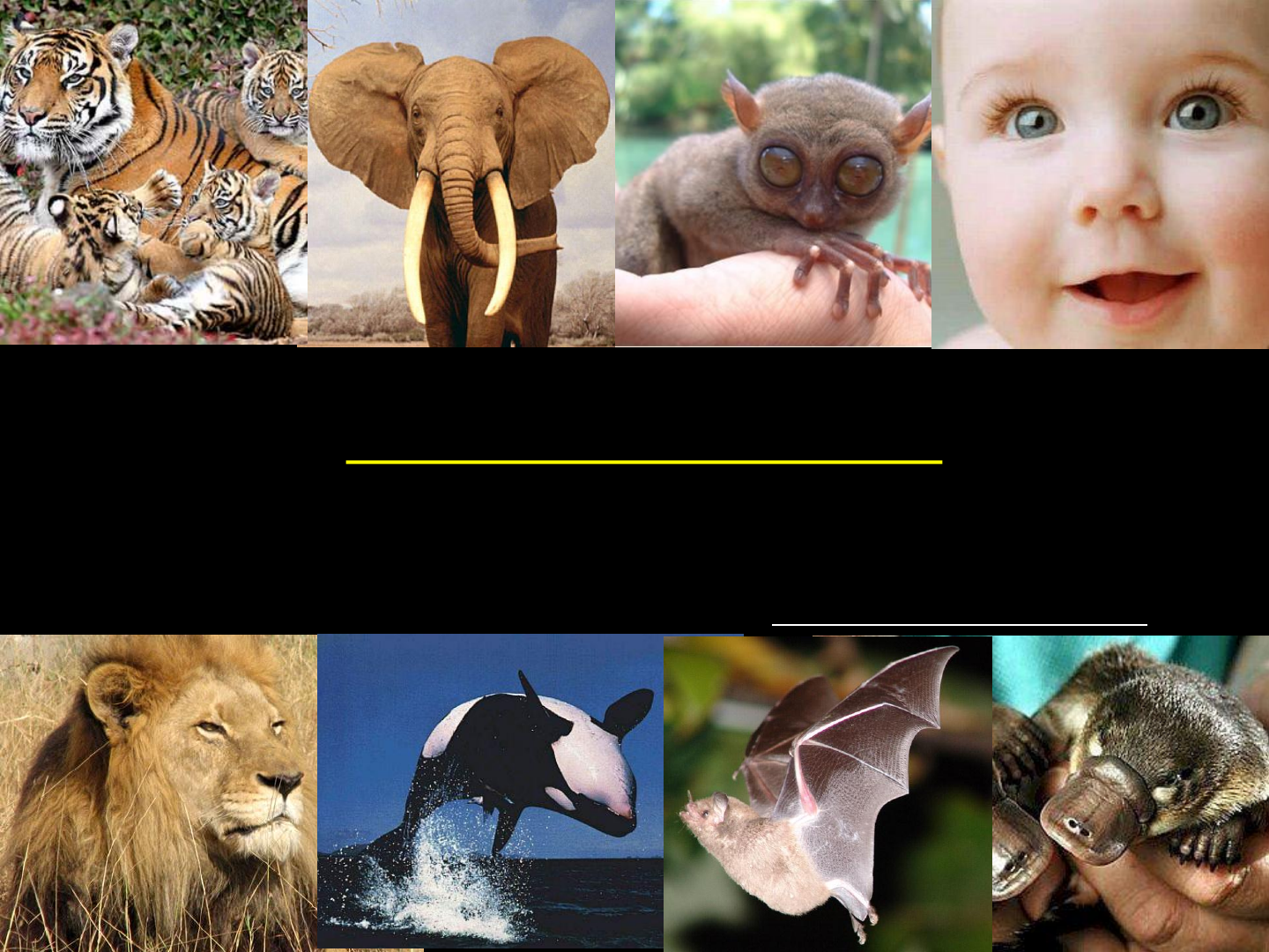 Classe Mammalia Profa Emanuelle Rabelo Origem e evolução dos mamíferos - Não foi um evento ocorrido repentinamente, e sim a evolução de estruturas anatômicas ocorridas gradualmente durante o Permiano e Triássico. Anapsidas Diapsidas Synapsidas Synapsidas Synapsidas Primeiros mamíferos A Evolução dos Mamíferos... Origem e evolução dos mamíferos Aparecimento do Palato Secundário – Podiam respirar enquanto seguram uma presa ou se alimentavam e, mais importante, podiam respirar enquanto mamavam. - Abundantes em alguns grupos e em poucas quantidades em outros, como nas baleias, que apresentam uns poucos fios com função sensorial no focinho. Característica dos Mamíferos Presença de Pêlos -- Nasce do folículo piloso, imerso na camada dérmica da pele -- Crescimento contínuo por meio da rápida proliferação das células do folículo -- Pele coberta por uma camada de QUERATINA -Apresentam dois tipos de pêlos formando sua pelagem: -1. Lanosos ou Viliformes – Densos e macios que proporcionam isolamento térmico; -2. Pêlos de cobertura – Mais ásperos e longos, que protegem contra o desgaste e fornecem a coloração -- Quando atinge um determinado comprimento, pára de crescer, até que ocorre o crescimento de um novo pêlo e então, cai. -- Troca periódica da pelagem inteira em alguns - -- Em humanos, o cabelo cai e é reposto durante toda a vida. Embora em alguns casos, não haja reposição (carecas) -- Várias espécies apresentam pelagem de inverno e de verão. - Funções dos pêlos nos Mamíferos: - Isolamento Térmico - Camuflagem - Sinalização com membros da mesma espécie - Defesa (Pêlos Modificados) - Sensorial (Vibrissas) – pêlos sensoriais que propiciam um sentido tátil para diversos mamíferos. --Longas em mamíferos noturnos e fossoriais. Cornos e chifres Característica dos Mamíferos: 1. Cornos verdadeiros (Ruminantes) – Estruturas ocas com epiderme queratinizada que reveste uma camada óssea que se projeta do crânio. – Permanentes, não-ramificados, crescem continuamente e ocorrem nos dois sexos. 3 tipos: 2. Chifres ou Galhadas (Cervos e veados) - Compostos de osso sólido. Crescem sob uma camada de pele macia, altamente vascularizada (Veludo); – Não permanentes (caem após a estação reprodutiva); ramificados; exceto entre as renas, ocorre apenas nos machos. A B C D 3. Chifres do rinoceronte – Filamentos queratinizados em forma de pêlos, originados de papilas dérmicas. Não se ligam ao crânio -Endotérmicos e Homeotérmicos Permite a atividade noturna e sobrevivência em ambientes com extremos térmicos Características dos Mamíferos -Glândula Sudorípara - - Exclusiva dos mamíferos - - Presente em grande parte da superfície corpórea - - Atua no controle da temperatura corpórea Dois tipos de glândulas sudoríparas: 1. Écrinas - Secretam um fluido aquoso que evapora sobre a superfície da pele, levando consigo o calor do corpo - Ocorrem em regiões destituídas de pêlos. Mas em primatas e cavalos, estão distribuídas por todo o corpo - Reduzidas ou ausentes em roedores, coelhos e baleias 2. Apócrina – Parte secretora encontra-se na derme, com abertura sempre associada a um folículo piloso; -- Em humanos, é restrita às axilas, púbis, seios, prepúcio, escroto e canais auditivos externos -- Secreção são fluidos leitosos, de coloração esbranquiçada ou amarelada, que forma um filme ao secar sobre a derme - Atividades ligadas a aspectos reprodutivos. Glândula Sebácea - - Distribuída por todos o corpo - - Geralmente associada a um folículo piloso - Torna a pele e pêlos mais macios e brilhantes - Em seres humanos: Concentradas no couro cabeludo e face -Glândula Odorífera - - Presente em quase todos os mamíferos - - Funções: Comunicação, demarcação de território, aviso e defesa - - Provavelmente, são glândulas apócrinas modificadas; - - Ocorrem em todas as fêmeas e de forma rudimentar, nos machos; - - glândulas mamárias das fêmeas humanas aumentam de tamanho durante a puberdade, devido ao acúmulo de gordura. Atinge o desenvolvimento máximo em torno do vigésimo ano de vida. Glândula Mamária - - Os seios (ou mamas) sofrem um desenvolvimento adicional durante a gravidez. Glândula Mamária Característica dos Mamíferos: Osso Dentário - Mandíbula formada por um único osso (Dentário) – Aumentou de tamanho em relação aos outros ossos que acabaram por formar o ouvido médio (martelo e bigorna) - Alimentação - Dentes especializados: Diversidade de habitats - Alimentação - Divididos em 4 categorias básicas: - 1. Insetívoros (Tamanduás, morcegos, toupeiras); - Alimentação - 2. Herbívoros: - - Pastadores e podadores (Ungulados: Cavalos, bois, carneiros); - Roedores (ratos, coelhos e lebres). Não possuem enzimas para quebrar a celulose. Assim, abrigam bactérias e protozoários anaeróbicos em grandes câmaras de fermentação. Lebres, coelhos e alguns roedores fazem coprofagia. - Alimentação - 2. Herbívoros: - - Ruminantes (bois, búfalos, cabras, girafa) Rúmen – Alimento quebrado por microorganismos. Massa de alimento trazida de volta à boca. Não Ruminante Ruminante - Alimentação - 3. Carnívoros: - - Alimentam-se de herbívoros (Raposa, cachorro, gatos, leões, tigres). - Tubo digestivo mais curto do que dos herbívoros - dieta protéica é mais facilmente digerida. - Alimentam-se de forma espaçada, ao contrário dos herbívoros, que se alimentam continuamente. - Alimentação - 4. Onívoros: - - Consomem tanto plantas quanto outros animais (porcos, ratos, ursos e primatas – incluindo o homem). -- Muitas formas carnívoras também se alimentam de frutos e gramíneas, quando não há outra opção. - Alimentação - A procura e o consumo de alimento constituem a maior parte das atividades da vida de um mamífero. - Zonas tropicais – alimento relativamente constante ao longo do ano. - Zonas temperadas – Alimento abundante no verão e escasso no inverno. (Migra