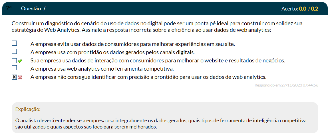 Construir um diagnóstico do cenário do uso de dados no digital pode ser um ponta pé ideal para construir com solidez sua estratégia de Web Analytics. Assinale a resposta incorreta sobre a eficiência ao usar dados de web analytics: