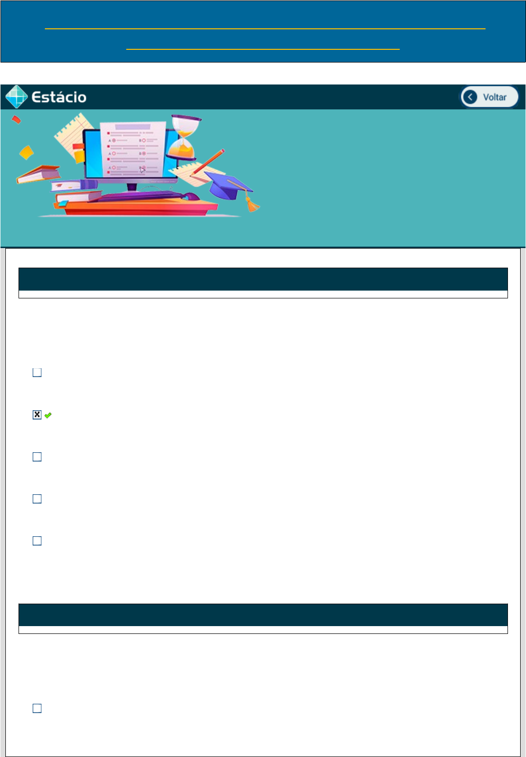 1º AVALIANDO APRENDIZADO - AVA1 (SIMULADO) ESTÁCIO – SISTEMAS PREDIAIS Avaliando Aprendizado Teste seu conhecimento acumulado 1a Questão Acerto: 0,2 / 0,2 Ao material que geralmente é utilizado em tubos e conexões em instalações hidráulicas, bem como instalações elétricas, mecânicas e de aquecimento, com a utilização de um quadro de distribuição hidráulica dentro de um determinado ambiente, dá-se o nome de: Polietileno PEX CPVC PPR PVC 2a Questão Acerto: 0,2 / 0,2 Vimos que uma válvula de descarga apresenta um peso relativo de 32 enquanto uma bacia sanitária com caixa acoplada apresenta um peso de 0,3. Em um dimensionamento de uma instalação de água fria, isso significa que: Uma coluna que alimente a válvula de descarga será menor que um sub-ramal que alimente a caixa de descarga acoplada O diâmetro do tubo que alimenta a caixa de descarga será menor que um sub-ramal que alimenta a válvula de descarga. A válvula de descarga é mais econômica que a caixa de descarga acoplada, propiciando um gasto menor de água. A demanda por água de uma caixa de descarga é maior que a demanda da válvula de descarga Pode-se utilizar o diâmetro de 20 mm para alimentar diretamente uma válvula de descarga. 3a Questão Acerto: 0,2 / 0,2 O diâmetro de um ramal de descarga que coleta o esgoto de um tanque de lavar roupas é: 75 mm 100 mm 50 mm 30 mm 40 mm 4a Questão Acerto: 0,2 / 0,2 A demanda elétrica que é obrigatoriamente disponibilizada pela concessionária, no ponto de entrega, é chamada de: demanda contratada; demanda média. demanda faturável; demanda medida; demanda máxima; 5a Questão Acerto: 0,2 / 0,2 Após o levantamento das cargas de uma instalação elétrica, foi realizado o cálculo pelo método do baricentro para alocar o Quadro de Distribuição. O valor da coordenada (x,y) encontrado foi? (6,6 , 7,5); (6,1 , 7,4); (5,5 , 6,6); (7,4 , 6,1); (7,5 , 6,6); 6a Questão Acerto: 0,2 / 0,2 No início deste módulo, você estudou sobre os tipos de águas residuárias. Quando nós estamos no chuveiro, a água oriunda da lavagem de nosso corpo que escorre pelo ralo do box é chamada de: Água residuária Água imunda Água limpa Água pluvial Água servida 7a Questão Acerto: 0,2 / 0,2 Abaixo está representado um esquema de aquecimento solar em uma casa. Se a energia útil para o aquecimento solar é de 10 KWh/dia, então se as placas tiverem capacidade de coletar 20 KWh/mês.m22, qual a área do telhado precisará ser coberta com essas placas? (Considere um mês como tendo 30 dias) 10 12 20 15 18 8a Questão Acerto: 0,2 / 0,2 O volume útil de uma fossa séptica é proporcional às grandezas abaixo, exceto: Número de contribuintes Contribuição de lodo fresco Tempo de detenção Período de recorrência Contribuição de despejos 9a Questão Acerto: 0,2 / 0,2 Os quadros de distribuição devem seguir padrões para sua instalação, é correto afirmar que: devem ser construídos com materiais capazes de suportar somente os esforços elétricos, não tendo necessidade de suportar esforços mecânicos ou térmicos. devem ser dimensionados para que sejam totalmente preenchidos, sem espaço sobrando; devem possuir componentes pertencentes a uma única instalação, com exceção de circuitos de sinalização e comando; não precisam possuir identificação dos componentes e seus circuitos, em seu interior; podem ser instalados em qualquer lugar da edificação; 10a Questão Acerto: 0,2 / 0,2 A tabela que contém o levantamento detalhado de todas as cargas da instalação, pode ser denominada de: Quadro de cargas; Quadro de potências; Quadro de tomadas; Quadro de distribuição. Quadro elétrico;