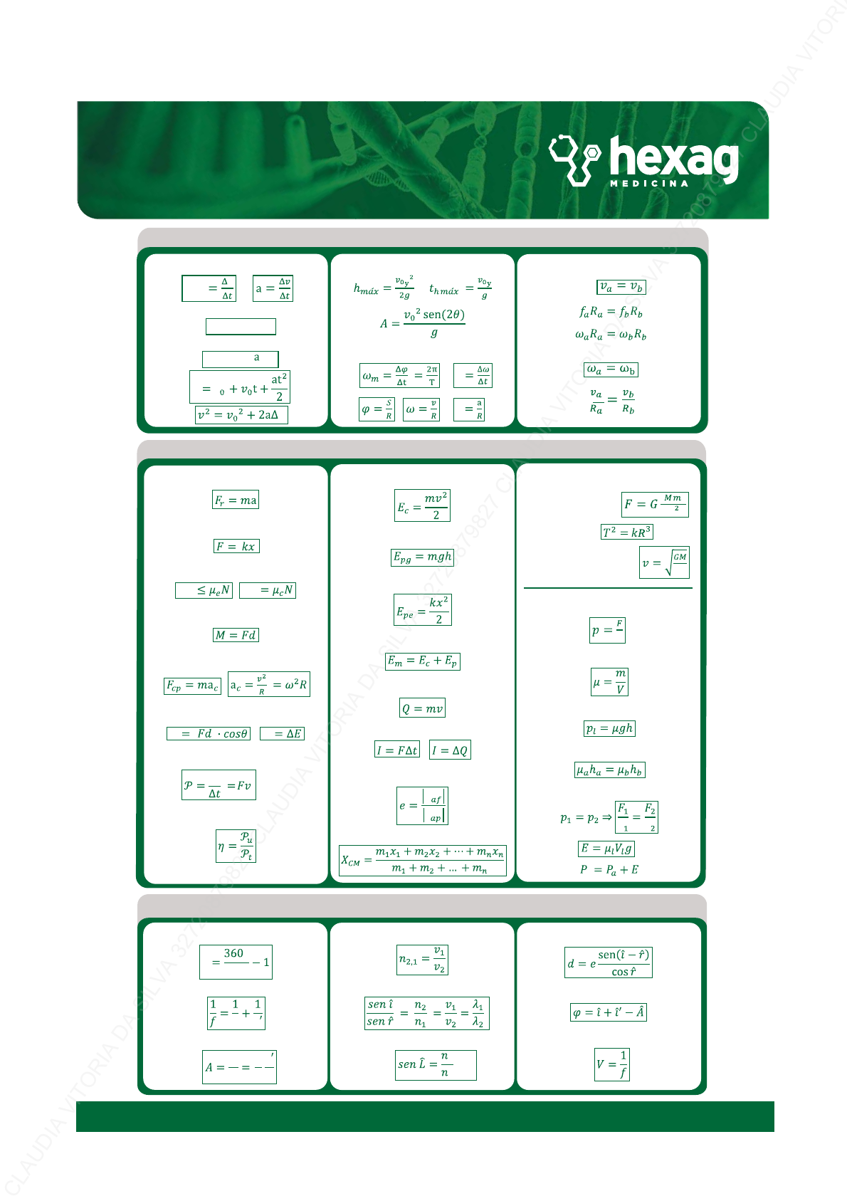 FÍSICA FORMULÁRIO maior menor vm s s s Fate Fatc v v n p i p p p d d A A A s = s0 + v t s v = v0 + t º C LA U D IA V IT O R IA D A SI LV A 32 72 08 79 82 7 C LA U D IA V IT O R IA D A SI LV A 32 72 08 79 82 7 C LA U D IA V IT O R IA D A SI LV A 32 72 08 79 82 7 C LA U D IA V IT O R IA D A SI LV A 32 72 08 79 82 7 C LA U D IA V IT O R IA D A SI LV A 32 72 08 79 82 7 C LA U D IA V IT O R IA D A SI LV A 32 72 08 79 82 7 C LA U D IA V IT O R IA D A SI LV A 32 72 08 79 82 7 C LA U D IA V IT O R IA D A SI LV A 32 72 08 79 82 7 C LA U D IA V IT O R IA D A SI LV A 32 72 08 79 82 7 C LA U D IA V IT O R IA D A SI LV A 32 72 08 79 82 7 .d d W d d f’ C LA U D IA V IT O R IA D A SI LV A 32 72 08 79 82 7 C LA U D IA V IT O R IA D A SI LV A 32 72 08 79 82 7 C LA U D IA V IT O R IA D A SI LV A 32 72 08 79 82 7 C LA U D IA V IT O R IA D A SI LV A 32 72 08 79 82 7 C LA U D IA V IT O R IA D A SI LV A 32 72 08 79 82 7 C LA U D IA V IT O R IA D A SI LV A 32 72 08 79 82 7 C LA U D IA V IT O R IA D A SI LV A 32 72 08 79 82 7 C LA U D IA V IT O R IA D A SI LV A 32 72 08 79 82 7 C LA U D IA V IT O R IA D A SI LV A 32 72 08 79 82 7 C LA U D IA V IT O R IA D A SI LV A 32 72 08 79 82 7 PRINCIPAIS RELAÇÕES MATEMÁTICAS E DE VALORES FÍSICA UNIDADES DO SI d d d d C LA U D IA V IT O R IA D A SI LV A 32 72 08 79 82 7 C LA U D IA V IT O R IA D A SI LV A 32 72 08 79 82 7 C LA U D IA V IT O R IA D A SI LV A 32 72 08 79 82 7 C LA U D IA V IT O R IA D A SI LV A 32 72 08 79 82 7 C LA U D IA V IT O R IA D A SI LV A 32 72 08 79 82 7 C LA U D IA V IT O R IA D A SI LV A 32 72 08 79 82 7 C LA U D IA V IT O R IA D A SI LV A 32 72 08 79 82 7 C LA U D IA V IT O R IA D A SI LV A 32 72 08 79 82 7 C LA U D IA V IT O R IA D A SI LV A 32 72 08 79 82 7 C LA U D IA V IT O R IA D A SI LV A 32 72 08 79 82 7 m/s FÍSICA CONSTANTES FÍSICAS C LA U D IA V IT O R IA D A SI LV A 32 72 08 79 82 7 C LA U D IA V IT O R IA D A SI LV A 32 72 08 79 82 7 C LA U D IA V IT O R IA D A SI LV A 32 72 08 79 82 7 C LA U D IA V IT O R IA D A SI LV A 32 72 08 79 82 7 C LA U D IA V IT O R IA D A SI LV A 32 72 08 79 82 7 C LA U D IA V IT O R IA D A SI LV A 32 72 08 79 82 7 C LA U D IA V IT O R IA D A SI LV A 32 72 08 79 82 7 C LA U D IA V IT O R IA D A SI LV A 32 72 08 79 82 7 C LA U D IA V IT O R IA D A SI LV A 32 72 08 79 82 7 C LA U D IA V IT O R IA D A SI LV A 32 72 08 79 82 7