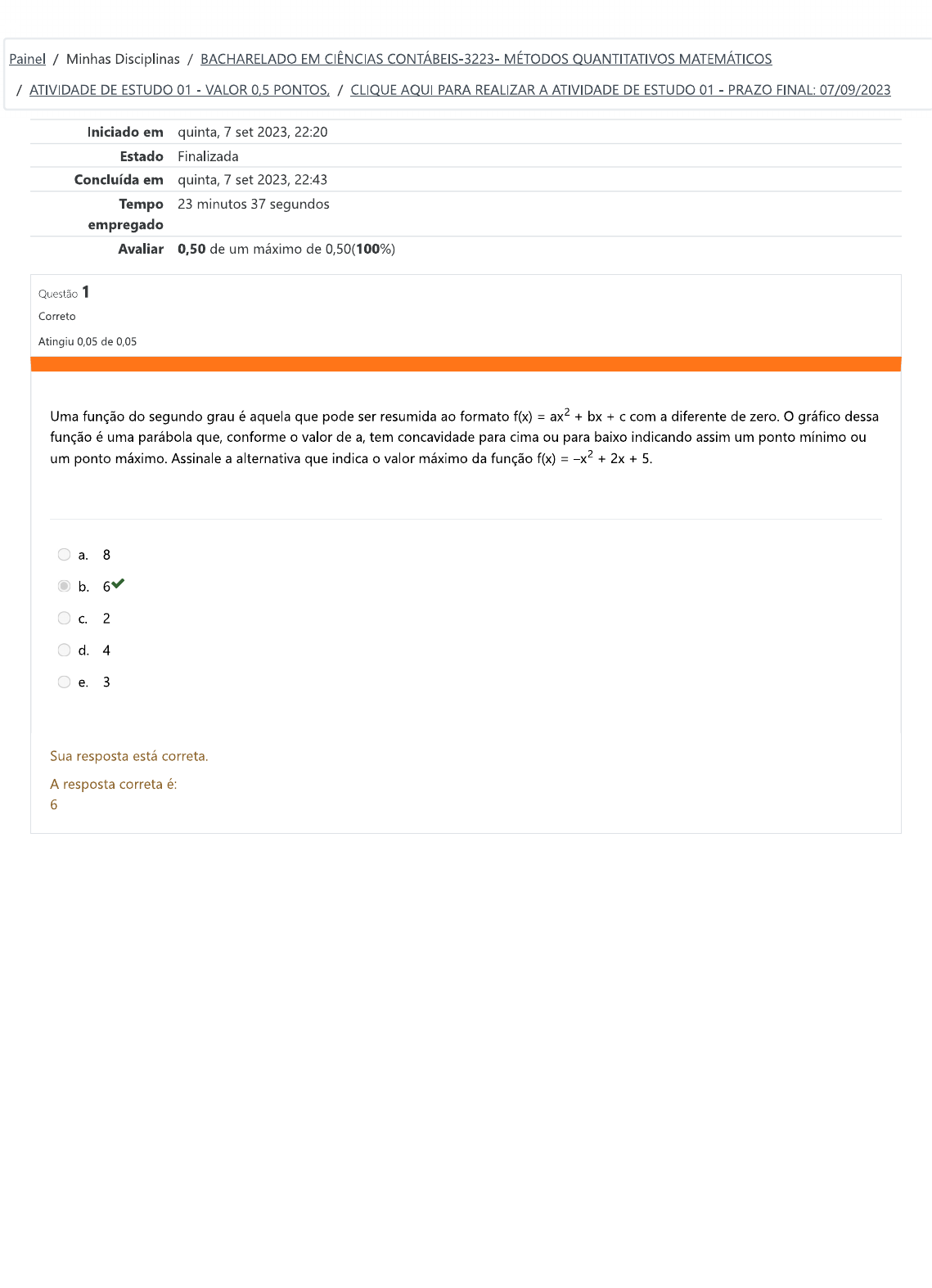 Concluída em quarta, 6 set 2023, 12:40