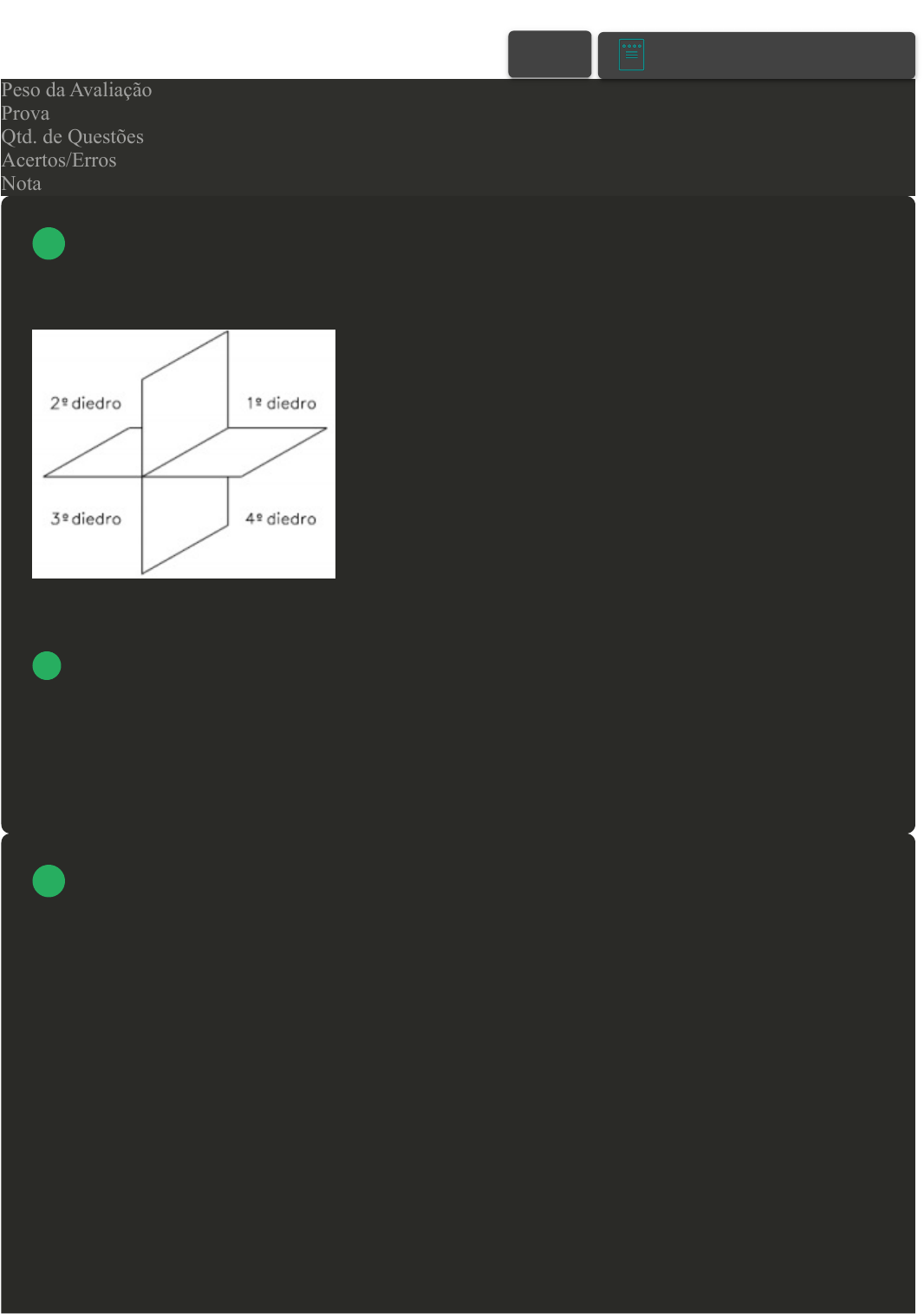 28/11/2023, 05:44 Avaliação II - Individual about:blank 1/5 Prova Impressa GABARITO | Avaliação II - Individual (Cod.:888853) Peso da Avaliação 1,50 Prova 72867482 Qtd. de Questões 10 Acertos/Erros 8/2 Nota 8,00 A ABNT, através da NBR 10.067, estabelece os princípios gerais de representação em desenho técnico. Nisso, considerando a imagem a seguir (adaptação de NBR 10.067:1995), o diedro pode ser compreendido como o espaço entre dois semiplanos perpendiculares não contidos num mesmo plano com origem numa aresta comum. Nesse sentido, qual diedro é adotado pela ABNT no Brasil? A 2º diedro. B 1º diedro. C 3º diedro. D 4º diedro. Para a formação do profissional de projetos, notadamente das áreas de engenharia e arquitetura, o conhecimento de elementos básicos de desenho auxilia no desenvolvimento e leitura de desenhos oriundos do sistema de projeções ortográficas. Como as vistas ortográficas, as perspectivas facilitam o entendimento espacial do objeto, sendo ferramentas fundamentais para os profissionais que atuam no desenvolvimento de setores produtivos como a indústria. Sobre o exposto, analise as sentenças a seguir: I- Os elementos básicos do desenho são o ponto, a reta, o plano e o volume. II- A composição de um sólido geométrico é definida por faces, arestas e vértices. III- Formato, tamanho, cor e textura definem as características da matéria de todo e qualquer ponto. IV- Prisma, pirâmide e cone são exemplos de sólidos geométricos. Assinale a alternativa CORRETA: A As sentenças I, II e III estão corretas. B As sentenças I, III e IV estão corretas. VOLTAR A+ Alterar modo de visualização 1 2 28/11/2023, 05:44 Avaliação II - Individual about:blank 2/5 C As sentenças II, III e IV estão corretas. D As sentenças I, II e IV estão corretas. O sistema de projeções ortográficas, desenvolvido pelo matemático francês Gaspard Monge (1746-1818), é ferramenta indispensável para a construção de vistas e definição das verdadeiras grandezas das faces que compõem determinado objeto. Além das vistas ortográficas, as perspectivas também facilitam a sua leitura espacial, transmitindo a ideia de profundidade desse objeto. No que se refere às perspectivas, assinale a alternativa CORRETA: A As perspectivas com um, dois ou três pontos de fuga são originadas a partir de projeções cilíndricas, transmitindo a sensação de realidade no desenho. B Perspectiva é a técnica de desenho que mostra as quatro dimensões de um objeto em um único plano, de maneira a transmitir a sensação de profundidade e relevo. C A perspectiva facilita a leitura espacial de um objeto, fornecendo a ideia de dimensão e volume, sensação de distância e sugestão de espaço. D As perspectivas originadas de projeções cônicas evidenciam dimensões em verdadeira grandeza, isto é, com dimensões reais ou proporcionais ao objeto representado. Volume, também conhecido nas engenharias como sólido geométrico, conceitualmente, possui três dimensões, que são chamadas de comprimento, largura e profundidade.Pelo que ele é composto? A Superfícies, planos e face. B Linhas, arestas e vértice. C Pontos, vértices e retas. D Face, aresta e vértice. O sistema de projeções ortográficas é um elemento fundamental para a representação gráfica, gerando as três vistas básicas de determinado objeto. Em desenho técnico, essas vistas devem ser mostradas em um único plano. Para isso ocorrer, os planos de projeção devem ser rebatidos, configurando a épura. Diante desse contexto e considerando a imagem a seguir, classifique V para as sentenças verdadeira e F para as falsas: ( ) As três vistas básicas de um objeto, de acordo com a norma brasileira, são as vistas frontal, superior e lateral esquerda. ( ) Em épura, o número 1 representa a vista superior. ( ) Em épura, o número 2 representa a vista frontal. ( ) Em épura, o número 3 representa a vista lateral esquerda. Assinale a alternativa que apresenta a sequência CORRETA: 3 4 5 28/11/2023, 05:44 Avaliação II - Individual about:blank 3/5 FONTE DA IMAGEM: Disponível em: . Acesso em: 30 mar. 2017. A V - F - F - V. B F - V - F - V. C V - F - V - F. D F - V - V - F. O sistema de projeções ortográficas, intensamente utilizadas na área de Engenharia, é elemento fundamental para a representação gráfica, notadamente no que se refere às três vistas básicas de um objeto. Por convenção, estas vistas devem ser mostradas em um único plano. Para isso ocorrer, os planos de projeção devem ser rebatidos, configurando um único plano de representação gráfica. Sobre o rebatimento dos planos de projeção, analise as sentenças a seguir: I- O rebatimento dos planos de projeção, em um único plano, configura o que se denominou "épura". II- Um único plano possui o sentido de rebatimento convencionado, sempre se rebatendo sobre dois planos fixos. III- De acordo com a norma brasileira, o plano horizontal deve ser sempre imaginado em posição fixa, rebatendo-se o plano vertical e o plano lateral direito. IV- No rebatimento, a vista lateral direita é desenhada abaixo da vista superior, e a vista frontal é desenhada à direita da vista superior. Assinale a alternativa CORRETA: A As sentenças I, III e IV estão corretas. B Somente a sentença I está correta. C As sentenças II, III e IV estão corretas. D As sentenças I, II e III estão corretas [Laboratório Virtual - Representação em épura] A épura é muito utilizada nas engenharias e áreas afins em representações gráficas de projetos estruturais, arquitetônicos, hidrossanitários, elétricos, preventivos contra incêndio, dentre outros.Nesse contexto, assinale a alternativa CORRETA que apresenta um dos objetivos do experimento Representação em Épura: 6 7 28/11/2023, 05:44 Avaliação II - Individual about:blank 4/5 A Diferenciar as perspectivas com dois pontos de fuga de perspectivas com três pontos de fuga, identificando seus prin
