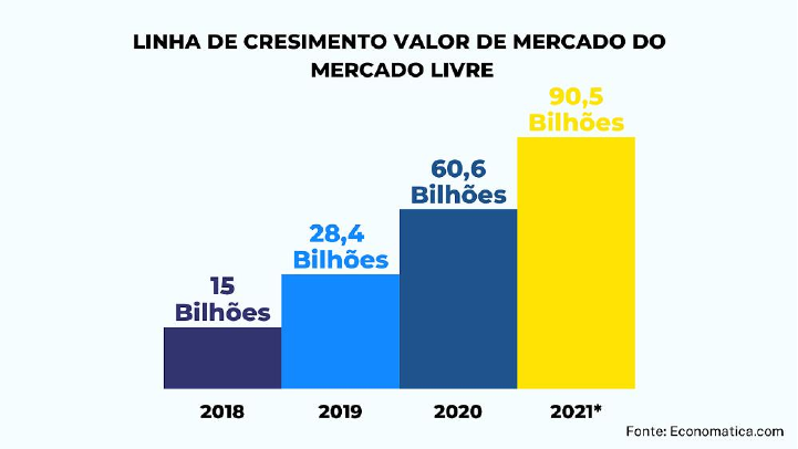 Estatística aplicada Desde o começo da história do desenvolvimento humano, surgiu na sociedade os primeiros problemas para saber o tamanho da população, quantidade de terras e de riquezas naturais. Por isso ouve a necessidade contá-las. As tecnologias que compõe os produtos que compramos, quantidade de sinalização por onde passamos, tecnologias atuais usadas por empresas e pessoas físicas, foram desenvolvidas por esforços matemáticos, demográficos e estatístico. Diante da história da estatística, veremos como ela é aplicada pela empresa Mercado livre, maior plataforma do comercio online da américa latina, com 10 milhões de vendedores e 211 milhões de usuários, calculado em 2017 pela própria empresa. Estatística descritiva Com o objetivo de analisar determinada população utilizando números ou gráficos para determinar padrões, visa sumarizar e descrever um conjunto de dados. para apresentar a informação de uma forma conveniente. No período de 2020 a 2021, o Mercado livre se tornou a empresa mais valiosa da América Latina, para explicar esse salto gigante, nada melhor do que dados. veremos o crescimento do valor de mercado, que atingiu números recordes, fazendo um acompanhamento de 2018 a 2021. Dados disponibilizados a cada fechamento trimestral. • Indice de crescimento do valor de mercado Em 2018, a empresa tinha o valor de mercado avaliado em US$ 15 bilhões de dólares. Em 2019 a empresa teve seu primeiro salto por conta da pandemia e mudança de comportamento da sociedade pelo fechamento das atividades presenciais, a empresa alcançou o valor de US$ 28,4 bilhões, um aumento de mais de 89% em relação ao ano anterior. Em 2020 ainda em aumento, o marketplace se tornou a empresa mais valiosa da América Latina com a marca de 60,6 bilhões. Em 20 de setembro de 2021, o Mercado Livre chegou a US$ 90,51 bilhões. População Trata-se de um conjunto de itens ou eventos semelhantes que interessam ao estudo de um fenômeno coletivo. Com o fechamento de estabelecimentos comerciais, pessoas trancadas dentro de casa para evitar contágio e crescimento do marketplace digital por conta de novas vias de mão aos vendedores do setor comercial, o Mercado Livre se expandiu em todas as áreas no início da pandemia, fazendo com que a metas da empresa fossem antecipadas. No quarto trimestre de 2021, o Mercado livre chegou a US$ 2,1 bilhões de renda liquida. Em 2019, no mesmo período, obteve um resultado de US$ 674,3 milhões, o que corresponde a um aumento de mais de 200%. Observando então que o fenômeno coletivo que foi a pandemia deu ao Mercado Livre, marcos que nunca haviam batido, de acordo com os dados disponíveis pelo site oficial da empresa. Indice de renda liquida (2021) Um dos últimos resultados trimestrais disponibilizados pelo Mercado Livre foi o de 2021, que mostra o acompanhamento da receita liquida, que nada mais é, o total de dinheiro que uma organização recebe pela sua atividade depois de deduzir os custos relacionados à venda do produto e/ou serviço. Como mostra o gráfico, a receita liquida cresceu bastante, atingindo no final de 2021 um crescimento de 66,7% do primeiro trimestre para o último. No Brasil representa 56% da receita líquida total da companhia, tendo alcançado US$ 768,7 milhões, crescimento de 93% em dólar e 139% em real, ano contra ano. O prejuízo líquido no trimestre totalizou US$ 34,0 milhões, resultando em um prejuízo líquido de US$ 0,68 por ação. Indice de vendas Contabilizados no início de 2021, 69,8 milhões de usuários e no final do mesmo ano a marca de 82,2 milhões de usuários, significa que o mercado está cada vez mais competitivo. Grandes oportunidades surgem dentro disso fazendo com que o vendedor pense em diferentes formas de se destacar. O volume de vendas (GMV – Gross Merchandise Volume) foi de US$ 6,1 bilhões em janeiro para US$ 8 bilhões em dezembro de 2021, um aumento de 21,2% em relação ao ano anterior. Segundo dados, foram vendidos 222 milhões de itens apenas no primeiro trimestre do ano anterior, o que significou um aumento de 110,2%. 299,5 milhões de anúncios foram registrados na plataforma. Parte deste crescimento se deve ao aumento de vendedores no marketplace, com quase 1 milhão de vendedores únicos com vendas realizadas neste trimestre. Indice de compradores Como já citado acima, os números de compradores do Mercado Livre deram um salto no início da pandemia, fazendo com que a empresa saltasse no mundo do e-commerce. Os últimos dados disponibilizados pelo site oficial da empresa, contabiliza 34 milhões de compradores ativos, calculado até então no ano de 2017. O valor das ações também acompanhou esse crescimento, no início da pandemia, possuíam o valor de R$ 249,00 aumentando 80% no ano de 2020, quando chegaram a R$ 449,00, e em 2021 alcançaram seu pico, no valor de R$ 1.700,00.