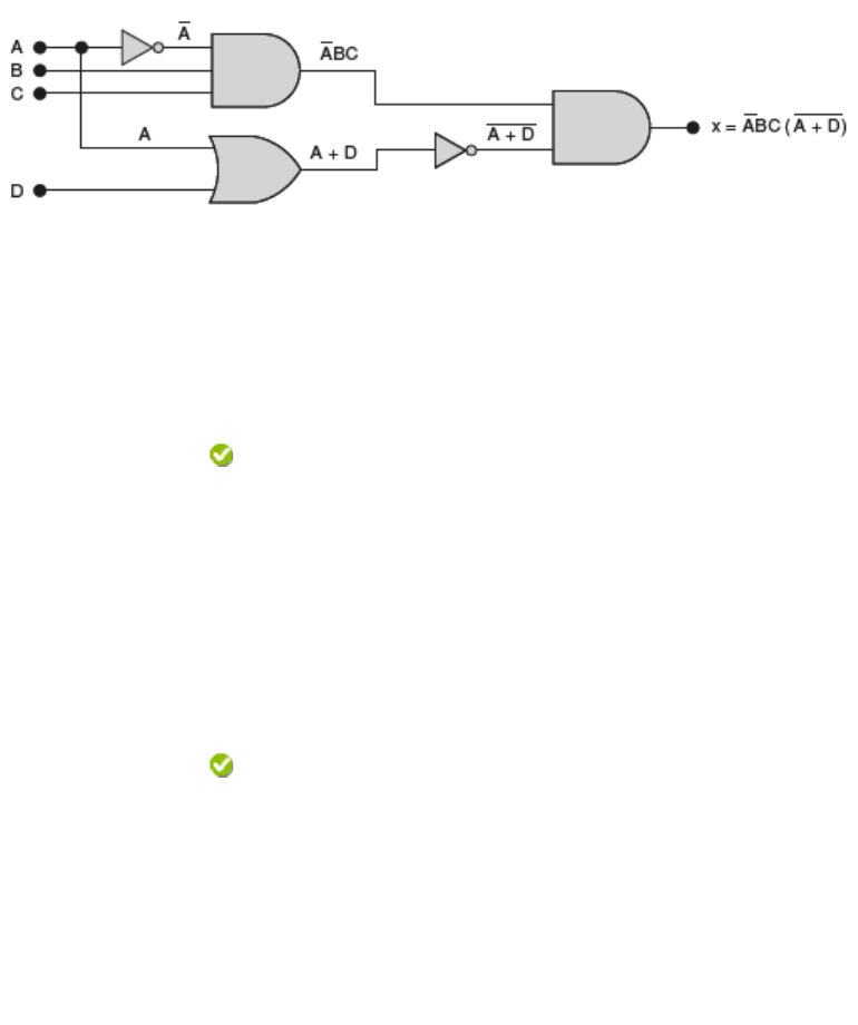 Pergunta 1 1 em 1 pontos Em 1854, Georg Boole publicou um trabalho intitulado UmaiInvestigação das leis do pensamento, sobre as quais são fundadas as teorias matemáticas de lógica e probabilidades (Investigation of the laws of thought, on which are founded the mathematical theories of logic AND probabilities). Foi nessa publicação que uma “álgebra lógica”, conhecida hoje em dia como álgebra booleana, foi formulada. A álgebra booleana é uma forma conveniente e sistemática de expressar e analisar a operação de circuitos lógicos. Claude Shannon foi o primeiro a aplicar o trabalho de Boole na análise e no projeto de circuitos lógicos. Em 1938, Shannon escreveu uma tese no MIT, intitulada A symbolic analysis of relay and switching circuits. Para os casos: I - A = 0, B = 1, C = 1 e D = 1. II - A = 0, B = 1, C = 1 e D = 0. III - A = 0, B = 0, C = 0 e D = 1. Obtenha os níveis lógicos de saída x para o circuito, nos casos I, II e III. Resposta Selecionada: d. I= 0, II= 1 e III=0. Respostas: a. I= 0, II= 1 e III=1. b. I =1, II = 1 e III= 1. c. I= 0, II= 0 e III= 0. d. I= 0, II= 1 e III=0. e. I= 1 II = 0 e III= 1. Comentário da resposta: Resposta correta: d) I= 0, II= 1 e III=0. Pergunta 2 1 em 1 pontos Em 1703, Gottfried Leibniz desenvolveu a lógica em um sentido formal e matemático, utilizando o sistema binário. Em seu sistema, uns e zeros também representam conceitos como verdadeiro e falso, ligado e desligado, válido e inválido. Levou mais de um século para que George Boole publicasse a álgebra booleana (em 1854), com um sistema completo que permitia a construção de modelos matemáticos para o processamento computacional. Baseado no sistema proposto por Leibniz e Boole, converta 011102 para número da base decimal e assinale a alternativa correta: Resposta Selecionada: c. 1410. Respostas: a. 1610. b. 2210. c. 1410. d. 810. e. 1510. Comentário da resposta: Resposta correta: c)1410. Elevam-se as potências dos números em que há 1 e, somando os resultados, obteremos (2³ + 2² + 2¹) = 1410. Pergunta 3 1 em 1 pontos Para um determinado processo químico descrito na figura a seguir, utilizaram-se dois transdutores de entrada e dois comparadores de saída do comparador, representados pelas variáveis de entrada Th e Ph. VTR e VPR são os valores de temperatura e pressão de referência. Observando a figura com atenção, pode-se perceber que o estado lógico de saída resultante deverá ou não acionar o alarme. Qual função lógica de saída representa o sistema digital anterior? Resposta Selecionada: e. Th + Ph Respostas: a. Th x Ph b. (Th x Ph) c. (Th x Ph2) d. (Th + Ph) e. Th + Ph Comentário da resposta: Resposta correta: e) Th + Ph. As variáveis Th e Ph passam por uma porta OR, logo a função de saída para o alrme será Th + Ph. Pergunta 4 1 em 1 pontos Michel está realizando o cálculo de armazenamento de bits de um computador e supõe que a função de armazenamento em decimal é f (x) = x2-2. Caso Michel decida utilizar x= 7, quais são os valores encontrados por ele em decimal, binário e hexadecimal, respectivamente? Resposta Selecionada: d. 4710, 1011112 e 2F. Respostas: a. 4610, 11011002 e 3F. b. 4910, 11012 e 4F. c. 4810, 1010102 e 4F. d. 4710, 1011112 e 2F. e. 4510, 1101102 e F. Comentário da resposta: Resposta correta: d) 4710, 1011112 e 2F. Resolvendo a função f (7) = 72- 2 = 4710, convertendo para binário, basta pegar 47. Para encontrar o equivalente binário, em uma forma alternativa, basta atribuir os pesos até que a soma chegue a 47. Sendo assim: 101111 = 25 + 23 + 22 +21 + 20, obteremos 101111, e esse número representa 2F, pois 2x161 + 15x160. Pergunta 5 1 em 1 pontos Um estudante está projetando um circuito lógico, como mostrado na figura a seguir. Esse circuito apresenta como entradas um sensor de temperatura (T), um sensor de pressão (P) e um sensor de RPM (R). Segundo seus conhecimentos de funções booleanas, qual seria a expressão de saída W obtida pelo estudante? Pergunta 6 1 em 1 pontos Um estudante em um projeto de sistemas digitais precisa efetuar a soma de dois números binários A= 101010 e B=100010. Qual o valor correto encontrado pelo estudante em decimais? Resposta Selecionada: e. 76. Respostas: a. 77. b. 75. c. 72. d. 1001100. e. 76. Comentário da resposta: Resposta correta: e) 76. Vamos ao cálculo: 101010 + 100010 = 1001100 que, em decimal, é o número 76. Pergunta 7 1 em 1 pontos O circuito lógico a seguir gera uma saída MEM, utilizada para ativar componentes integrados de memória em determinado microcomputador. Esse tipo de circuito ilustra o comportamento de um computador real. Analisando o circuito, determine as condições de entrada necessárias para ativar MEM. Resposta Selecionada: d. X será nível ALTO apenas quando RD = 0. Respostas: a. MEM é ativa-em-baixo, e esse sinal será nível BAIXO apenas quando X e Y forem nível ALTO. b. MEM é ativa-em-baixo, e esse sinal será nível ALTO apenas quando X e Y forem nível ALTO. c. X será nível ALTO apenas quando RD = 1. d. X será nível ALTO apenas quando RD = 0. e. W será nível BAIXO quando ROM-A ou ROM-B = 0. Comentário da resposta: Resposta correta: d) X será nível ALTO apenas quando RD = 0. Podemos, em resumo, inferir que MEM será nível BAIXO apenas quando RD = 0 e pelo menos uma das três entradas, ROM-A, ROM-B ou RAM, for nível BAIXO Pergunta 8 1 em 1 pontos Um estudante de computação está em um projeto e precisa armazenar, em memória, números de 0 até 1 milhão. Sendo assim, quantos bits ele terá que reservar? Resposta Selecionada: b. 20 bits. Respostas: a. 10 bits. b. 20 bits. c. 15 bits. d. 18 bits. e. 13 bits. Comentário da resposta: Resposta correta: b) 20 bits. Utilizando 20 bits, podemos contar, em decimal, de 0 a 1.000.000, pois, 219 – 1 = 524.287 e 220 – 1 = 1.048.575, portanto N= 20. Pergunta 9 1 em 1 pontos Analise as asserções a seguir: I - O ENIAC (integrador numérico eletrônico e computador) era Tur