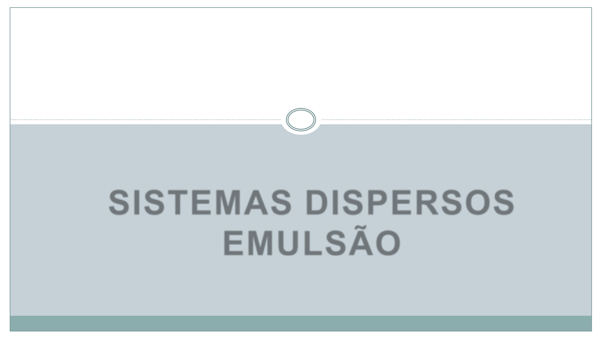 SISTEMAS DISPERSOS EMULSÃO DISPERSÕES Consiste em um sistema no qual uma substância A , sob a forma de pequenas partículas, distribui-se, uniformemente, em toda a extensão de outra substância B. A substância A constituirá o disperso do sistema; B será o dispersante A dispersão assume características diversas, sendo classificada de acordo com o diâmetro médio das partículas dos dispersos COLOIDES SUSPENSÕESSOLUÇÃO SISTEMAS DISPERSOS SOLUÇÃO ≠ COLÓIDES ≠ SUSPENSÕES Baseia-se no estado de agregação de cada uma das fases, principalmente no tamanho das partículas da fase dispersa SISTEMAS DISPERSOS SOLUÇÃO ≠ COLÓIDES ≠ SUSPENSÕES Baseia-se no estado de agregação de cada uma das fases, principalmente no tamanho das partículas da fase dispersa SISTEMAS DISPERSOS ➢ COLOIDES DISPERSÕES COLOIDAIS LÍQUIDAS ≠ SOLUÇÕES LEITE ÁGUA + AÇÚCAR ≠ SISTEMAS DISPERSOS ➢ COLOIDES ➔ Ultracentrifugação Ocorre a formação de depósitos sob ação de uma centrífuga SISTEMAS DISPERSOS ➢ COLOIDES ➔ Efeito Tyndall ESPALHAMENTO DA LUZz Quando há a dispersão da luz pelas partículas coloidais. Neste caso, é possível visualizar o trajeto que a luz faz, pois estas partículas dispersam os raios luminosos ➔ SISTEMAS DISPERSOS ➢ COLOIDES ➔ Efeito Tyndall ESPALHAMENTO DA LUZz As partículas dispersas presentes nos colóides são maiores do que o comprimento de onda da luz visível, por isso quando um feixe de luz incide sobre um sistema coloidal há uma forte dispersão de luz z SISTEMAS DISPERSOS ❖ CLASSIFICAÇÃO DOS COLOIDES CLASSIFICAÇÃO DISPERSO DISPERSANTE EXEMPLO SOL SÓLIDO LÍQUIDO Pasta de dente GEL LÍQUIDO SÓLIDO Gel de cabelo, manteiga EMULSÃO LÍQUIDO LÍQUIDO Cremes, maionese, leite ESPUMA GÁS SÓLIDO ou LÍQUIDO Chantilly, isopor AEROSSOL SÓLIDO ou LÍQUIDO GÁS Fumaça, desodorante SOL SÓLIDO SÓLIDO SÓLIDO Pedras preciosas SISTEMAS DISPERSOS ➢ COLOIDES EMULSÃO • Forma farmacêutica líquida de aspecto leitoso ou cremoso, resultantes da dispersão de um líquido em outro, no qual é imiscível, à custa de um agente emulsificante São compostas de duas fases líquidas imiscíveis entre si, sendo uma delas a fase externa ou contínua que contém a fase interna, descontínua ou emulsionada Fase aquosa Fase oleosa ➔ Componentes solúveis em óleo, essências, conservantes, antioxidantes Agentes emulsificantes ➔ Responsáveis pela estabilidade da emulsão ➢ EMULSÕES C O M P O S IÇ Ã O EMULSÃO ➢ EMULSÕES POLAR A P O L A R Diminuir a tensão superficial Auxilia a dispersão do óleo ou água em pequenas gotículas e ajuda a manter as partículas dispersas pela diminuição da tensão superficial ❖ Agentes emulsificantes ou tensoativos POLAR A P O L A R diminuição da tensão superficial EMULSÃO Fase aquosa Fase oleosa Agentes emulsificantes ➢ EMULSÕES C O M P O S IÇ Ã O EMULSÃO Estão atraindo cada vez mais interesse devido ➔ Necessidade de veicular fármacos altamente lipofílicos e muito potentes Formas farmacêuticas tradicionais ➔ Líquidas de aspecto leitoso ou cremoso ➢ EMULSÕES EMULSÃO ➢ EMULSÕES ❖ Propofol (2,6-diisopropilfenol) É preparado na forma farmacêutica de emulsão e assim é administrado na forma parenteral → Emulsão de óleo de soja/propofol misturado em água Classe dos anestésicos parenterais Meia-vida: 30 a 60 min Insolúvel em água → Elevada solubilidade lipídica EMULSÃO ✓Os tensoativos são moléculas anfifílicas, isto é, possuem na sua estrutura, duas regiões distintas, uma hidrofílica e outra hidrofóbica; EMULSÃO Compostos anfipáticos ✓Grupo iônico ou não iônico polar; ✓Cadeia alquílica (8 a 18 carbonos) ✓ Agentes emulsificantes; ✓ Dispersantes; ✓ Solubilizantes EMULSÃO ✓Funções de um Tensoativo ideal: ✓Formar uma “película” entre as fases imiscíveis; ✓Atuar na estabilização da fase dispersa; ✓Impedir a coalescência; ✓Criar um potencial elétrico adequado - Repulsão; ✓Não ser tóxico; ✓ Não devem interferir na eficácia do fármaco. EMULSÃO CLASSIFICAÇÃO DOS TENSOATIVOS ✓De acordo com MARTIN: ✓Tensoativos primários, ou verdadeiros; –Atuam sobre a tensão superficial para estabilizar o sistema. ✓Tensoativos secundários, ou estabilizantes; –Fracas propriedades emulsionantes; –Aumentam a estabilidade do sistema através do aumento da VISCOSIDADE da fase externa. EMULSÃO EMULSÃO ✓Tensoativos podem ser classificados de acordo com a natureza do grupamento hidrofílico: ▪ Tensoativos Aniônicos; ▪ Tensoativos Não-iônicos; ▪ Tensoativos Catiônicos; ▪ Tensoativos Anfotéricos. CLASSIFICAÇÃO DOS TENSOATIVOS EMULSÃO EMULSÃO Tensoativos aniônicos ✓São aqueles que em solução aquosa se ioniza produzindo íons orgânicos negativos; ✓São bons agentes emulsivos; ✓Mau sabor, efeito irritativo e laxativo no TGI. USO EXTERNO Dodecanato de sódio (SDS) EMULSÃO Tensoativos catiônicos ✓Solução aquosa, adquirem íons carregados positivamentes; ✓Atuam como bactericidas, na desinfecção da pele, das mãos e de instrumentos cirúrgicos; ✓São encontrados em formulações de condicionadores de cabelos. EMULSÃO Tensoativos não iônicos ✓São caracterizados por possuírem grupos hidrofílicos sem cargas ligados à cadeia graxa; ✓Não ionizam em solução aquosa; ✓Ex. Tween 80, Álcoois graxos etoxilados. EMULSÃO Tensoativos anfóteros ou zwiteriônicos ✓São caracterizados por apresentarem, na mesma molécula, grupamentos catiônicos e aniônicos. ✓Meio ácido se comportam como bases aminadas; ✓Meio alcalino funcionam como ácidos; ✓Não sendo ionizados em meio neutro. EMULSÃO MICELIZAÇÃO As micelas são agregados moleculares, de tamanho coloidal, em equilíbrio com as moléculas de monômeros das quais são formadas EMULSÃO MICELIZAÇÃO 1 - Tensoativos orientam-se preferencialmente na interface, de modo que as cabeças polares estejam direcionadas para 
