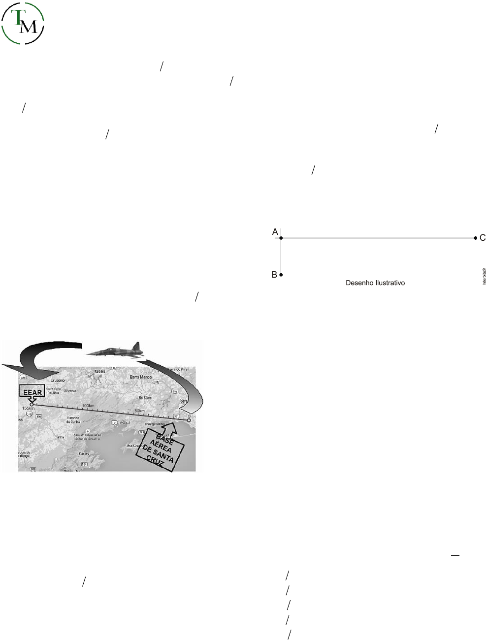 TEOREMA MILITAR LISTA 2- MOVIMENTO UNIFORME PROF. IGOR FERREIRA 1. (Eear 2018) Um móvel completa 1 3 de um percurso com o módulo da sua velocidade média igual a 2 km h e o restante com o módulo da velocidade média igual a 8 km h. Sendo toda a trajetória retilínea, podemos afirmar que a velocidade média desse móvel durante todo o percurso, em km h, foi igual a a) 4 b) 5 c) 6 d) 10 2. (Eear 2017) Uma aeronave F5 sai da base aérea de Santa Cruz às 16h30min para fazer um sobrevoo sobre a Escola de Especialistas de Aeronáutica (EEAR), no momento da formatura de seus alunos do Curso de Formação de Sargentos. Sabendo que o avião deve passar sobre o evento exatamente às 16h36min e que a distância entre a referida base aérea e a EEAR é de 155 km, qual a velocidade média, em km h, que a aeronave deve desenvolver para chegar no horário previsto? a) 1.550 b) 930 c) 360 d) 180 3. (Espcex (Aman) 2017) Um trem de 150 m de comprimento se desloca com velocidade escalar constante de 16 m s. Esse trem atravessa um túnel e leva 50 s desde a entrada até a saída completa de dentro dele. O comprimento do túnel é de: a) 500 m b) 650 m c) 800 m d) 950 m e) 1.100 m 4. (Espcex (Aman) 2012) Um avião bombardeiro deve interceptar um comboio que transporta armamentos inimigos quando este atingir um ponto A, onde as trajetórias do avião e do comboio se cruzarão. O comboio partirá de um ponto B, às 8 h, com uma velocidade constante igual a 40 km h, e percorrerá uma distância de 60 km para atingir o ponto A. O avião partirá de um ponto C, com velocidade constante igual a 400 km h, e percorrerá uma distância de 300 km até atingir o ponto A. Consideramos o avião e o comboio como partículas descrevendo trajetórias retilíneas. Os pontos A, B e C estão representados no desenho abaixo. Para conseguir interceptar o comboio no ponto A, o avião deverá iniciar o seu voo a partir do ponto C às: a) 8 h e 15 min. b) 8 h e 30 min. c) 8 h e 45 min. d) 9 h e 50 min. e) 9 h e 15 min. 5. (Efomm 2016) Uma video chamada ocorre entre dois dispositivos móveis localizados sobre a superfície da Terra, em meridianos opostos, e próximo ao equador. As informações, codificadas em sinais eletromagnéticos, trafegam em cabos de telecomunicações com velocidade muito próxima à velocidade da luz no vácuo. O tempo mínimo, em segundos, para que um desses sinais atinja o receptor e retorne ao mesmo dispositivo que o transmitiu é, aproximadamente, Dados: raio médio da Terra, 8med 1 R 10 m; 15 = Velocidade da luz (vácuo), 8 m c 3 10 . s = a) 1 30 b) 1 15 c) 2 15 d) 1 5 e) 3 10 TEOREMA MILITAR LISTA 2- MOVIMENTO UNIFORME PROF. IGOR FERREIRA 6. (Unicamp 2019) O físico inglês Stephen Hawking (1942-2018), além de suas contribuições importantes para a cosmologia, a física teórica e sobre a origem do universo, nos últimos anos de sua vida passou a sugerir estratégias para salvar a raça humana de uma possível extinção, entre elas, a mudança para outro planeta. Em abril de 2018, uma empresa americana, em colaboração com a Nasa, lançou o satélite TESS, que analisará cerca de vinte mil planetas fora do sistema solar. Esses planetas orbitam estrelas situadas a menos de trezentos anos-luz da Terra, sendo que um ano-luz é a distância que a luz percorre no vácuo em um ano. Considere um ônibus espacial atual que viaja a uma velocidade média 4v 2,0 10 km s.= O tempo que esse ônibus levaria para chegar a um planeta a uma distância de 100 anos luz− é igual a Dado: A velocidade da luz no vácuo é igual a 8c 3,0 10 m s.= Se necessário, use aceleração da gravidade 2g 10 m s ,= aproxime 3,0π = e 51atm 10 Pa.= a) 66 anos. b) 100 anos. c) 600 anos. d) 1.500 anos. 7. (G1 - col. naval 2019) Considere dois navios de guerra, uma Corveta e uma Fragata navegando paralelamente e no mesmo sentido em um trecho retilíneo. Sabendo que a Corveta apresenta comprimento 100 m e se locomove em movimento uniforme com velocidade escalar média de 20 m s e a Fragata apresenta comprimento 130 m e se locomove também em movimento uniforme mas com velocidade escalar média de 10 m s. Calcule, em segundos, o intervalo de tempo necessário para que a Corveta ultrapasse a Fragata a partir do momento em que a frente da Corveta estiver posicionada exatamente ao lado da traseira da Fragata e ao final da ultrapassagem quando a traseira da Corveta estiver posicionada exatamente ao lado da frente da Fragata, e assinale a opção correta. a) 6,5 b) 8,0 c) 13 d) 23 e) 30 8. (Epcar (Afa) 2011) Dois automóveis A e B encontram-se estacionados paralelamente ao marco zero de uma estrada. Em um dado instante, o automóvel A parte, movimentando-se com velocidade escalar constante AV = 80 km/h. Depois de certo intervalo de tempo, tΔ , o automóvel B parte no encalço de A com velocidade escalar constante BV = 100 km/h. Após 2 h de viagem, o motorista de A verifica que B se encontra 10 km atrás e conclui que o intervalo tΔ , em que o motorista B ainda permaneceu estacionado, em horas, é igual a a) 0,25 b) 0,50 c) 1,00 d) 4,00 9. (Fuvest 2020) Um estímulo nervoso em um dos dedos do pé de um indivíduo demora cerca de 30 ms para chegar ao cérebro. Nos membros inferiores, o pulso elétrico, que conduz a informação do estímulo, é transmitido pelo nervo ciático, chegando à base do tronco em 20 ms. Da base do tronco ao cérebro, o pulso é conduzido na medula espinhal. Considerando que a altura média do brasileiro é de 1,70 m e supondo uma razão média de 0,6 entre o comprimento dos membros inferiores e a altura de uma pessoa, pode‐se concluir que as velocidades médias de propagação do pulso nervoso desde os dedos do pé até o cérebro e da base do tronco até o cérebro são, respectivamente: a) 51m s e 51m s b) 51m s e 57 m s c) 57 m s e 57 m s d) 57 m s e 68 m s e) 68 m s e 68 m s TEXTO PARA A PRÓXIMA QUESTÃO: O rio Tapajós nasce no estado de Mato Grosso, banha parte do estado do Pará e deságua no rio A