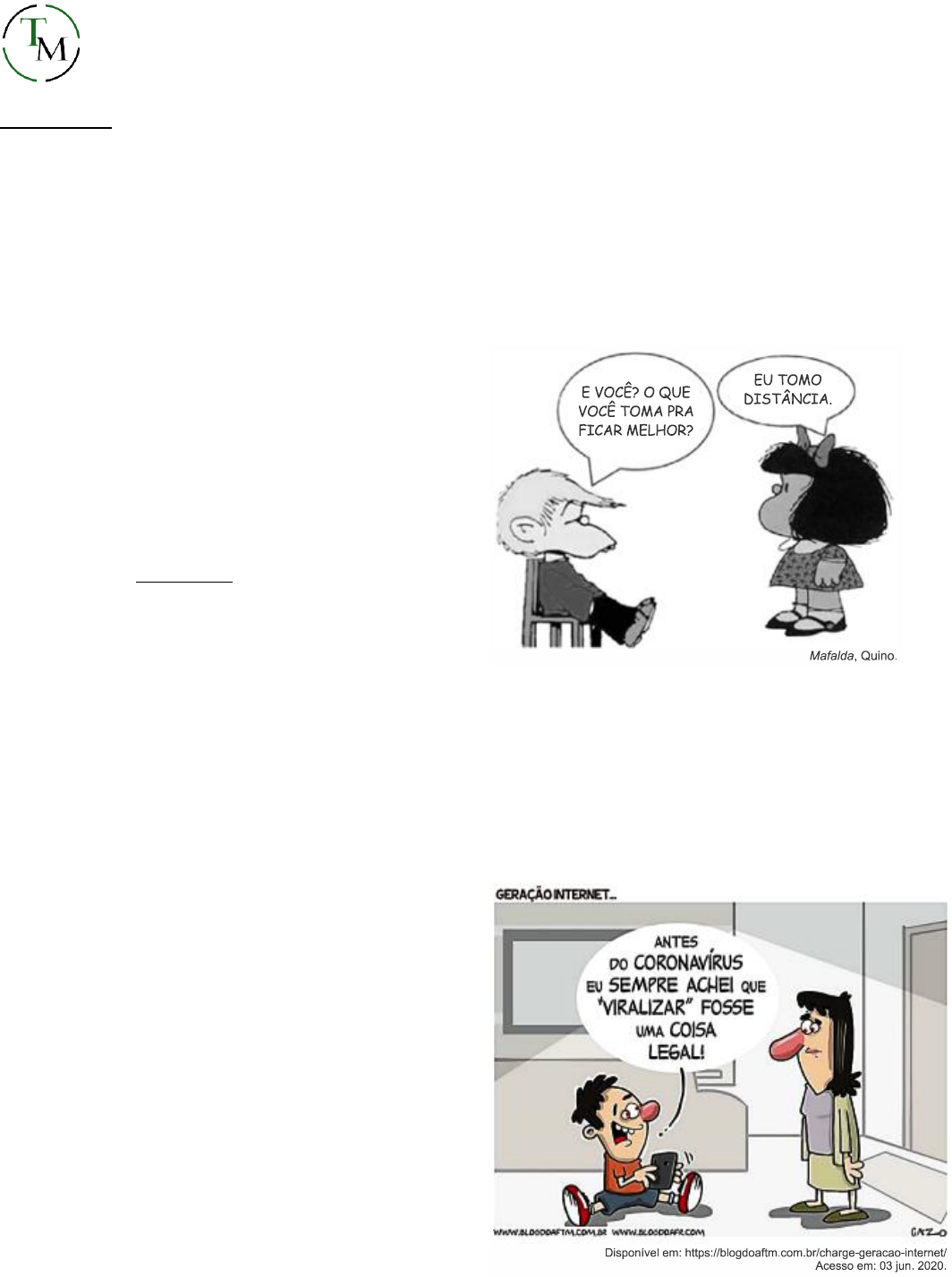 TEOREMA MILITAR 6º SIMULADO EsPCEx – 1º DIA – PORTUGUÊS, FÍSICA, QUÍMICA e REDAÇÃO PORTUGUÊS 1. Assim como a língua de um povo, os genes são representados por um código de letras. No código genético, as letras referem-se às iniciais das bases nitrogenadas que, combinadas em uma sequência específica, compreendem um significado químico relativo a uma proteína. Analise a sequência de letras na oração a seguir. A tua gata Cuca ataca a cacatua Cacau. Nessa oração, as palavras formadas integralmente por letras que se referem a bases nitrogenadas encontradas no DNA pertencem às seguintes classes gramaticais: a) preposição, pronome e verbo. b) artigo, pronome e substantivo. c) artigo, substantivo e verbo. d) preposição, substantivo e adjetivo. e) artigo, adjetivo e verbo. 2. “O criminoso pode alegar que foi o segundo eu o autor do crime.” (Carlos Drummond de Andrade. O avesso das coisas, 1990.) Transpondo-se para a voz passiva a oração centrada na locução verbal sublinhada, surge a forma verbal: a) pôde ser alegado. b) pode alegar. c) é alegado. d) pode ser alegado. e) foi alegado. 3. Soneto XLVI Cláudio Manuel da Costa (1729-1789) Não vês, Lise, brincar esse menino Com aquela avezinha? Estende o braço, Deixa-a fugir, mas apertando o laço, A condena outra vez ao seu destino. Nessa mesma figura, eu imagino, Tens minha liberdade, pois ao passo Que cuido que estou livre do embaraço, Então me prende mais meu desatino. Em um contínuo giro o pensamento Tanto a precipitar-me se encaminha, Que não vejo onde pare o meu tormento. Mas fora menos mal esta ânsia minha, Se me faltasse a mim o entendimento, Como falta a razão a esta avezinha. (COSTA, Cláudio Manoel da. Poemas. São Paulo : Editora Cultrix, 1966, p. 21) O poema de Claudio Manuel da Costa, expoente do Arcadismo brasileiro, tem como efeito de sentido um tom de: a) resignação. b) ressentimento. c) consternação. d) letargia. e) lamento. 4. O efeito de humor presente nas falas das personagens decorre a) da quebra de expectativa gerada pela polissemia. b) da ambiguidade causada pela antonímia. c) do contraste provocado pela fonética. d) do contraste introduzido pela neologia. e) do estranhamento devido à morfologia. 5. TEOREMA MILITAR 6º SIMULADO EsPCEx – 1º DIA – PORTUGUÊS, FÍSICA, QUÍMICA e REDAÇÃO A palavra “viralizar” é a) um verbo impessoal de 1ª conjugação. b) uma analogia para “espalhar “fake news”. c) um sinônimo de “se dar ao contágio de uma doença”. d) um neologismo formado por sufixação. e) um estrangeirismo derivado da língua inglesa. 6. Dizer que Caetano falou "X” porque "é um leonino vaidoso" quer dizer que: a) todo leonino é vaidoso (se leonino, vaidoso), ou b) que ele pertence a um subconjunto de leoninos, os vaidosos? (o que dá, no primeiro caso, "leonino, que é vaidoso" e no segundo, "leonino que é vaidoso"). (Sírio Possenti, postagem na rede social Facebook, 8 de agosto de 2020.) Entre os comentários à postagem, qual deles responde corretamente à pergunta do autor? a) “Em um determinado universo de crenças, leoninos são vaidosos. Isso é um clichê, um senso comum.” b) “‘É um leonino vaidoso’ = é como qualquer leonino, no caso, vaidoso. É vaidoso porque é vaidoso. Alternativa a.” c) “Entendo como a opção 2. Para que eu entendesse como opção 1, deveria ser: ‘como todo leonino, é vaidoso’, ou algo do tipo.” d) “Fico com a restritiva ‘leonino que é vaidoso’. Entendo que, ao trazer vaidoso a leonino, acentua o vaidoso já implicado em leonino.” 7. “Se Cabral tivesse uma vaga noção d’ACAPA de hoje, véspera do 22 de abril de 2020, provavelmente teria desviado o curso de suas caravelas rumo a outras terras.” ACAPA é um perfil de Facebook, que publica capas possíveis de revista. O efeito humorístico na leitura dessa edição de ACAPA decorre mais precisamente do uso a) da expressão “terra à vista”, que remete à época em que a terra ainda era plana. b) da expressão “abundam birutas”, em referência aos povos originários do Brasil. c) do pronome relativo “cujo” para indicar o destino traçado para a terra plana há 520 anos. d) da imagem de uma biruta mostrando a direção do vento, aliada à referência a “birutas” atuais. TEXTO PARA A PRÓXIMA QUESTÃO: O QUE É INTOLERÂNCIA 1A palavra “intolerância” vem do latim intolerantia, que significa impaciência, incapacidade de suportar, falta de condescendência e de compreensão. 2Também compreende o sentido de inflexível, rígido e que não admite opinião ou posição divergente. No sentido oposto, “tolerância” foi definida pela Organização das Nações Unidas para a Educação, a Ciência e a Cultura (Unesco) como “o respeito, a aceitação e o apreço da riqueza e da diversidade das culturas de nosso mundo, de nossos modos de expressão e de nossas maneiras de exprimir nossa qualidade de seres humanos”. (...) Um interessante entendimento das razões da intolerância é o da antropóloga francesa Françoise Héritier (1933-2017). Segundo ela, a intolerância está associada à dificuldade de 3reconhecer a expressão da condição humana no que nos é absolutamente diverso. Ser intolerante seria "restringir a definição de humano aos membros do grupo; 4os outros, sendo não humanos, podem ser tratados como tais". 5Está aí uma das chaves para a compreensão das causas do aumento da intolerância nos últimos tempos. (...) (Disponível em: http://conhecimentocerebral1.blogspot.com/2018/06/a tualidades-vestibular-e-enem-dossie.html - Acesso em 28/08/2020) 8. Assinale a opção cujo “sujeito da oração” pode ser classificado como o da sentença abaixo: “A única coisa que não pode ser comprada é o saber” a) Não é possível se tornar um homem culto com um cheque em branco. b) Perdeu-se de vista o sentido da solidariedade humana. c) As instituições de ensino se tornaram meras fábricas
