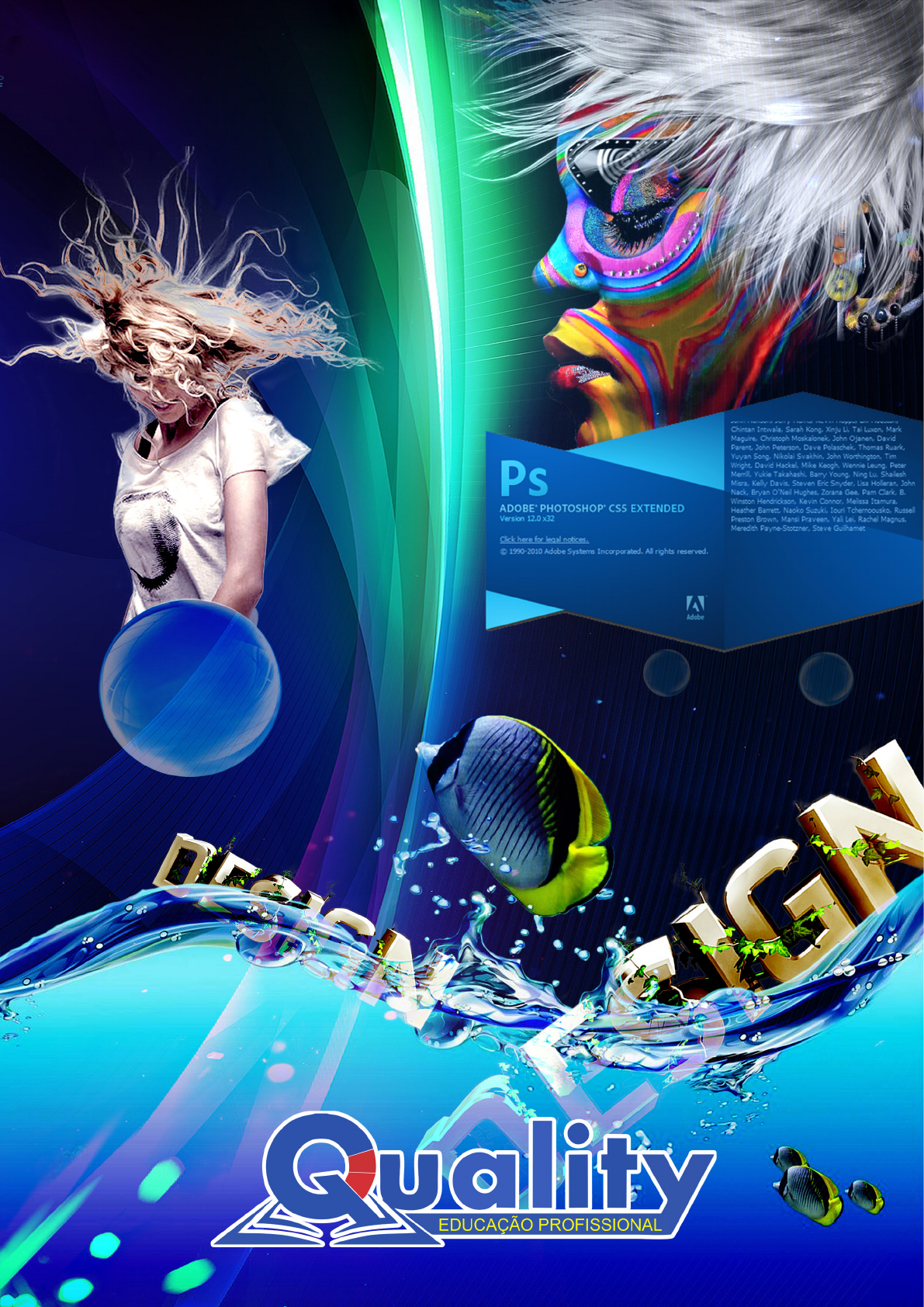 63Quality Educação Profissional - Capacitando você para o Futuro Design Profissional - Photoshop CC 31Quality Educação Profissional - Capacitando você para o Futuro Design Profissional - Photoshop CC Quando se fala de tratamento de imagens, o primeiro nome de programa editor de imagem que vem à mente é o Photoshop. O Adobe Photoshop é um excelente programa projetado para edição de imagens. Esta versão do PhotoSHOP CS5 trouxe mais recursos para tratamento das imagens, como novos filtros que dão opção ao usuário utilizá-los para dar e garantir melhores definições às fotografias. Quem usa o Photoshop? Os fotógrafos, diagramadores, webdesigners, e pessoas que trabalham com fotos digitais, desenhos ou infográ- ficos. Esta apostila traz vários tutoriais e orientações para ajudá-lo a aproveitar melhor todos os recursos do Photoshop. Introdução 1 64 3 5 2 7 1. Página em branco - Usada para criação do arquivo. 2. Barra de ferramentas - Uma barra de encaixe que contém atalhos para menus e outros comandos. 3. Barra de menus - A área que contém opções de menu. 4. Barra de propriedades - Uma barra de encaixe com comandos relacionados à ferramenta ou objeto ativo. Por exemplo, quando uma ferramenta de seleção está ativada, a barra de propriedades de seleção exibe comandos que criam e editam imagens. 5. Janela de Aplicativos - Contém todas as Janelas utilizadas para configuração geral do arquivo. 6. Barra de título - A área que exibe o título do desenho aberto no momento. 7. Barra de Status. Fig. 01. Tela do PhotoShop CC 32 Quality Educação Profissional - Capacitando você para o Futuro Design Profissional - PhotoShop CC Teclas de atalhos Ver toda a imagem SHIFT para movimentações de 10 pixels. Mover camada em um pixel CTRL + “seta para cima” ou “seta para baixo” ou “seta par direita” ou “seta para esquerda” Aumentar tolerância do Magnetic Lasso Ferramenta magnetic lasso + [ Faz o que o título diz. Pressione “]” ao invés de “[“ para diminuir. Inverter orientação da guia Segurar ALT e clicar na guia Execute esse atalho e a guia mudará de orientação. Soltar e pressionar ALT enquanto ainda está segurando o clique na guia muda a orientação sem ter que soltar o clique. Pintando Ativar conta-gotas Pressione ALT enquanto alguma ferramenta de pintura estiver selecionada. Segure ALT quando alguma ferramenta de pintura (pincel, spray, lata de tinta...) estiverem selecionadas e clique na cor que você quer que seja a sua nova cor de primeiro plano (foreground), e conseqüentemente, a cor de pintura. Quando você soltar o ALT, a ferramenta anterior voltará à ativa e você poderá continuar seu trabalho sem se desconcentrar. Conta-gotas no modo de seleção de cor de background Ferramenta conta-gotas + ALT Se você quiser selecionar a cor de background, e não de foreground com o eyedropper (conta-gotas), basta segurar ALT enquanto essa ferramenta estiver ativa e clicar na cor desejada. Circular entre modos de pintura (blend modes) SHIFT + “+” ou “ - “ Alterna entre os modos de mistura da ferramenta de pintura atual. Preencher seleção com cor de foreground ALT + Backspace Preenche a seleção atual com a cor de foreground no blend mode normal e opacidade 100%. Elimina a necessidade de viajar pelos menus para abrir a tela de fill para um preenchimento simples. Preencher seleção com cor de background CTRL + Backspace Faz a mesma coisa que o atalho anterior, mas usa a cor de background para pintar a seleção. Preencher seleção a partir do histórico ALT + CTRL + Backspace Restaura uma área selecionada ao seu estado original, aquele no qual esta mesma área estava quando a imagem foi aberta. Exibir caixa de diálogo fill SHIFT + Backspace Se nenhum dos atalhos acima for aplicável (como no caso de você ter que usar outro blend mode ou mudar a opacidade para adicionar transparência), use este para abrir a caixa de diálogo fill sem ter que usar os menus desnecessariamente. Trancar pixels transparentes / (barra - slash para frente) Quando você tem um objeto numa camada e precisa mudar sua cor, você pode carregar a transparência da camada (segurando CTRL e clicando na camada) ou trancar seus pixels transparentes de modo a fazer com que uma ferramenta de pintura quando ativada sem nenhuma seleção afete apenas os pixels que já estejam pintados. Conectar pontos com linha reta Segurar SHIFT e clicar quando alguma ferramenta de pintura (exceto lata de tinta) estiver ativa Para evitar que suas retas traçadas à “mão livre” não sejam retas, segure SHIFT e clique. Será traçada uma reta começando no último ponto em que você soltou o mouse e terminando no ponto clicado. Editando texto Alinhar à esquerda Segurar SHIFT e CTRL e teclar L quando a ferramenta type estiver ativa Alinha o texto ativo à esquerda. Se a ferramenta Vertical Type estiver ativa, alinha ao topo. Alinhar ao centro (horizontalmente) Segurar SHIFT e CTRL e teclar C quando a ferramenta type estiver ativa Alinha o texto ativo ao centro. Se a ferramenta Vertical Type estiver ativa, alinha ao centro verticalmente (meio). Alinhar à direita Segurar SHIFT e CTRL e teclar R quando a ferramenta type estiver ativa Alinha o texto ativo à direita. Se a ferramenta Vertical Type estiver ativa, alinha ao fundo (bottom). Os atalhos de seleção comuns do Windows como SHIFT + setas ou CTRL + SHIFT + setas ou mesmo a seleção do ponto de inserção (caret) até determinado ponto (SHIFT + clique) funcionam no modo texto do Photoshop. O mesmo vale para os atalhos de movimentação, como setas ou CTRL + setas ou ainda HOME, END e etc... 33Quality Educação Profissional - Capacitando você para o Futuro Design Profissional - Photoshop CC 01- Abra um novo documento (Ctrl + N) e faça as mesma configuração da figura 02. Agora e preciso resetar (Pressione a tecla D) as cores Primeiro plano e Plano de fundo para preto e branco . Selecione a ferramenta Lata de 