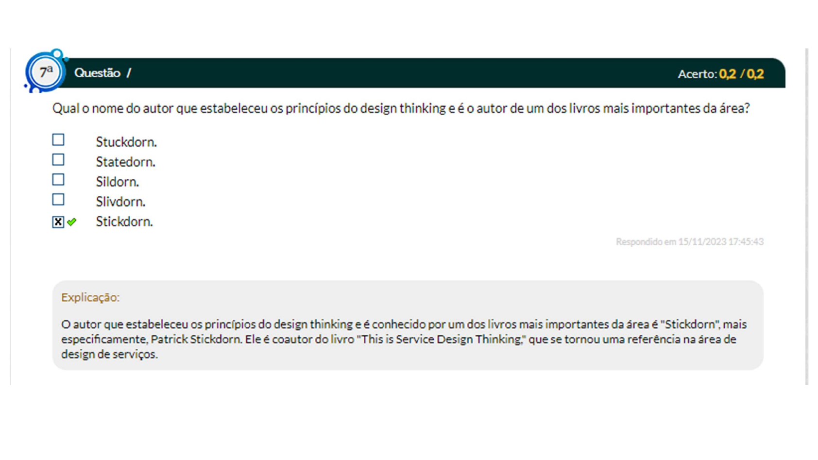 Qual o nome do autor que estabeleceu os princípios do design thinking e é o autor de um dos livros mais importantes da área? A Statedorn. ## B Stic...