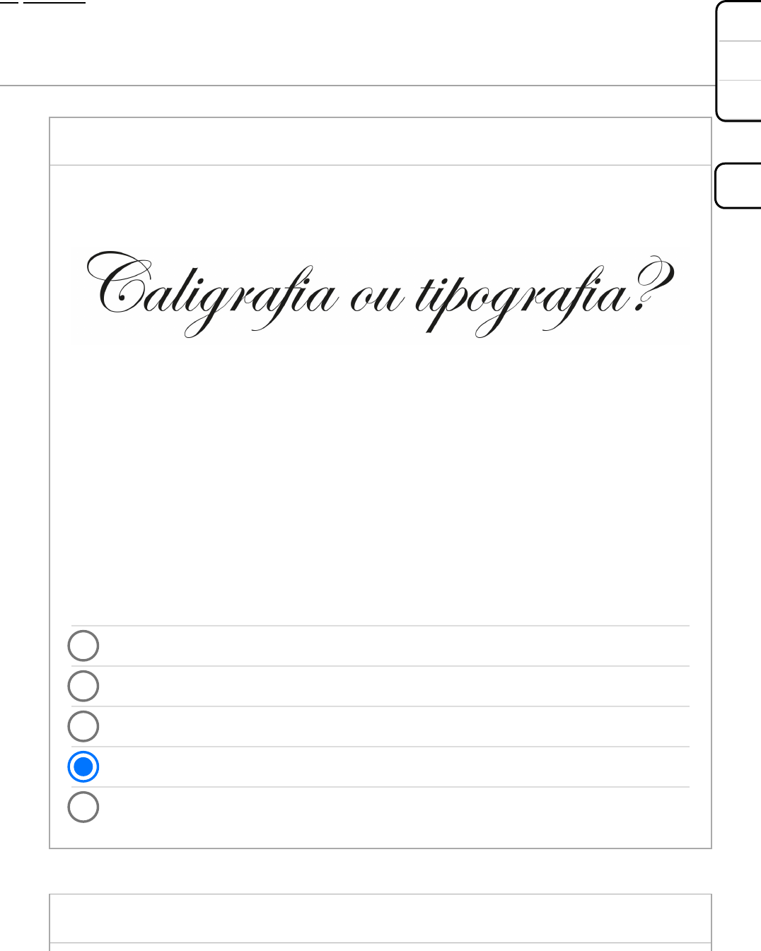 07/12/2022 22:23 Teste: AO2 https://famonline.instructure.com/courses/24274/quizzes/110149/take 1/10 AO2 Iniciado: 7 dez em 1:28 Instruções do teste Importante: Caso você esteja realizando a atividade através do aplicativo "Canvas Student", é necessário que você clique em "FAZER O QUESTIONÁRIO", no final da página. 0,6 ptsPergunta 1 II, apenas. I, apenas. II e III, apenas. I e II, apenas. III, apenas. Observe a imagem abaixo: Fonte: Elaborado pela autora. Considerando a imagem indicada, avalie as afirmações abaixo: I. A imagem apresenta uma caligrafia estilo Cooperplate feita com pena flexível. II. Temos uma imagem com tipografia baseada em Brush Pen. III. A tipografia apresentada na imagem está com alto contraste. É correto o que se afirma em: 0,6 ptsPergunta 2 A+ A A- 07/12/2022 22:23 Teste: AO2 https://famonline.instructure.com/courses/24274/quizzes/110149/take 2/10 A asserção I é uma proposição verdadeira, e a II é uma proposição falsa. As asserções I e II são proposições verdadeiras, mas a II não é uma justificativa da I A asserção I é uma proposição falsa, e a II é uma proposição verdadeira. As asserções I e II são proposições verdadeiras, e a II é uma justificativa da I. As asserções I e II são proposições falsas. A máquina Linotype (em português, Linotipo) é uma compositora automática que usa um teclado de 90 caracteres para criar de uma só vez uma linha inteira de tipos de metal. Isso permite imprimir com muito mais rapidez do que com o sistema no estilo Gutenberg, no qual os operadores colocam só uma letra, marca de pontuação ou espaço de cada vez. A máquina Linotype revolucionou a publicação de jornais, tornando possível que um número relativamente pequeno de operadores pudesse compor diariamente muito mais tipos para muito mais páginas. (Fonte: FONSECA, J. Tipografia & Design Gráfico. Porto Alegre: Bookman, 2008: p. 105.) Considerando as informações apresentadas, analise as asserções abaixo e a relação proposta entre elas: I. A máquina Linotipo foi criada durante a Revolução Industrial. PORQUE II. Muitos profissionais que trabalhavam com composição de tipos de metal individuais perderam seus empregos. Assinale a alternativa correta: 0,6 ptsPergunta 3 Leia o texto a seguir: É comum assumir-se que a composição justificada é a norma para documentos associados a formalidade e perenidade, dado a percepção que se tem dela ser de uniformidade e controle. Fonte: JURY, David. O que é tipografia. Barcelona: Gustavo Gilli, 2007. A+ A A- 07/12/2022 22:23 Teste: AO2 https://famonline.instructure.com/courses/24274/quizzes/110149/take 3/10 As asserções I e II são proposições verdadeiras, e a II é uma justificativa da I. As asserções I e II são proposições falsas. As asserções I e II são proposições verdadeiras, mas a II não é uma justificativa da I. A asserção I é uma proposição verdadeira, e a II é uma proposição falsa. A asserção I é uma proposição falsa, e a II é uma proposição verdadeira I. Textos justificados possuem espaços entre palavras regulares. PORQUE II. É necessário sempre hifenizar textos em composição justificada6. A respeito das asserções, assinale a alternativa correta. 0,6 ptsPergunta 4 As fontes digitais devem possuir a mesma altura para uma montagem precisa das linhas de texto. A composição digital se limita à unidade de medida de pontos tipográficos. As fontes de metal devem possuir a mesma altura para uma montagem precisa das linhas de texto. Leia o texto abaixo: A medida do tipo em pontos é determinada pela distância do topo da ascendente ou do topo da letra capital (qualquer dos dois que for o maior) à base da descendente. Essa área de medida evoluiu da peça de tipo fundido em chumbo chamada de base, plataforma ou corpo do tipo. Cada forma de letra, independentemente de seu tamanho real, era fundida no mesmo tamanho de corpo, de forma que todas as letras podiam ser ordenadamente alinhadas pelo topo e pela base no componedor. Fonte: CLAIR, K. Manual de tipografia: a história, a técnica, a arte. Porto Alegre: Bookman, 2009., p. 153-154 Considerando as informações apresentadas, assinale a opção correta. A+ A A- 07/12/2022 22:23 Teste: AO2 https://famonline.instructure.com/courses/24274/quizzes/110149/take 4/10 As unidades de medida dos tipos de metal dependem do fornecedor. A altura de x das fontes de metal devem ser sempre iguais para uma impressão correta. 0,6 ptsPergunta 5 I, apenas I e III, apenas II e III, apenas III, apenas II, apenas Leia o texto a seguir: O espaçamento entre as letras é uma função de seu espaço interno. Quanto menor esse espaço interno, menor o espaçamento; quanto maior o espaço interno, maior o espaçamento. Isso vale não apenas para a escrita latina – seja romana, seja gótica -, mas também para a grega e a cirílica, bem como para a grafia manuscrita, desenhada e tipográfica. Fonte: HOCHULI, J. O detalhe na tipografia. São Paulo: WMF Martins Fontes, 2013, p. 25-26. Considerando o texto, avalie as informações abaixo: I. O espaço interno interfere na definição dos sidebearings de uma fonte. II. O tracking de uma fonte depende das dimensões dos olhos das letras. III. O ajuste de espaços em uma fonte é tarefa apenas do designer na produção editorial e não pode ser feito em softwares gratuitos, como o fontforge, que provocam distorções indesejadas. É correto o que se afirma em 0,6 ptsPergunta 6 A+ A A- 07/12/2022 22:23 Teste: AO2 https://famonline.instructure.com/courses/24274/quizzes/110149/take 5/10 Uma fonte bem projetada possui kerning óptico. Uma fonte com kerning métrico é adequada para uso em textos. Para compor títulos não é necessário ajustar o kerning métrico O ajuste de kerning manual não é necessário em títulos se a fonte for comprada Textos longos não têm kerning Leia o texto abaixo: Quando está trabalhando num programa de leiaute de página, o designer po