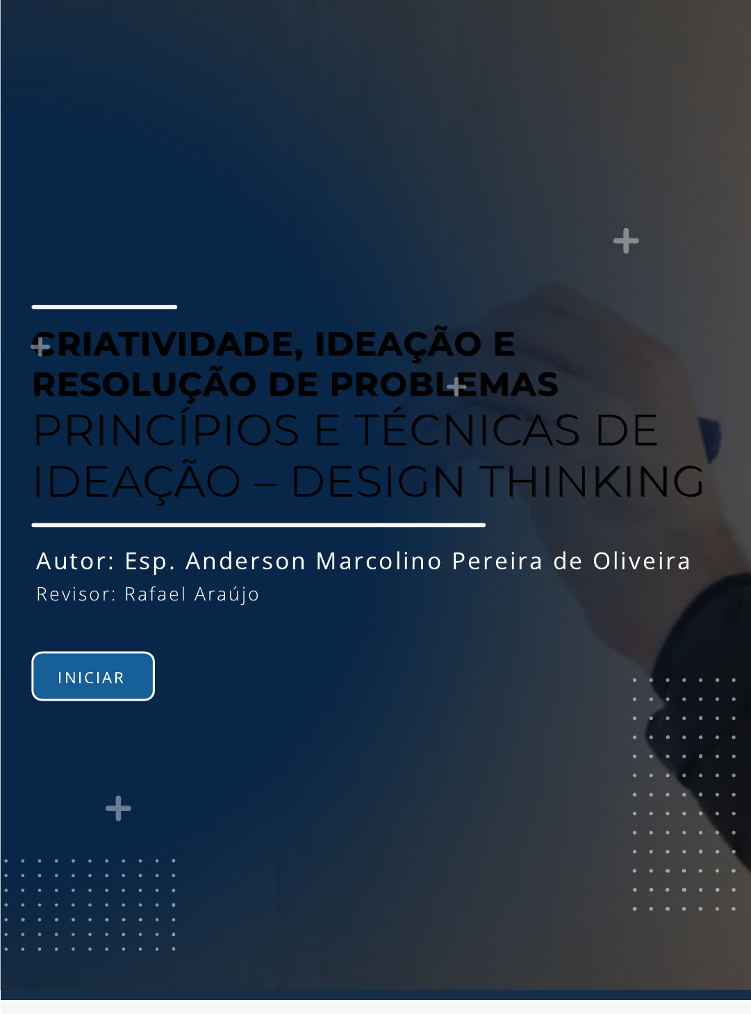CRIATIVIDADE, IDEAÇÃO ECRIATIVIDADE, IDEAÇÃO E RESOLUÇÃO DE PROBLEMASRESOLUÇÃO DE PROBLEMAS PRINCÍPIOS E TÉCNICAS DEPRINCÍPIOS E TÉCNICAS DE IDEAÇÃO – DESIGN THINKINGIDEAÇÃO – DESIGN THINKING Autor: Esp. Anderson Marcolino Pereira de Oliveira Revisor : Rafae l Araújo IN IC IAR introdução Introdução Caro(a) estudante, iniciaremos aqui uma jornada de imersão sobre a criatividade, como desenvolver ideias e reconstruir princípios, sob a perspectiva de um modelo de pensamento que se propõe, de maneira estruturada, apontar um caminho para a construção de soluções para os desa�os da vida moderna, de forma criativa, inovadora e sob o olhar de vários ângulos. No capítulo que estamos iniciando, exploraremos uma técnica de construção de ideias que está totalmente alinhada com os princípios de atendimento ao consumidor 4.0: o design thinking. Durante a exploração do conteúdo, iremos abordar sua utilização e suas ferramentas, que nos propiciam a desenvolver a construção sólida da criatividade nos pro�ssionais. O objetivo geral desta unidade é nos aproximarmos desse conceito que nos auxilia no desenvolvimento da criatividade e da capacidade de propor soluções inovadoras para a realidade que é apresentada pelo mercado 4.0. Ao longo dessa jornada, apresentaremos como surgiu a ideia do design thinking e como essa metodologia nos auxilia na construção de novos modelos mentais de produção de ideias e soluções. Vamos pensar “fora da caixinha”? O mercado globalizado atual oferece desa�os, nos quais as ferramentas desenvolvidas nas primeiras revoluções industriais, com produções estáticas e sem o envolvimento do cliente, já não suprem a necessidade do consumidor 5.0. A velocidade da mudança de paradigmas é muito alta, fazendo com que as técnicas de aprendizado utilizadas no início das eras industriais já não atendam mais às nossas necessidades. Com isso, precisamos, nas palavras de To�er (1973), “aprender, desaprender e reaprender”, sem o que não conseguiremos nos conectar com o nível de competitividade exigido em nível global. Assim, o desenvolvimento de competências e habilidades ligadas às tendências tecnológicas e os problemas e oportunidades que elas nos proporcionam abordam uma característica inerente ao comportamento humano – a criatividade. Já o pensamento de Edgar Morin (2001), em sua teoria da complexidade, a�rma que devemos pensar global e agir local, pois, ao mesmo tempo que precisamos desenvolver estratégias que nos levem a massi�car a produção para reduzir os custos globais dos produtos e serviços, também necessitamos Princípios e Técnicas dePrincípios e Técnicas de Ideação – Design ThinkingIdeação – Design Thinking resolver problemas pontuais da sociedade em que vivemos, e para se destacar no mercado, ainda temos de desenvolver a capacidade de se ajustar às necessidades do cliente, customizando os resultados quando assim for necessário. Na realidade, o principal problema do mercado se resume em duas partes: o consumidor está mais exigente. Ele não mais consome um produto que lhe é “empurrado” pelo sistema produtivo. Em contrapartida, as empresas ainda não conseguiram compreender com clareza as demandas do mercado. Ou seja: nunca sabemos o que o cliente quer de verdade. Muitas vezes, criamos soluções que atendem às necessidades de um nicho de clientes, porém não projetamos os re�exos que produziremos nos âmbitos sociais, ambientais e, principalmente, econômicos, atuais e futuros para a empresa. Em resumo, como as companhias precisam de resultados imediatos, nós simplesmente entregamos e cumprimos nossas metas! Podemos observar essa realidade quando visitamos uma loja de varejo: uma in�nidade de marcas e modelos, em que podemos observar que quase não existe diferença entre os produtos! Por exemplo, o que difere um celular da marca A para a marca B? Software? Hardware? Aparência? Robustez? Status? Preço? Qual critério para a SUA decisão de compra? O fato é que o modelo de produção vigente ainda está estagnado nesse mesmo jeito há anos! Todos os celulares possuem características (inclusive as peças internas!) semelhantes, e nós nos deixamos levar por critérios aleatórios para de�nir nossa tomada de decisão, como recomendações de amigos, vendedores... até de consumidores na internet! reflita Re�ita Como está seu padrão de consumo atual? Quais fatores o levam a tomar a decisão de compra? O que se observa de tudo o que foi exposto é que os métodos de desenvolvimento de produtos e serviços que atualmente estão apresentados já não conseguem oferecer soluções viáveis para os problemas dos consumidores, ou seja, com isso estamos apenas estimulando o consumo desenfreado e simplesmente descartando aquilo que já não atende mais nossas expectativas, muitas vezes literalmente jogando no lixo aquilo que ainda deveria suprir as nossas necessidades. Daí surgem problemáticas que afetam a cabeça dos principais gestores no mercado: em um mundo com cada vez mais anseio por consumo, contrastando com a disponibilidade cada vez menor de recursos, como solucionar essa equação? Como desenvolver novas abordagens para que possamos realinhar a expectativa versus realidade sobre as nossas necessidades? Como as empresas e as pessoas podem contribuir para construir soluções para esses problemas? Diante do exposto, o design thinking apresenta-se como uma ferramenta de promoção de ideias e soluções para os problemas que apresentamos aqui. Vamos conhecer um pouco mais sobre essa ferramenta a seguir! História do Design Thinking A história do uso da expressão design thinking começa, segundo Alt e Pinheiro (2011), em 1992, no artigo “Wicked problems in design thinking”, do professor Richard Buchanan, da Universidade de Carnegie Mellon, EUA. Nele, o autor defendeu que o design deveria ser aplicado em outras áreas, e, com isso, esse não 