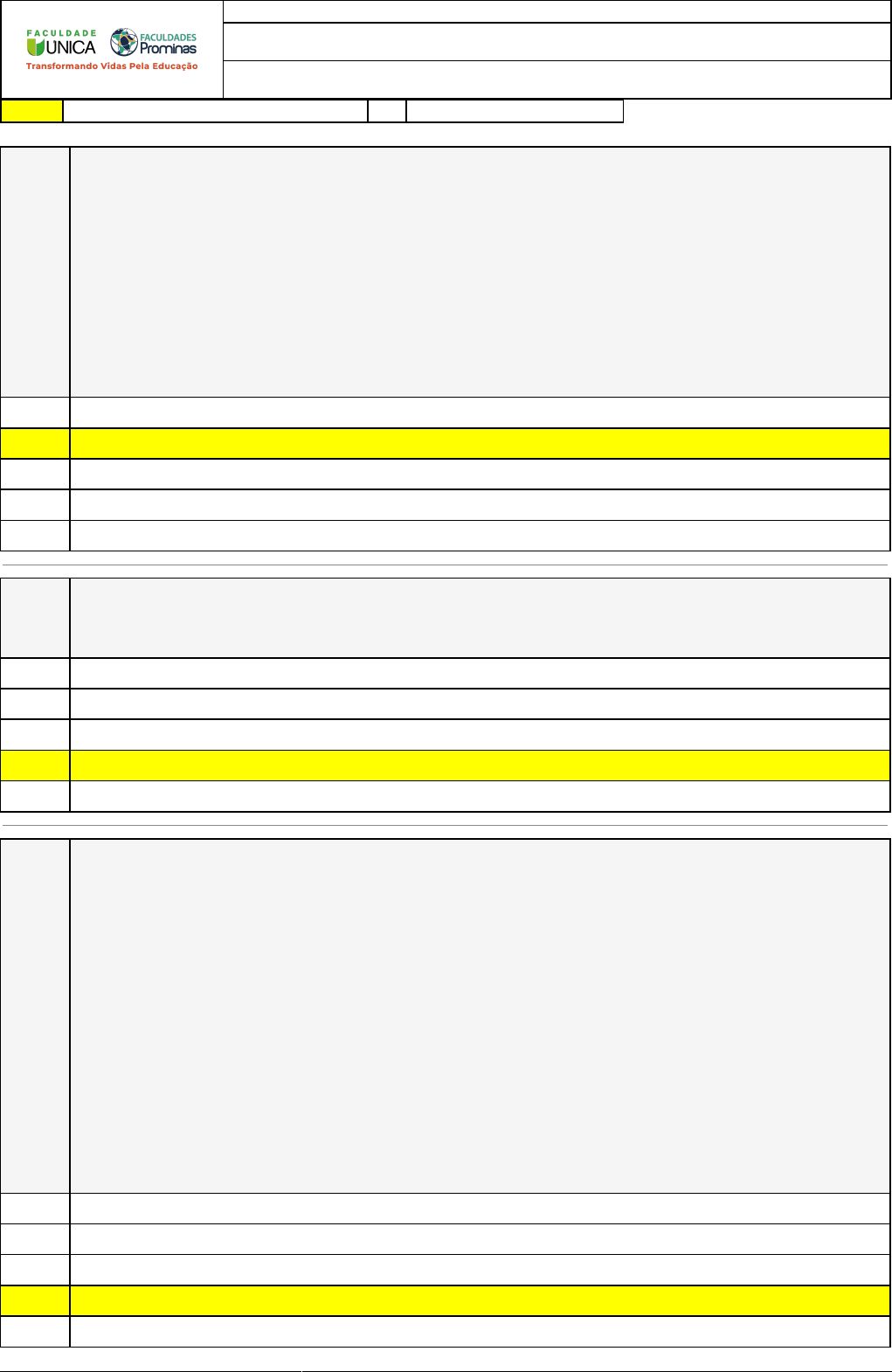 19/02/2023 17:45:34 1/2 REVISÃO DE SIMULADO Nome: JAQUELINE PASSOS SILVA MASCARENHAS GOMES Disciplina: Planejamento Estratégico Respostas corretas são marcadas em amarelo X Respostas marcardas por você. Questão 001 Planejamento __________ é a metodologia administrativa que tem por finalidade otimizar determinada área de resultado e não a organização como um todo. Portanto, trabalha com decomposições dos objetivos, estratégias e políticas estabelecidas. Planejamento __________ é a formalização, principalmente através de documentos escritos, das metodologias de desenvolvimento e implementação de resultados específicos a serem alcançados pelas áreas funcionais da organização. Planejamento __________ é o processo administrativo que proporciona sustentação metodológica para se estabelecer a melhor direção a ser seguida pela organização, visando a um grau otimizado de interação com os fatores externos – não controláveis – e atuando de forma inovadora e diferenciada. A) Tático – estratégico – operacional X B) Tático – operacional – estratégico C) Operacional – estratégico – tático D) Operacional – tático – estratégico E) Estratégico – tático – operacional Questão 002 A empresa Beta atua com a produção e venda do produto X, de forma de possui que tem seu core business nele. A respeito desta situação, assinale a alternativa que indique a estratégia utilizada pela empresa Beta. X A) Estabilidade. B) Inovação. C) Capacidades. D) Nicho. E) Especiação. Questão 003 (UFSC) - Sobre o planejamento organizacional, assinale a alternativa que preenche correta e respectivamente as lacunas abaixo. Leia o excerto a seguir: No processo de formulação da estratégia, destaca-se a importância que elas perpassem por todos os níveis hierárquicos. Por este motivo, as estratégias se classificam em três níveis: corporativo, de unidade estratégica de negócio e funcional. A respeito dos níveis de estratégia nas organizações, analise as afirmativas a seguir e assinale V para a(s) verdadeira(s) e F para a(s) falsa(s). ( ) A estratégia corporativa contempla áreas específicas, tal como o RH. ( ) A estratégia de unidade de negócio foca nos planos de ação. ( ) A estratégia funcional tem foco em suas unidades específicas. ( ) A estratégia corporativa busca reposta sobre o negócio em que está. Assinale a alternativa que apresenta a sequência correta. A) V, V, V, V. B) F, F, F, F. X C) V, V, F, F. D) F, V, F, V. E) V, V, F, V. 19/02/2023 17:45:34 2/2 Questão 004 O planejamento de curto prazo com tarefas e atividades específicas refere-se ao A) planejamento setorial.. B) mapa estratégico. C) planejamento estratégico. X D) planejamento operacional. E) planejamento global. Questão 005 Trata-se de uma estratégia de crescimento, em que ocorre a junção entre duas organizações, com a finalidade de produzir determinado produto: A) Internacionalização. X B) Joint venture. C) Nicho. D) Inovação. E) Expansão. Questão 006 A empresa Beta atua com a produção e venda do produto X, de forma de possui que tem seu core business nele. A respeito desta situação, assinale a alternativa que indique a estratégia utilizada pela empresa Beta. X A) Inovação. B) Nicho. C) Capacidades. D) Especiação. E) Estabilidade. Questão 007 Alcança o nível mais vasto do planejamento e abrange toda a organização, é preparado no longo prazo, tendo seus efeitos e consequências ampliado até o futuro. Tal afirmativa se refere ao Planejamento A) operacional. X B) estratégico. C) tático. D) de Marketing. E) global. Questão 008 Comumente é realizado pela alta cúpula da organização e se estende a longo prazo. Assinale a alternativa que apresente a resposta correta em relação a este trecho. A) Decisões. B) Estratégico. X C) Operacional. D) Tático. E) Planejamento.