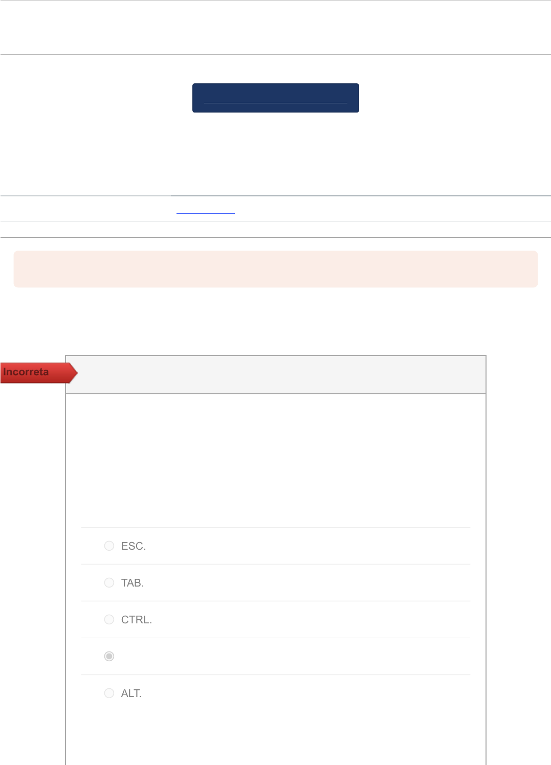 Atividade Entrega Sem prazo Pontos 10 Perguntas 10 Limite de tempo Nenhum Tentativas permitidas Sem limite Histórico de tentativas Tentativa Tempo Pontuação MAIS RECENTE Tentativa 1 24 minutos 9 de 10 As respostas corretas estão ocultas. Pontuação desta tentativa: 9 de 10 Enviado 10 ago em 21:06 Esta tentativa levou 24 minutos. Fazer o teste novamente 0 / 1 ptsPergunta 1IncorretaIncorreta Para realizar a edição de um osso simples em uma animação, adicionando a ele mais juntas e ossos conectados, para formação do esqueleto, é necessário acessar o modo de edição por meio do seletor localizado logo acima da linha do tempo no menu inferior ou pressionar uma tecla de atalho no teclado. Que tecla é essa? ESC. TAB. CTRL. SHIFT. ALT. https://cruzeirodosul.instructure.com/courses/13143/quizzes/45246/history?version=1 https://cruzeirodosul.instructure.com/courses/13143/quizzes/45246/take?user_id=255426 Como foi dito na apostila, “o que precisamos fazer agora é editar o osso simples, adicionando a ele mais juntas e ossos conectados, formando o nosso esqueleto Acesse o modo de edição por meio do seletor localizado logo acima da linha do tempo no menu inferior (ou pressione TAB no teclado).” 1 / 1 ptsPergunta 2 Ao final da criação de uma animação, o usuário pode escolher não visualizar os ossos no modo de edição. Para isso, basta selecioná-los e escolher qual opção no módulo Display do menu lateral direito, na aba de propriedade dos ossos? Hide. Do. Make. Animation. Show. Caso não queira visualizar os ossos no modo de edição, selecione-os e escolha a opção Hide, no módulo Display, do menu lateral, na aba de propriedade dos ossos. 1 / 1 ptsPergunta 3 Assinale a alternativa que não contém um modo de visualização do esqueleto no Blender. Octhaedral. Decahedron. Envelope. Stick. B-bone. - Octahedral – octaedro, como mostrado em outras imagens do material teórico. - Stick – um cilindro simples de raio pequeno. - B-bone – boxes e esferas para ossos e juntas. - Envelope – cápsulas e esferas para ossos e juntas (mostrando os ossos conectados). - Wire – Linha simples e esferas para ossos e juntas. 1 / 1 ptsPergunta 4 Qual é a função do comando SHIFT + I com dois ossos selecionados? Abrir o painel de constraints. Remover um osso da hierarquia. Alterar para object mode. Alterar para pose mode. Inserir Cinemática Inversa ao conjunto. TAB – Alterna entre Object Mode e Edit Mode. [Object Mode] SHIFT + A > Armature > Single Bone – Cria uma nova armadura com um único osso. [Edit Mode] E – Extrusão. ALT + P – Remove da hierarquia (clear parent). CTRL + P – Adiciona à hierarquia (make parent) – selecionar o filho, depois o pai. SHIFT + I – Insere cinemática inversa ao osso. SHIFT + CTRL + C – Abre o painel de constraints. 1 / 1 ptsPergunta 5 O que significa o valor de força (strength) de um pincel no modo MIX? Quantas vezes são necessárias para aplicar o pincel sobre o alvo. Peso a ser removido do vértice. Valor de peso que não é alterado pela ação. Porcentagem de suavização dos vizinhos. Peso a ser adicionado ao vértice. MIX - Neste modo, o valor de peso define o peso desejado que será atingido quando você pintar por tempo suficiente no mesmo local da malha. A força determina quantas vezes você deve aplicar o pincel sobre o alvo. Para força = 1.0, o peso alvo é pintado imediatamente e para Peso = 0.0, o pincel não faz nada. 1 / 1 ptsPergunta 6 Assinale a alternativa que contém o modo de pintura de pesos no Blender que especifica o valor de peso que é adicionado sobre o peso atual de um vértice. DARKEN ADD SUBTRACT LIGHTEN BLUR Especifica o valor de peso que é adicionado sobre o peso atual de um vértice. O valor da força (strenght) do pincel escolhido determina a fração que será adicionada com a pintura. O pincel não poderá pintar valores menores que 0. 1 / 1 ptsPergunta 7 Qual a cor usada para representar controladores de uma animação? Azul. Roxo. Vermelho. Amarelo. Verde. Atenção às cores das propriedades dos objetos, no painel Attribute Editor. Uma propriedade apresentada em amarelo significa que essa é armazenada em um quadro-chave; em verde, significa que está animada; e em roxo, representa um controlador 1 / 1 ptsPergunta 8 Julgue as alternativas a seguir sobre as formas de inserção de quadro- chave no Blender e assinale a alternativa correta: I - Pressionar a tecla I no ambiente 3D para abrir a janela de propriedades e, em seguida, selecionar a propriedade a ser armazenada no quadro-chave. II - Parar o mouse sobre a propriedade que deseja animar e pressionar a tecla I, criando o quadro-chave. III - Clicar com o botão direito sobre a propriedade e em seguida “Inserir quadro-chave”. É correto afirmar que: Somente II está correta. Somente III está correta. Somente I está correta. Todas estão corretas Somente I e II estão corretas. Existem algumas formas de se inserir um quadro-chave: - Pressionar a tecla I no ambiente 3D para abrir a janela de propriedades e, em seguida, selecionar a propriedade a ser armazenada no quadro-chave; - Parar o mouse sobre a propriedade que deseja animar e pressionar a tecla I, criando o quadro-chave; - Clicar com o botão direito sobre a propriedade e em seguida Inserir quadro-chave. 1 / 1 ptsPergunta 9 Qual a finalidade do comando CTRL + P no modo de edição? Criar o parentesco entre os objetos Criar a cinemática inversa Criar o rig automático do rosto Alternar entre wireframe e sólido Alternar entre os modos de edição O comando CTRL + P é usado para criar a hierarquia entre dois ou mais objetos, criando um grau de parentesco entre os objetos. 1 / 1 ptsPergunta 10 Qual processo está sendo representado pela imagem a seguir? União da armadura com a malha. Movimentação da cabeça. Criação de uma armadura. Criação de um controlador que seja alvo para um osso. Parentesco dos ossos com os controladores. Trata-se do processo de criação da malha d