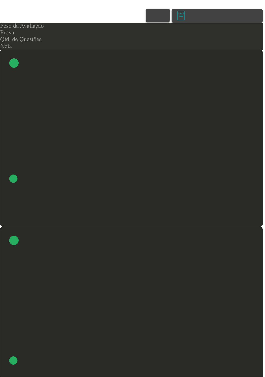 17/12/2023, 18:49 Avaliação da Disciplina about:blank 1/10 Prova Impressa GABARITO | Avaliação da Disciplina (Cod.:678057) Peso da Avaliação 10,00 Prova 75580442 Qtd. de Questões 20 Nota 10,00 Ser líder exige conhecimento, habilidade e atitudes que inspiram as pessoas para atingir os objetivos da organização. Acerca das competências essenciais de um líder, associe os itens que seguem: I – Visão II – Motivação III – Comunicação ( ) Fazer-se claro para ter certeza de que os liderados possuem as informações necessárias para realização do trabalho. ( ) Inspirar e estimular os liderados para que realizem o trabalho necessário. ( ) Direcionar os liderados e traduzir as estratégias da organização em objetivos claros. Assinale a alternativa que apresenta a sequência correta de respostas: A II - III - I. B III - II - I. C III - I - II. D II - I - III. Para utilizar jogos e dinâmicas de grupo nas empresas, os facilitadores devem ter uma preparação prévia, pois envolve ludicidade e trabalho de percepção sobre o outro. As dinâmicas de grupo podem aumentar a autoestima, promover a criatividade, desenlaçar dificuldades de relacionamento, aprimorar o caráter, promover a humanização do sujeito em sua atitude frente ao trabalho e ao desenvolvimento empreendedor. Além destas, outras se somam no estudo e aprofundamento das dinâmicas que são requeridas nos espaços socioculturais e que desejam quebrar ou ampliar paradigmas considerados valiosos na manutenção de esquemas estritamente formais (Dias e Neto, 2012). As dinâmicas de grupo fazem parte de treinamentos, de programas educativos e de processos de seleção e integração de profissionais da grande maioria das empresas na hora de avaliar comportamentos e características das pessoas. Trata-se de uma ferramenta bastante funcional e serve para identificar aspectos do comportamento humano. Sobre o exposto, assinale a alternativa CORRETA: FONTE: DIAS, Maria Sara de Lima; NETO, Pedro Moreira da Silva. Dinâmica de grupo: aspectos teóricos e práticos. Petrópolis: Vozes, 2012. 10 p. A Trabalho em equipe. VOLTAR A+ Alterar modo de visualização 1 2 17/12/2023, 18:49 Avaliação da Disciplina about:blank 2/10 B Escrever relatórios técnicos. C Elaboração de planilhas. D Digitação. “A elaboração da estratégia é um exercício que exige reflexão estratégica e análise; não é uma atividade em que os gerentes podem obter sucesso por meio de boas intenções, puro esforço ou criatividade. O julgamento da estratégia a ser buscada tem de ser baseado numa avaliação detalhada do ambiente externo e da situação interna da empresa. Se a estratégia da empresa não for bem combinada com as circunstâncias externas e internas, sua aplicação fica comprometida.” O departamento de Marketing de um Shopping tem de lidar com variáveis incontroláveis, fatores que interferem na evolução do negócio, afetam as tomadas de decisão e que não são determinados pela administração. Sobre um exemplo de uma variável incontrolável, assinale a alternativa CORRETA: FONTE: THOMPSON JR., Arthur A. & STRICKLAND III, A. J. Planejamento Estratégico: elaboração, implantação e execução. São Paulo: Pioneira, 2000. A A situação econômica do país. B O Layout do site da empresa. C As campanhas institucionais. D A localização do shopping. Ao longo dos anos surgiram diferentes teorias da liderança, todas com o objetivo de entender, analisar e definir melhor como essa dinâmica funciona e quais circunstâncias levam uma pessoa a se tornar um verdadeiro líder. Dito isso, relacione as teorias da liderança com suas respectivas características: I – Teoria dos traços da personalidade. II – Teoria contingencial ou situacional. III – Teoria do caminho-meta. ( ) Determinada condição faz surgir o líder necessário e conveniente. ( ) O caráter e a personalidade distinguem o líder do não-líder. ( ) O comportamento do líder é a chave para motivar os subordinados. Assinale a alternativa que apresenta a sequência correta de respostas: A II - III - I. B III - II - I. C III - I - II. 3 4 17/12/2023, 18:49 Avaliação da Disciplina about:blank 3/10 D II - I - III. ”O digital não é especialidade nem objeto de ações de marketing. Quando referíamos à mobile marketing, marketing de busca, marketing em redes sociais, marketing de relacionamento, estamos nos referindo a todas as ações estratégicas dessas modalidades enfocadas na especificidade mobile, search, social media, relacionamento.“ Sobre como o marketing digital implementado dentro de uma empresa deve ser visto, assinale a alternativa CORRETA: FONTE: GABRIEL, Martha. Marketing na era digital. São Paulo: Novatec Editora, 2010. A Um canal de comunicação com o consumidor igual aos demais, como telefone e e-mail, mas sem custo para atender as mensagens. B Um conhecimento específico da área de Tecnologia de Informação e que pode apenas ter auxílio do departamento de Marketing. C A ferramenta mais eficaz para qualquer objetivo planejado pela empresa e por isso a de maior investimento. D Uma estratégia agregada ao plano de marketing, que deve considerar todos os conceitos tradicionais como segmentação, posicionamento, relacionamento, entre outros. Segundo Chiavenato, o ambiente geral é o mais amplo que envolve toda a sociedade, as nações, organizações, empresas, comunidades etc. e funciona como um contexto abrangente que afeta todos os seus componentes integrantes de modo genérico, embora alguns deles possam sofrer mais influências e pressões do que outros. Assim, todas as organizações estão sujeitas ao seu impacto, que é generalizado e amplo e repercute intensamente em todas as decisões administrativas. Sobre o macroambiente de marketing, assinale a alternativa CORRETA: FONTE: CHIAVENATO, Idalberto. Administração nos novos tempos / Idalberto Chiavenato. – 2ªed. – Rio de Janeiro: Campus, 1999. A O profissional de ma