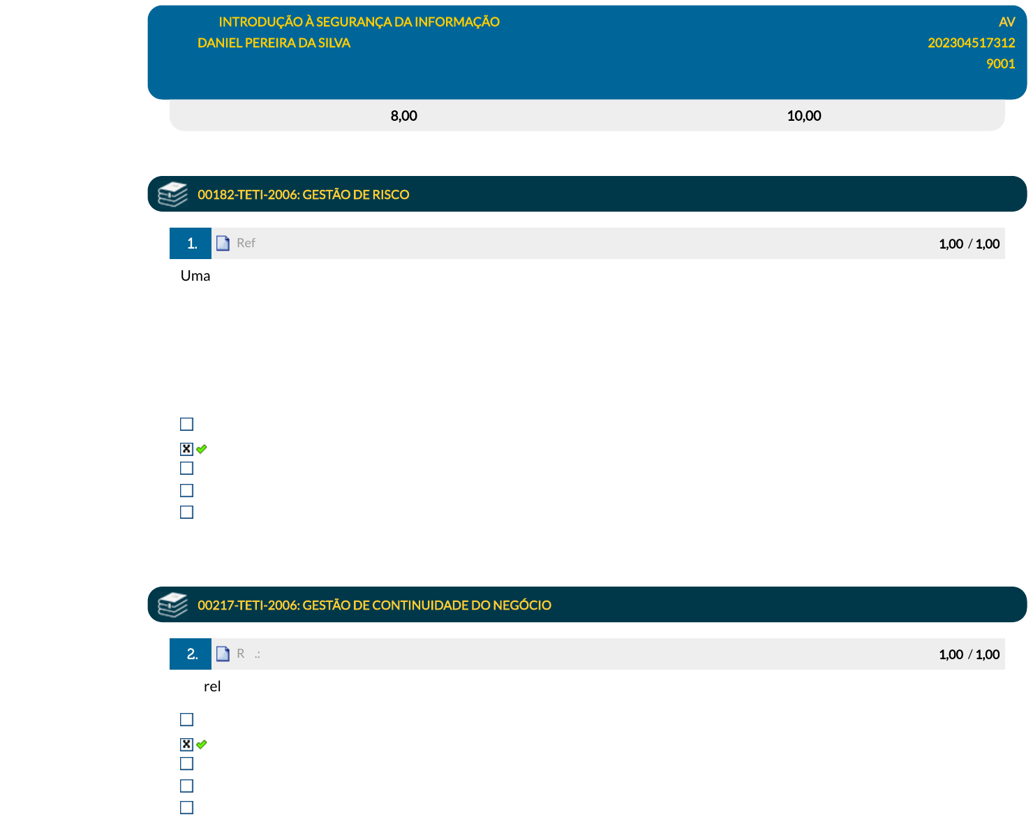 Avaliação: 8,00 pts Nota SIA: 10,00 pts