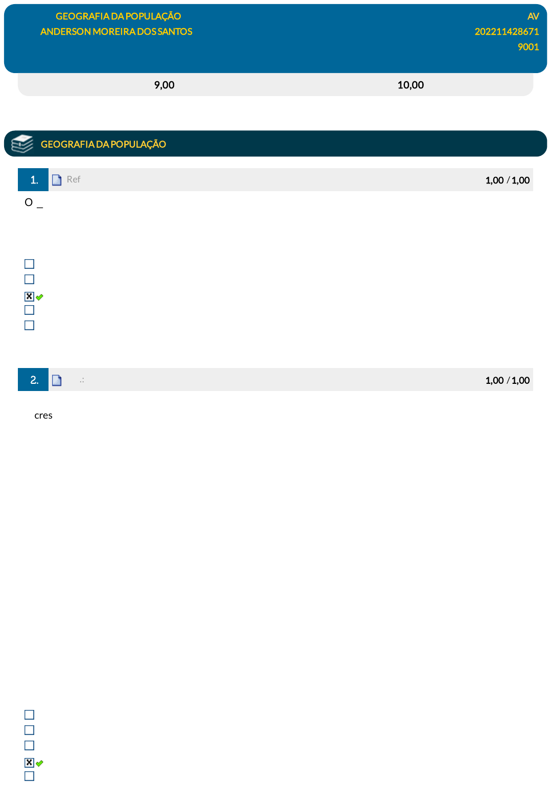 Disciplina: GEOGRAFIA DA POPULAÇÃO  AV