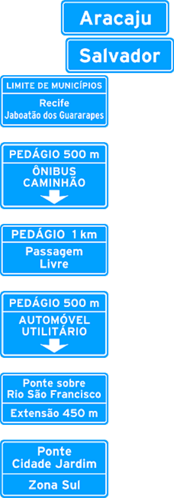 Placas de Trânsito: As Placas de Identificação posicionam o condutor ao longo do seu deslocamento ou com relação a distâncias ou ainda aos locais de destino. As Placas de Orientação de Destino indicam ao condutor a direção que o mesmo deve seguir para atingir determinados lugares, orientando seu percurso e/ou distâncias. Placa de identificacao de municipios 2 Placa de identificacao de municípios Placa de identificacao de regioes de interesse de identificacao de limite de municipios divisa de estados fronteira e perimetro urbano Placa de identificacao de regioes de interesse de identificacao de pedagio 2 Placa de identificacao de regioes de interesse de identificacao de pedagio 3 Placa de identificacao de regioes de interesse de identificacao de pedagio Placa de identificacao de regioes de interesse de identificacao nominal de pontes viadutos tuneis e passarelas 2 Placa de identificacao de regioes de interesse de identificacao nominal de pontes viadutos tuneis e passarelas Placa de identificacao de regioes de interesse de identificacao quilometrica 2 Placa de identificacao de regioes de interesse de identificacao quilometrica Placa de identificacao de regioes de interesse de trafego e logradouros 2 Placa de identificacao de regioes de interesse de trafego e logradouros 3 Placa de identificacao de regioes de interesse de trafego e logradouros 4 Placa de identificacao de regioes de interesse de trafego e logradouros 5 Placa de identificação de regioes de interesse de trafego e logradouros Placa de identificação rodovias e estradas estaduais Placa de identificação rodovias e estradas federais Placa de identificação rodovias e estradas pan americanas Placa de orientacao de destino placa diagramada 2 Placa de orientacao de destino placa diagramada 3 Placa de orientacao de destino placa diagramada 4 Placa de orientacao de destino placa diagramada 5 Placa de orientacao de destino placa diagramada 6 Placa de orientacao de destino placa diagramada Placa de orientacao de destino placa indicativa de distancia 2 Placa de orientacao de destino placa indicativa de distancia 3 Placa de orientacao de destino placa indicativa de distancia 4 Placa de orientacao de destino placa indicativa de distancia 5 Placa de orientacao de destino placa indicativa de distancia Placa de orientacao de destino placa indicativa de sentido direcao 2 Placa de orientacao de destino placa indicativa de sentido direcao 3 Placa de orientacao de destino placa indicativa de sentido direcao 4 Placa de orientacao de destino placa indicativa de sentido direcao 5 Placa de orientacao de destino placa indicativa de sentido direcao 6 Placa de orientacao de destino placa indicativa de sentido direcao 7 Placa de orientacao de destino placa indicativa de sentido direcao 8 Placa de orientacao de destino placa indicativa de sentido direcao
