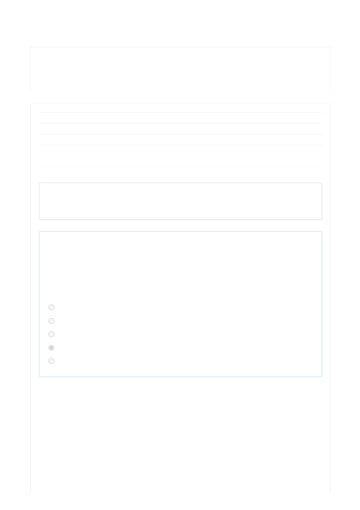 03/04/2022 19:55 ATIVIDADE ONLINE 2 - AV22022/1 https://moodle.ead.unifcv.edu.br/mod/quiz/review.php?attempt=1469735 1/8 Painel / Meus cursos / Matemática Financeira / ATIVIDADES - PERÍODO 2022/1 / ATIVIDADE ONLINE 2 - AV22022/1 Iniciado em domingo, 3 Abr 2022, 19:37 Estado Finalizada Concluída em domingo, 3 Abr 2022, 19:55 Tempo empregado 17 minutos 14 segundos Avaliar 2,00 de um máximo de 2,00(100%) Questão 1 Correto Atingiu 0,20 de 0,20 Em uma estratégia de compras e venda a vista, Maria possui uma receita de venda de R$13.000,00, além disso seu custo de compra foi de R$1.850,00 e os impostos no valor de R$987,32. Qual será o valor presente de Maria? Escolha uma opção: a. R$ 9.651,02 b. R$ 3.666,66 c. R$ 15.975,80 d. R$ 10.162,68 e. R$ 1.850,00 https://moodle.ead.unifcv.edu.br/my/ https://moodle.ead.unifcv.edu.br/course/view.php?id=520 https://moodle.ead.unifcv.edu.br/course/view.php?id=520#section-11 https://moodle.ead.unifcv.edu.br/mod/quiz/view.php?id=17589 03/04/2022 19:55 ATIVIDADE ONLINE 2 - AV22022/1 https://moodle.ead.unifcv.edu.br/mod/quiz/review.php?attempt=1469735 2/8 Questão 2 Correto Atingiu 0,20 de 0,20 Helen está com dificuldades para calcular seu Fluxo de Caixa (VPL), você se dispôs a ajuda-la. Observe as tabelas abaixo e assinale a alternativa correta do VPL a uma taxa efetiva de 4% ao ano. ANO INVESTIMENTO 0 -R$ 200.000,00 1 R$ 100.000,00 2 R$ 150.000,00 3 R$ 130.000,00 TAXA EFETIVA 4% VPL Escolha uma opção: a. R$ 100.000,00 b. R$ 115.600,02 c. R$ 150.406,80 d. R$ 101.200,00 e. R$ 92.200,00 03/04/2022 19:55 ATIVIDADE ONLINE 2 - AV22022/1 https://moodle.ead.unifcv.edu.br/mod/quiz/review.php?attempt=1469735 3/8 Questão 3 Correto Atingiu 0,20 de 0,20 Maria possui uma pizzaria e percebeu uma inflação dos alimentos no último quadrimestre. Em uma pesquisa percebeu que a taxa de inflação dos quatro períodos mensais foram de: 2,4%, 1,65%, 2,1% e 3,7%. Qual será a inflação do quadrimestre? Escolha uma opção: a. 9,44% b. 8,9% c. 12,6% d. 10,20% e. 16,7% Questão 4 Correto Atingiu 0,20 de 0,20 Ao falarmos dos descontos de duplicatas, sabe-se que o custo efetivo de determinado período (2 meses) foi de 37,39%. Qual será o valor encontrado na taxa efetiva mensal? Escolha uma opção: a. 15% b. 6,84% c. 10% d. 16,22% e. 17,21% 03/04/2022 19:55 ATIVIDADE ONLINE 2 - AV22022/1 https://moodle.ead.unifcv.edu.br/mod/quiz/review.php?attempt=1469735 4/8 ANO INVESTIMENTO 0 -R$ 6.400,00 1 R$ 1.680,00 2 R$ 1.500,00 3 R$ 2.000,00 4 R$ 1.500,00 5 R$ 800,00 TAXA EFETIVA 5,4% TIR Questão 5 Correto Atingiu 0,20 de 0,20 Laika deseja calcular a TIR referente ao seu investimento na sua empresa de Álcool em gel, a uma taxa efetiva de 5,4% ao ano. Conforme Tabela abaixo de investimentos, assinale a alternativa correta que corresponde ao valor da TIR: Escolha uma opção: a. 1,01% b. 2% c. 2,2% d. 9,8% e. 5,91% Questão 6 Correto Atingiu 0,20 de 0,20 Maria possui uma empresa de esmaltes e vendeu em um dia R$30.000,00 com o recebimento em 40 dias. Sendo que a taxa de desconto bancário é de 2%. Qual será o valor recebido de R$30.000,00 em 40 dias? Escolha uma opção: a. R$ 35.000,00 b. R$ 15.000,00 c. R$ 29.400,00 d. R$ 40.000,00 e. R$ 20.000,00 03/04/2022 19:55 ATIVIDADE ONLINE 2 - AV22022/1 https://moodle.ead.unifcv.edu.br/mod/quiz/review.php?attempt=1469735 5/8 Questão 7 Correto Atingiu 0,20 de 0,20 Laika, país onde Maria Helena é rainha apresentou uma taxa de inflação nos últimos três períodos de 1,2%, 2,0% e 0,88%. Qual será a taxa de inflação trimestral apresentada em Laika? Escolha uma opção: a. 4,13% b. 6,9% c. 3% d. 5,20% e. 7,66% 03/04/2022 19:55 ATIVIDADE ONLINE 2 - AV22022/1 https://moodle.ead.unifcv.edu.br/mod/quiz/review.php?attempt=1469735 6/8 Questão 8 Correto Atingiu 0,20 de 0,20 Helena está com dificuldades para calcular seu Fluxo de Caixa (VPL), você se dispôs a ajuda- la. Observe as tabelas abaixo e assinale a alternativa correta do VPL a uma taxa efetiva de 2% ao ano. ANO INVESTIMENTO 0 -R$ 6.500,00 1 R$ 5.000,00 2 R$ 2.000,00 3 R$ 3.500,00 TAXA EFETIVA 2,0% VPL Escolha uma opção: a. R$ 3.000,00 b. R$ 1.200,00 c. R$ 3.622,43 d. R$ 2.200,00 e. R$ 5.600,02 03/04/2022 19:55 ATIVIDADE ONLINE 2 - AV22022/1 https://moodle.ead.unifcv.edu.br/mod/quiz/review.php?attempt=1469735 7/8 Questão 9 Correto Atingiu 0,20 de 0,20 Em uma estratégia de compras e venda a prazo, Maria ao adquirir um lote de sabonetes no valor de R$30.000,00, entrou em contato com o fornecedor para estabelecer os valores fixos de R$20.000,00 com o prazo de 30 dias, chegando a oferecer um desconto de 10% caso ocorra a vista. Qual será o valor do pagamento da compra com o desconto de 10%? Escolha uma opção: a. R$ 5.000,00 b. R$ 10.000,00 c. R$ 20.000,00 d. R$ 19.800,00 e. R$ 6.520,00 Questão 10 Correto Atingiu 0,20 de 0,20 Um centro de estatística regional de Maringá resolveu realizar uma pesquisa da taxa de inflação dos últimos três meses e obteve o resultado de 1,1%, 1,3% e 1%. Qual será a taxa de inflação trimestral apresentada em Maringá? Escolha uma opção: a. 4,5% b. 1% c. 3,43% d. 3% e. 2,33% 03/04/2022 19:55 ATIVIDADE ONLINE 2 - AV22022/1 https://moodle.ead.unifcv.edu.br/mod/quiz/review.php?attempt=1469735 8/8