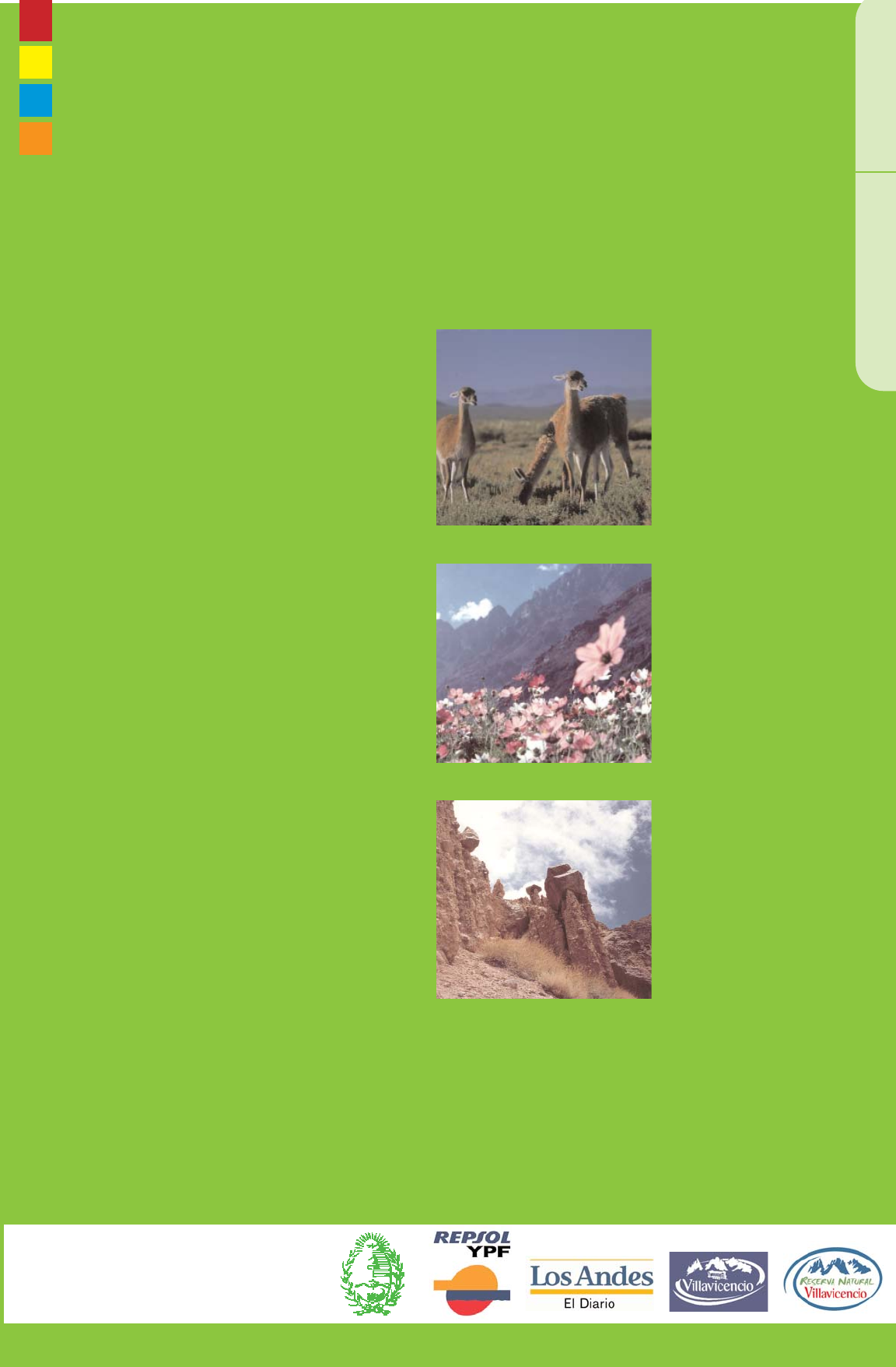 C ur so d e Ed uc ac ió n Am bi en ta l parques y reservas parques 19 oc tu br e 20 06 Gobierno de Mendoza Ministerio de Ambiente y Obras Públicas Subsecretaría de Medio Ambiente Programa Provincial de Educación Ambiental m en do za p ur oa m bi en te Áreas naturales protegidas Áreas naturales protegidas proyectadas fa sc íc ul o educación ambiental fascículo 19 . página 2 Áreas naturales protegidas La región que comprende a la reserva se sitúa dentro de la Ecorregión del Monte, con presencia de algunos elementos chaqueños. El paisaje está domi- nado por la “travesía”, una extensa planicie con suave pendiente de oeste a este, interrumpida por el medanal modelado por el viento, que actualmente tiende a extenderse la superficie como consecuencia de la desertización provocada por el hombre. Las características de los suelos dependen en gran medida de los tipos de sedimentos: arenosos en los médanos, limosos y limoarenosos en las planicies, y limoarcillosos en los sectores más bajos (ram- blones). La vegetación crece sobre suelos arenosos y arci- llosos, lo que determina dos comunidades bien diferentes: los algarrobales y los jarillales respectiva- mente. La primera comunidad toma su nombre por la abundancia de algarrobo acompañado por chañares en el estrato arbóreo; el estrato arbustivo está dominado por jarilla, llaullín, verbena áspera, zampa, piquillín y atamisque, y el estrato herbáceo está compuesto por numerosas especies de pastos. Los jarillales son más pobres en número de especies y están conformados por la propia jarilla, el retamo, el solupe y otros arbustos bajos; a veces poseen un pastizal muy denso de pasto de hoja. La fauna es muy rica y entre ella se destaca una gran diversidad de aves. La abundancia de algarrobos determina que exista un gran número de especies, ya que provee refugios, sitios de nidificación y ali- mentación. Habitan el gallito copetón, la monterita de collar, el yal carbonero (especie endémica del Monte Central), tres especies de pájaros carpinteros, el picapalo, el sietecuchillos, la diuca, el chingolo, la calandrita, el canastero y otros. Entre los mamíferos, los más abundantes son los cuises y los ratones de campo. Otros herbívoros son la vizcacha, la mara y el tuco-tuco. Se encuentran zorros grises, hurones, zorrinos y gatos monteses y del pajonal. Existe una gran diversidad de reptiles, como lagartos co- lorados, tortugas, numerosas especies de culebras y lagartijas. La reserva es habitada por pumas que consumen muy frecuentemente piches y tortugas. Se tienen re-gistros de ñandúes, aunque se cree que son escasos, ya que son raros de observar. Como especies exóticas asilvestradas se hallan jabalíes y liebres europeas. Reserva de Biosfera de Ñacuñán Reserva Cultural y Paisajística Manzano Histórico Está ubicada en el sector este del Cordón del Portillo, en el faldeo oriental de la Cordillera Frontal, incluyen- do un área piedemontana. Las cumbres de este cordón alcanzan los 5.500 metros. El clima, de una acentuada aridez, ha favorecido la formación de suaves superficies de erosión en el piedemonte (pe- dimentos), las que han sido cubiertas por depósitos de antiguos abanicos aluviales. En el área hay dos arroyos: el Pircas y el Grande. Presentan caudal per- manente y sus aguas, que se originan a partir del deshielo, son de excelente calidad para el consumo humano y el riego. El área protegida se localiza en un ecotono entre las ecorregiones del Monte y Altoandina, con las mo- dificaciones propias impuestas por la orografía de la zona. A menor altitud (menos de 1.200 msnm) pre- dominan las especies del monte. A mayor altitud (más de 2.200 msnm) comienzan a aparecer especies altoandinas. La zona histórica posee comu- nidades vegetales con alto impacto antrópico: la extracción de leña, los incendios frecuentes, la ganadería y la realización de acampadas perma- nentes han llevado a una profunda modificación de aquéllas. Sin embargo, lejos de esa zona es posible encontrar vegetación natural con bajo impacto. En el entorno del monumento, las condiciones tér- micas y de humedad permiten mantener una forestación implantada (especies exóticas) con bajo esfuerzo de mantenimiento, razón por la cual se encuentran áreas de camping y parcelas privadas de fin de semana. En las zonas más apartadas, la forma- ción vegetal dominante es un matorral arbustivo abierto en laderas y piedemontes con amplias áreas de pastizales. En arroyos y vegas se encuentran matorrales arbustivos riparios de chilca, chacay y vegetación periacuática. Entre los arbustos de las zonas de piedemonte dominan el coliguay, el molle, la carqueja y la jarilla. Como elementos del monte, en las partes más bajas del piedemonte aparecen chañares, llaullines y piquillines. La rosa mosqueta es una especie invasora muy agresiva, que ha desplazado del medio natural a la mayoría de las especies nativas. La fauna autóctona ha sufrido una fuerte retracción debido al avance del hombre sobre el medio natural. En época invernal era muy común la presencia de pumas, guanacos, choiques y zorros, especies que hoy habitan en número muy reducido, confinadas a las zonas más altas y alejadas de los asen- tamientos humanos. Actualmente, la mayor diversidad está representada por las aves y mamíferos pequeños. Como especie destacada, el cóndor aparece en el cerro Manzano, en gru- pos de tres a cinco individuos, y baja con los temporales de altura a fines del otoño. En los ambientes palus- tres, el martín pescador aprovecha los pinares y la piscicultura. La gallineta se oculta bajo la rosa mos- queta. Los zorzales son muy abun- dantes. Como especie invasora está la liebre europea, muy presente en todos los ambientes. Gobierno de Mendo subsecretaría de medio ambiente fascículo 19 . página 3 conceptos educación ambiental fascículo 19 . página 4 Protege un importante sector de la Cordillera Principal, la Cordillera Frontal y e