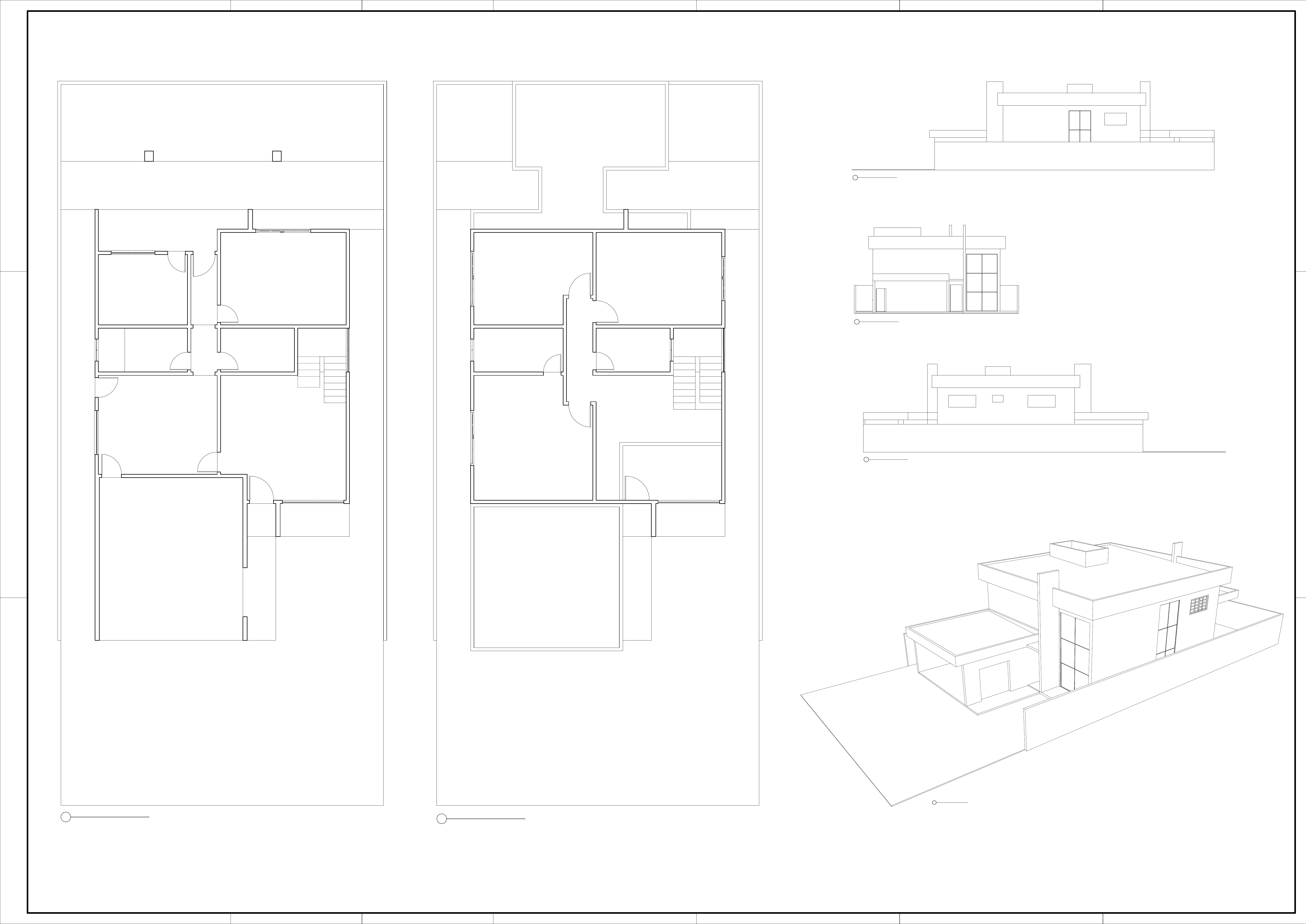 Planta Baixa do Primeiro Andar 1 Escala 1:50 Planta Baixa do Segundo Andar 2 Escala 1:50 Edícula Varanda Área de Serviço Escritório Dispensa Banheiro Cozinha Sala Garagem Jardim Suite do Casal Hall Banheiro Banheiro Dormitório 2 Dormitório 3 Elevação Leste 3 Escala 1:100 Fachada 4 Escala 1:100 Elevação Oeste 5 Escala 1:100 Perspectiva 6 Sem Escala Sheets and Views Folha A0